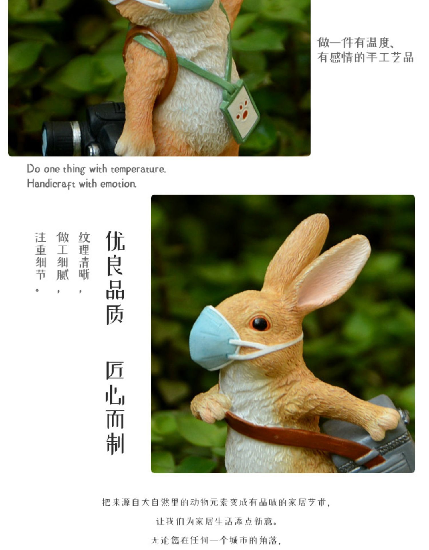 창조적 인 감동적인 마스크 동물 장식품 귀여운 토끼 돼지 만화 인형 수지 시뮬레이션 장식 선물 새해스토어 가기