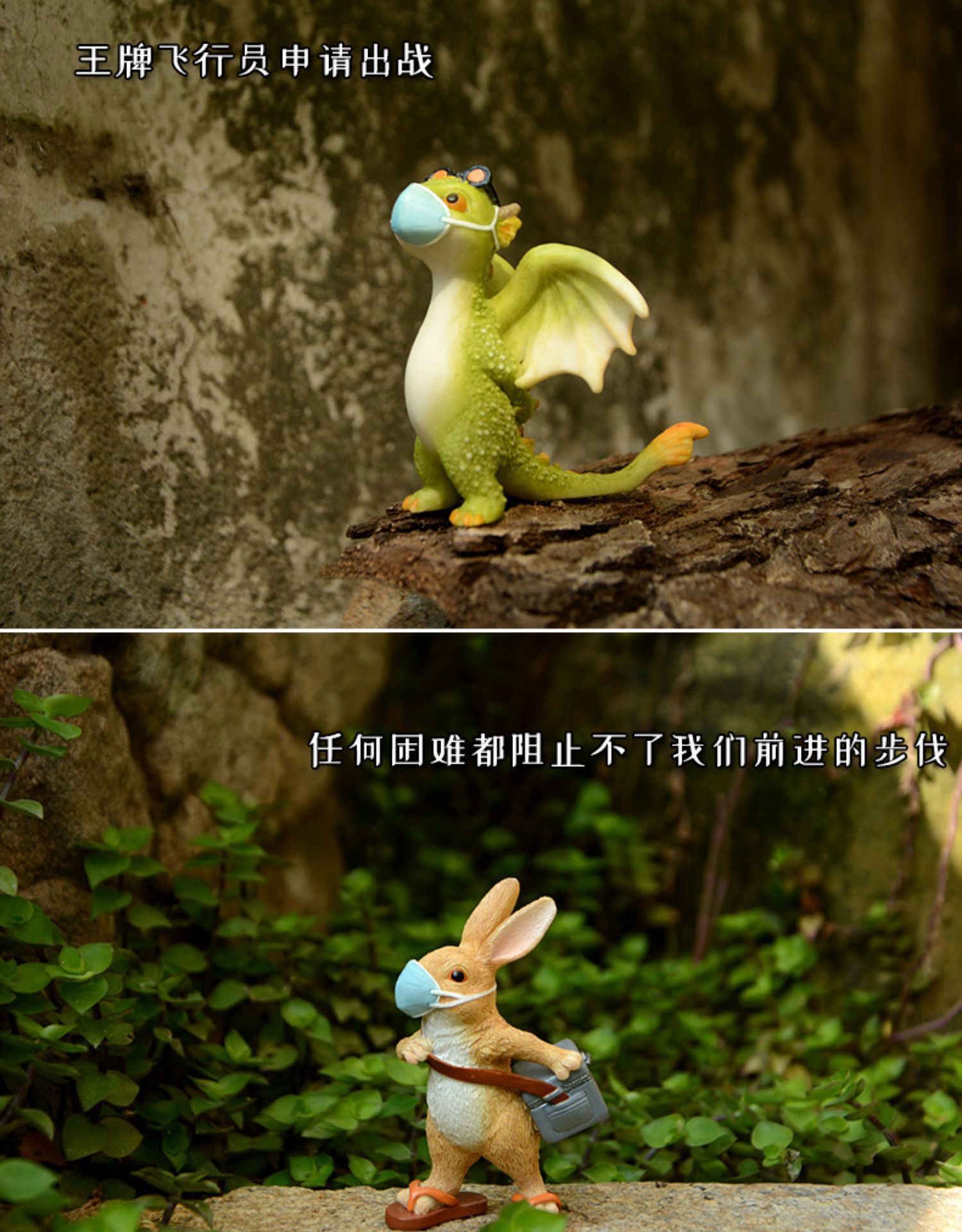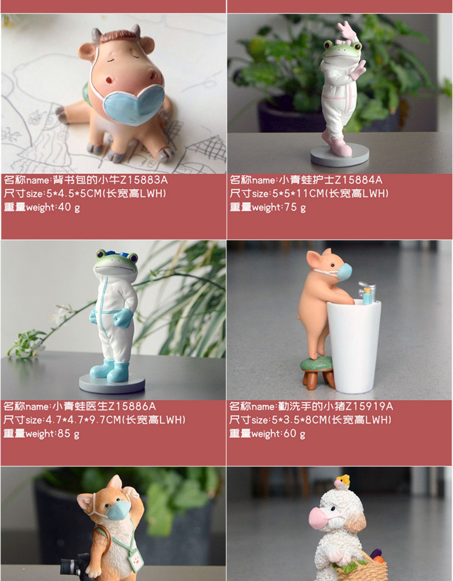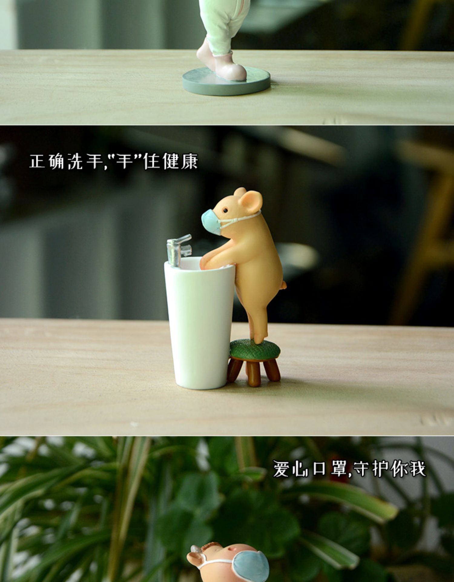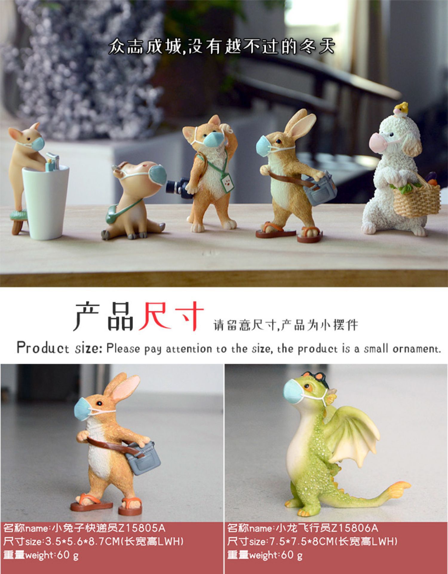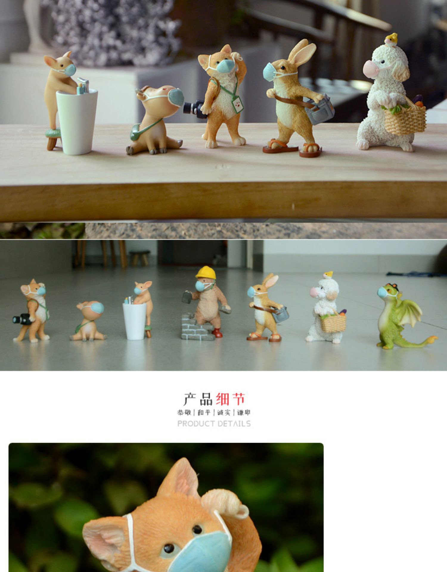 창조적 인 감동적인 마스크 동물 장식품 귀여운 토끼 돼지 만화 인형 수지 시뮬레이션 장식 선물 새해