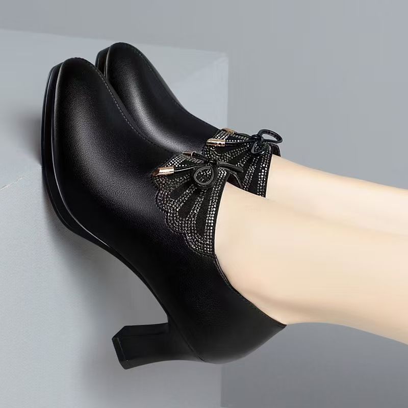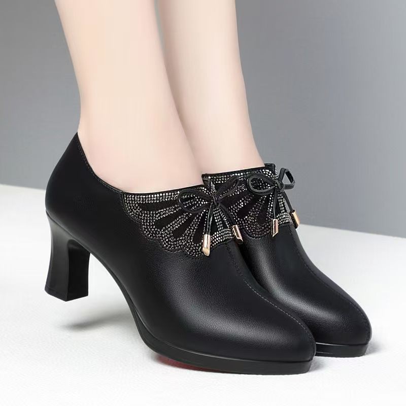 대외 무역 도매 두꺼운 뒤꿈치 뾰족한 작은 가죽 신발 유럽과 미국 패션 활 신발 2025 봄 새로운 통근 로퍼