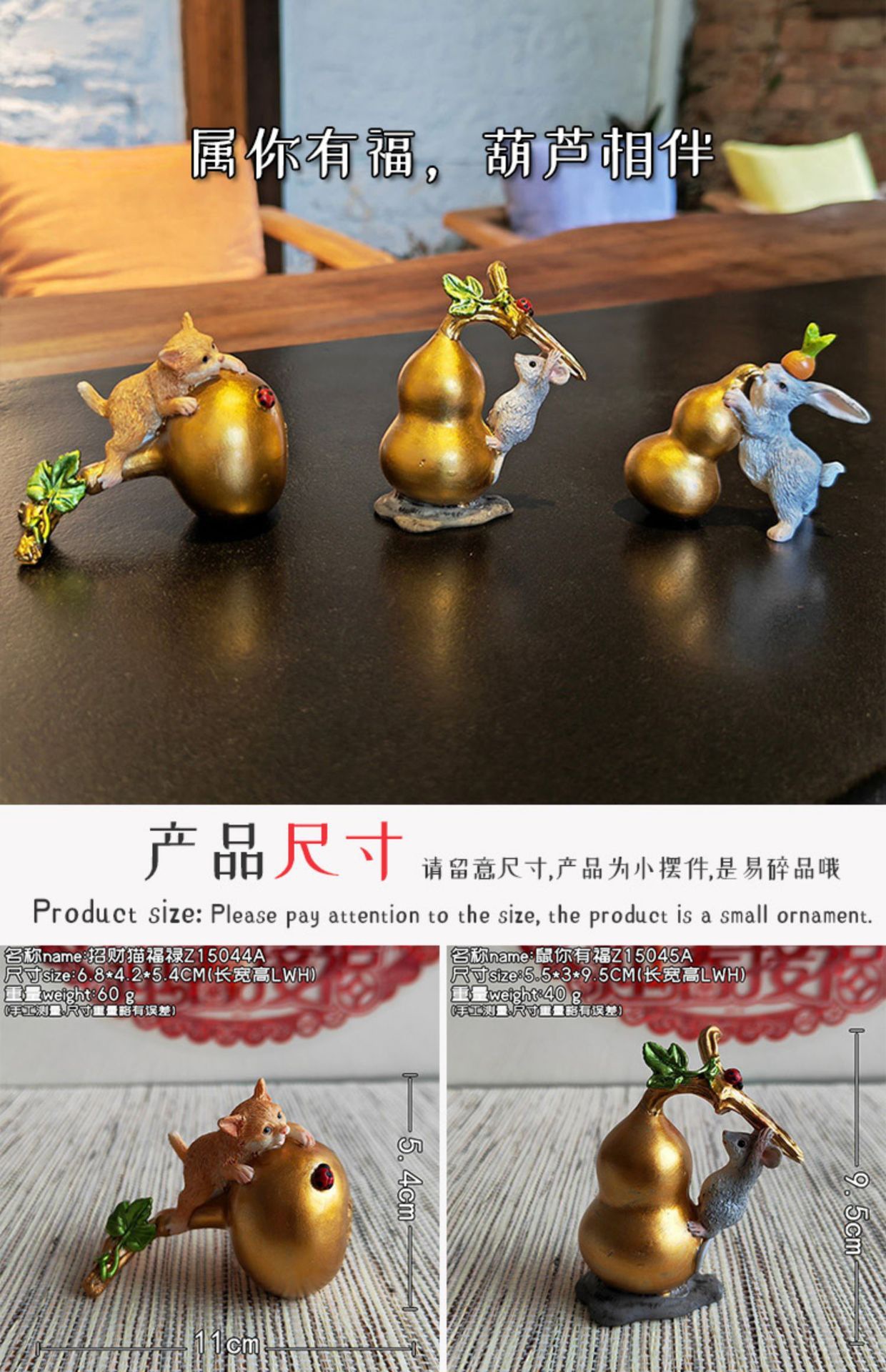 창조적 인 풀루 조롱박 장식품 마우스 당신은 축복받은 눈썹을 들고 토끼 스타일 중국 데스크탑 사무실 장식 공예 선물