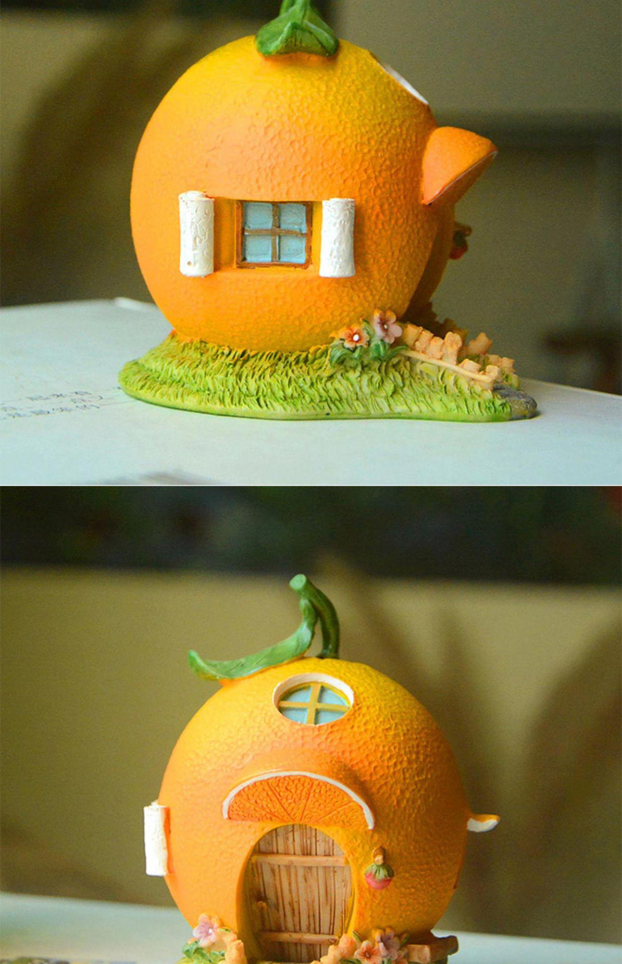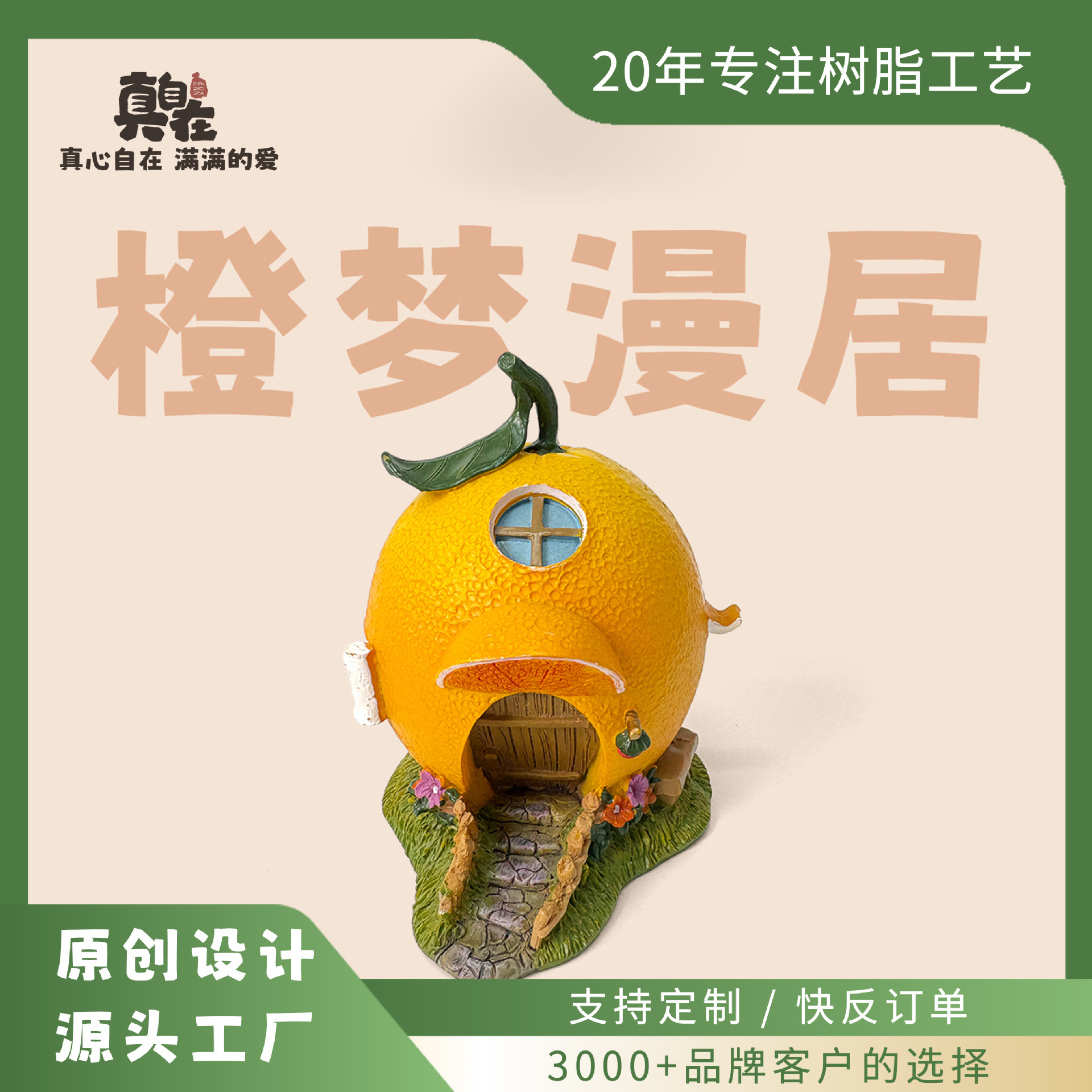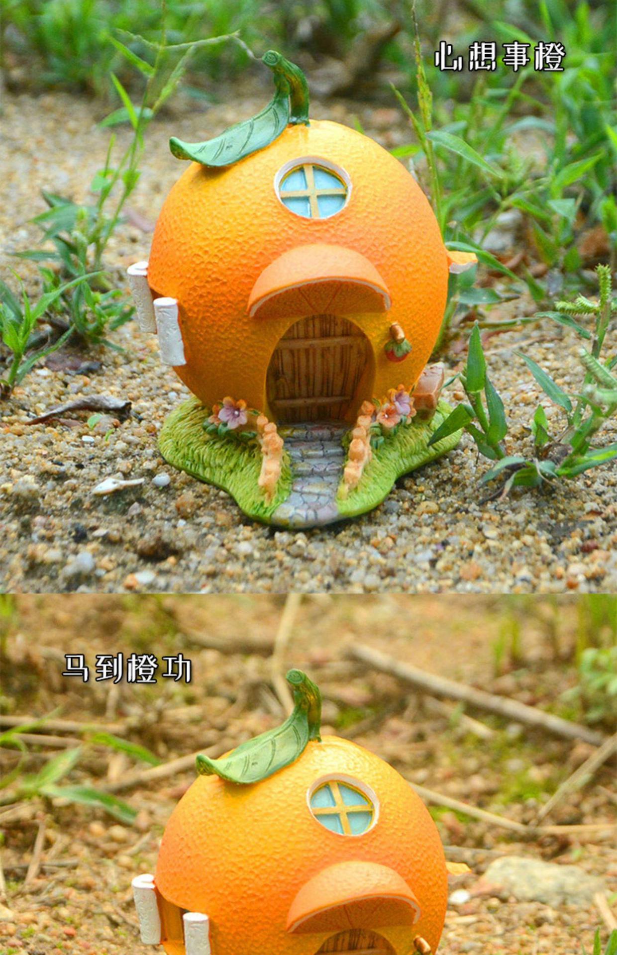 친구들에게 오렌지 하우스 장식 작은 장식 시뮬레이션 창조적 인 마이크로 풍경 분재 수지 선물을 상상해보십시오.