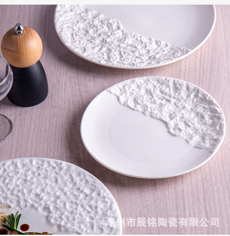 양각 스톤 패턴 라운드 플랫 플레이트 세라믹 얕은 플레이트 초밥 플레이트 레스토랑 생선회 다이어트 크리에이티브 레스토랑스토어 가기