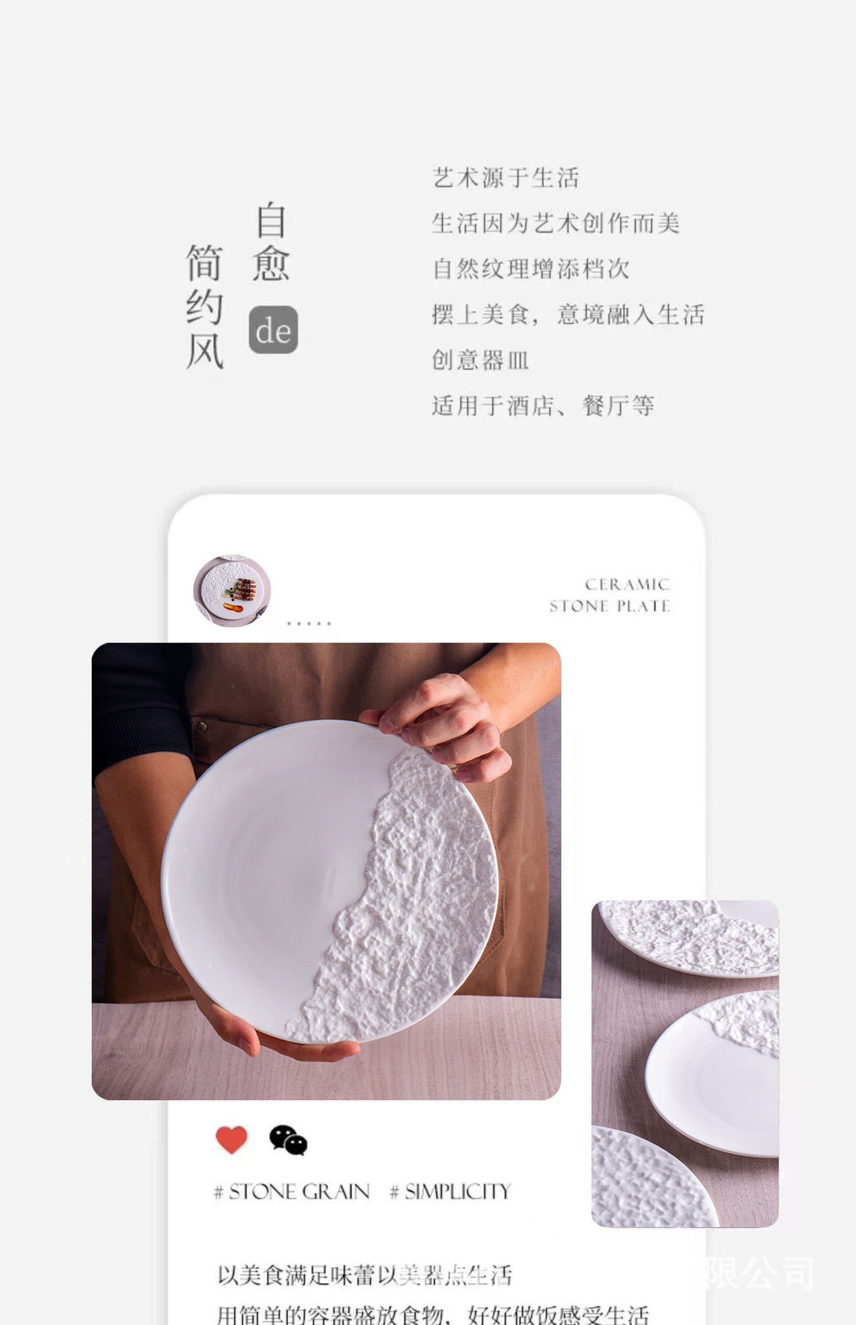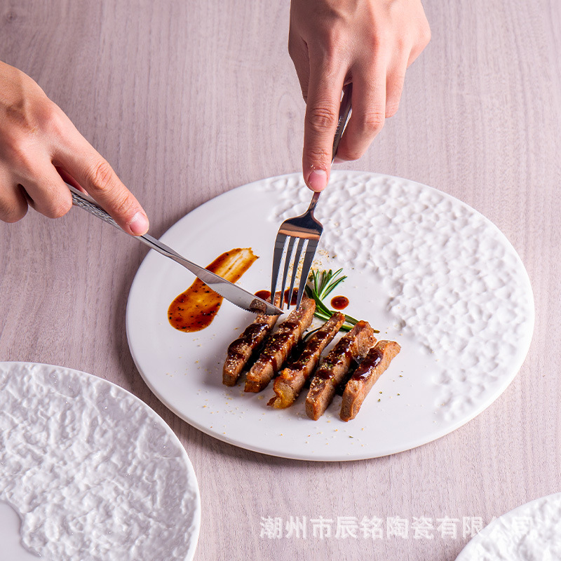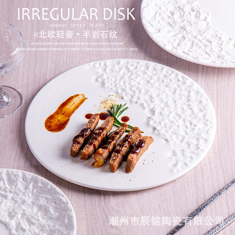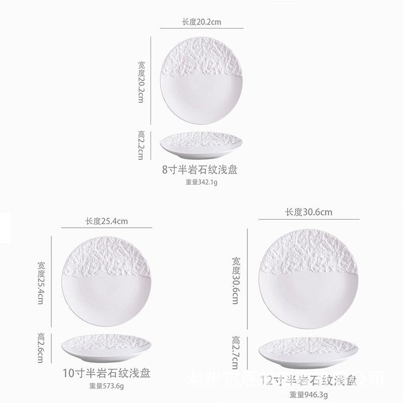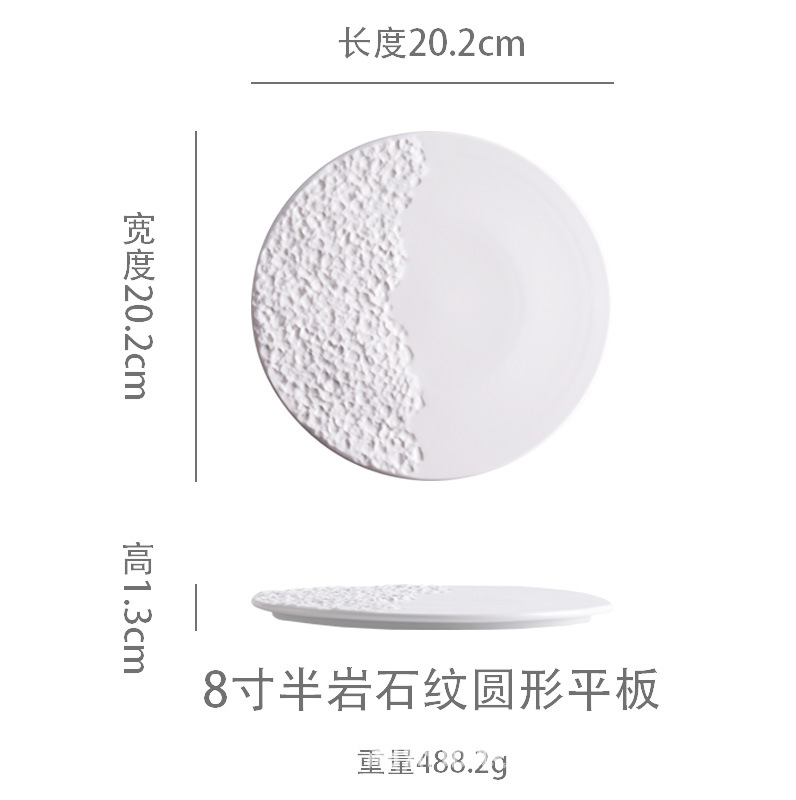 양각 스톤 패턴 라운드 플랫 플레이트 세라믹 얕은 플레이트 초밥 플레이트 레스토랑 생선회 다이어트 크리에이티브 레스토랑