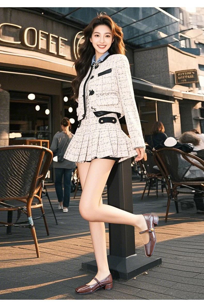 스퀘어 토 메리 제인 신발 여성 2025 봄 새로운 두꺼운 힐 얕은 입 패션 싱글 레이어 신발 여성 캐주얼 올 매치 프랑스 여성 신발스토어 가기