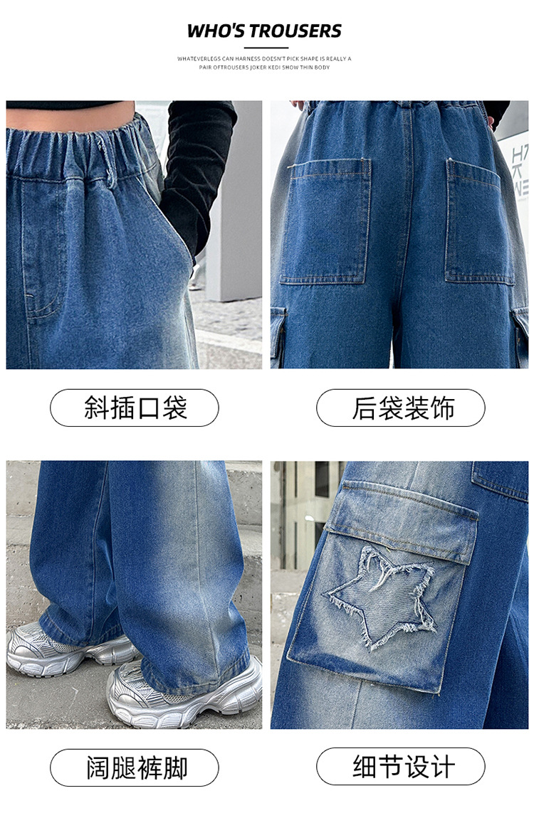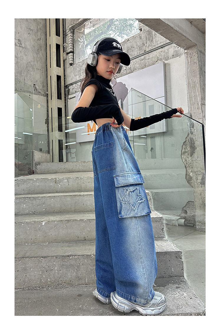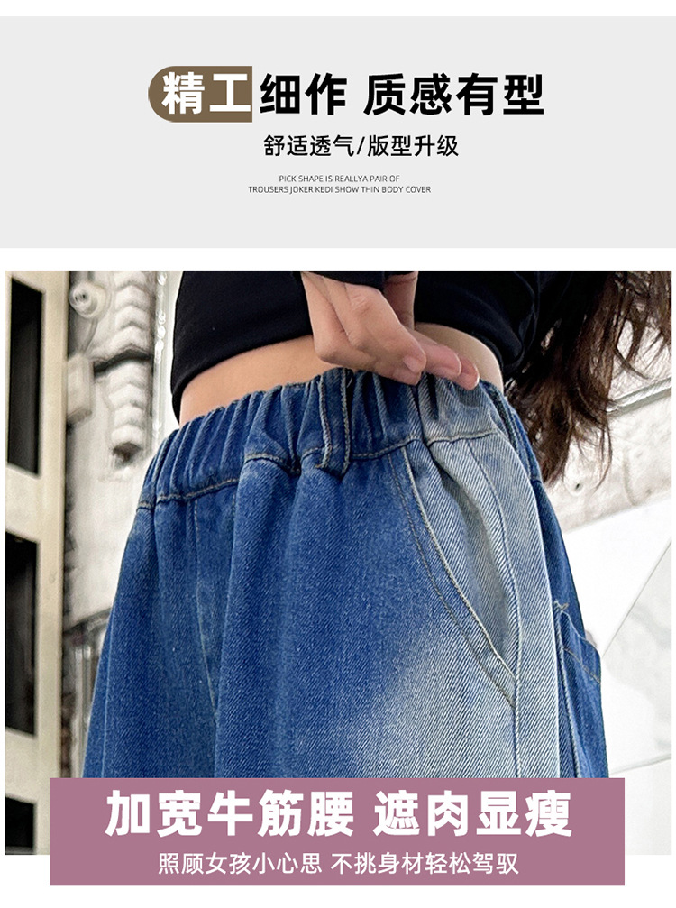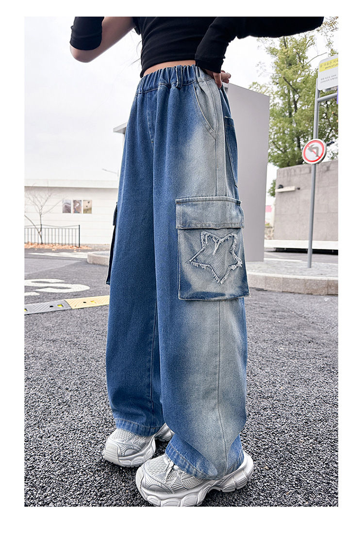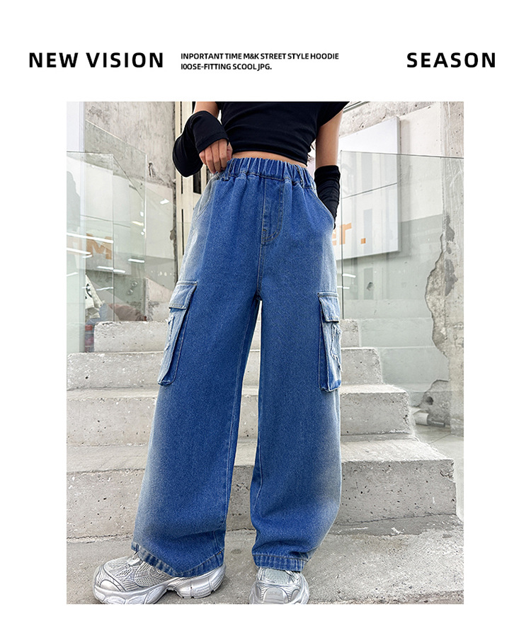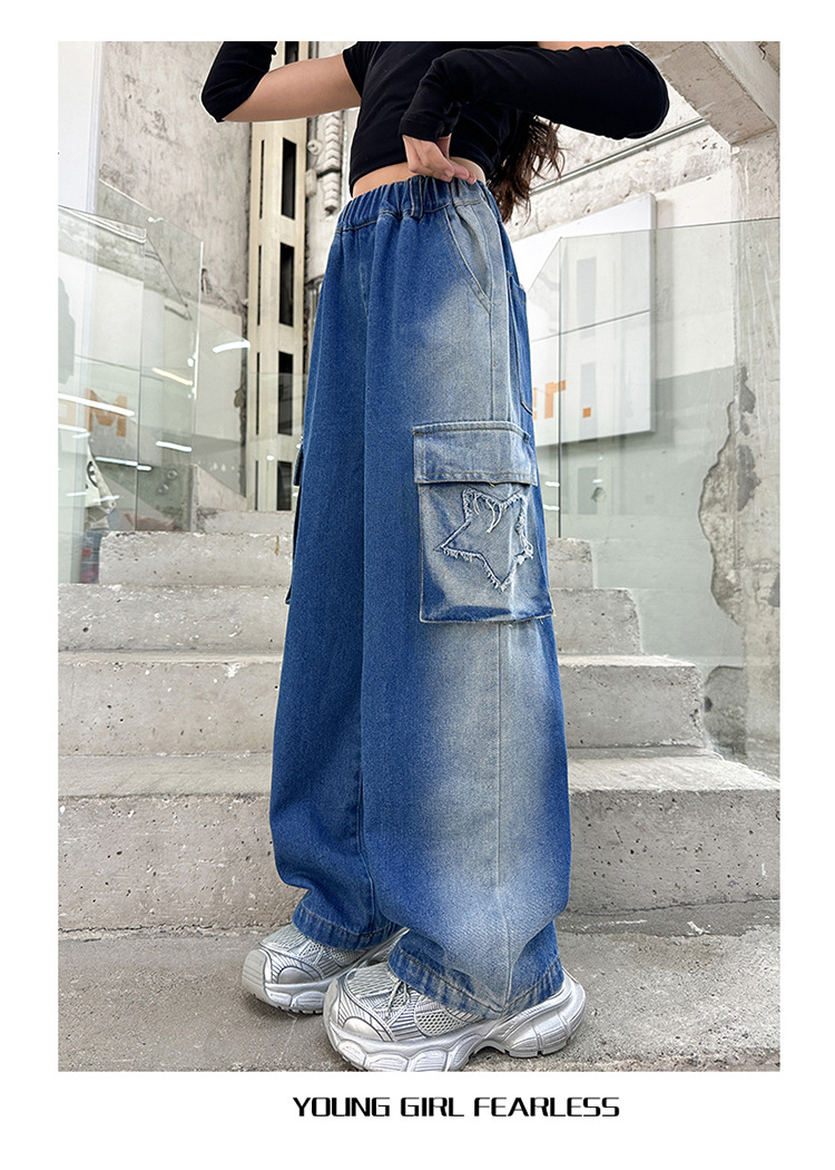 소녀 청바지 봄과 가을 2025 새로운 스타일 바지 서양식 한국 스타일 큰 아이들 느슨한 넓은 다리 바지 아동화물 바지스토어 가기