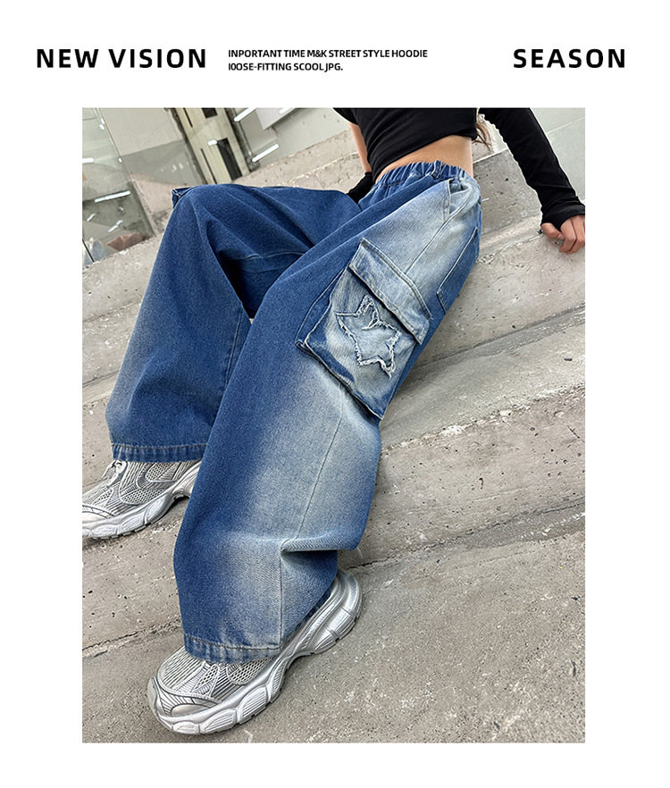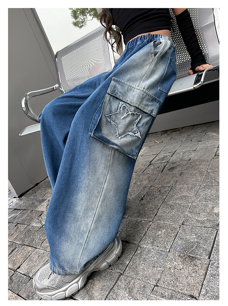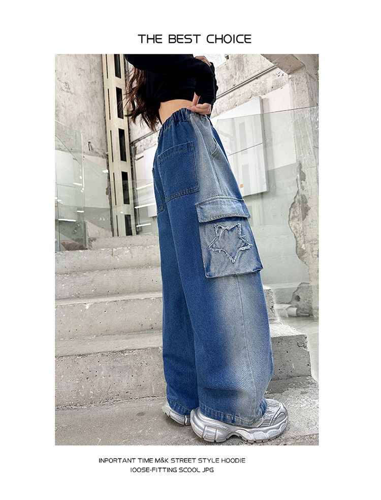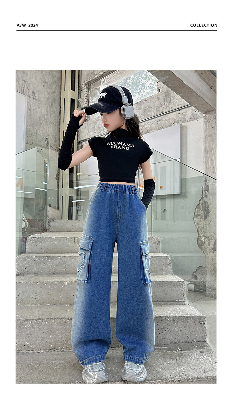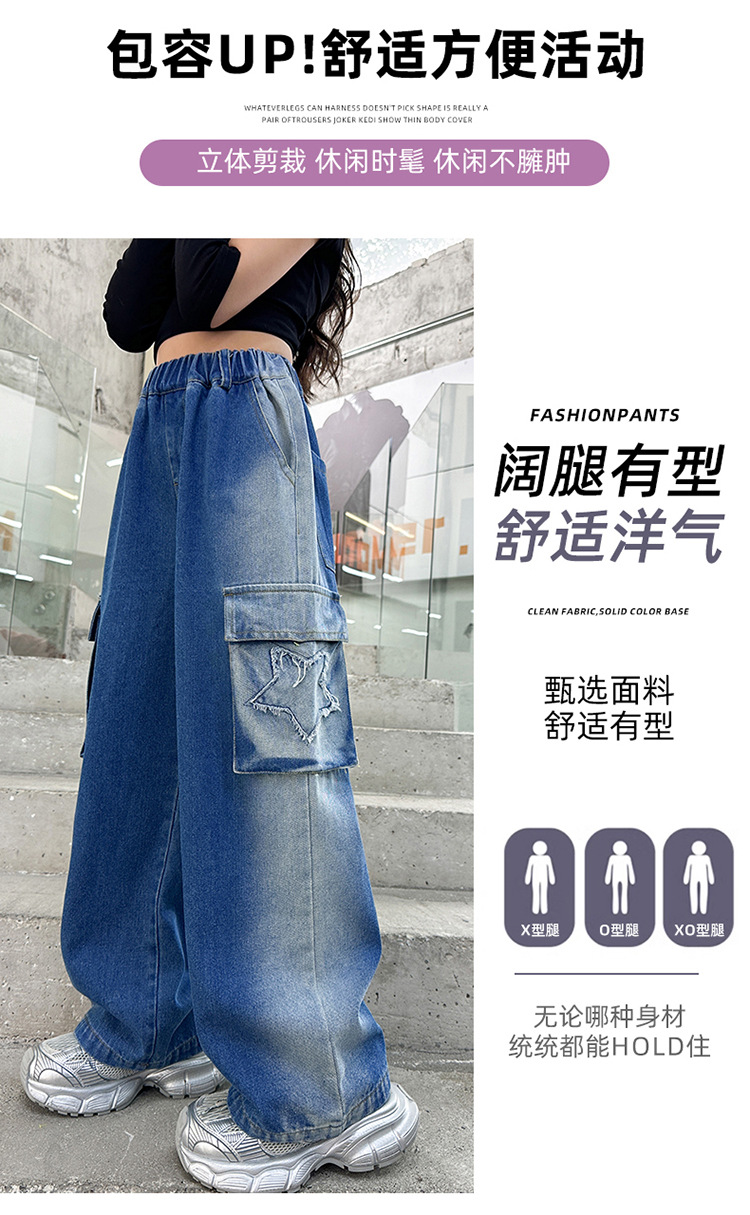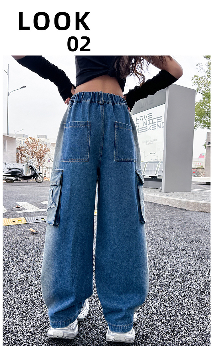 소녀 청바지 봄과 가을 2025 새로운 스타일 바지 서양식 한국 스타일 큰 아이들 느슨한 넓은 다리 바지 아동화물 바지스토어 가기