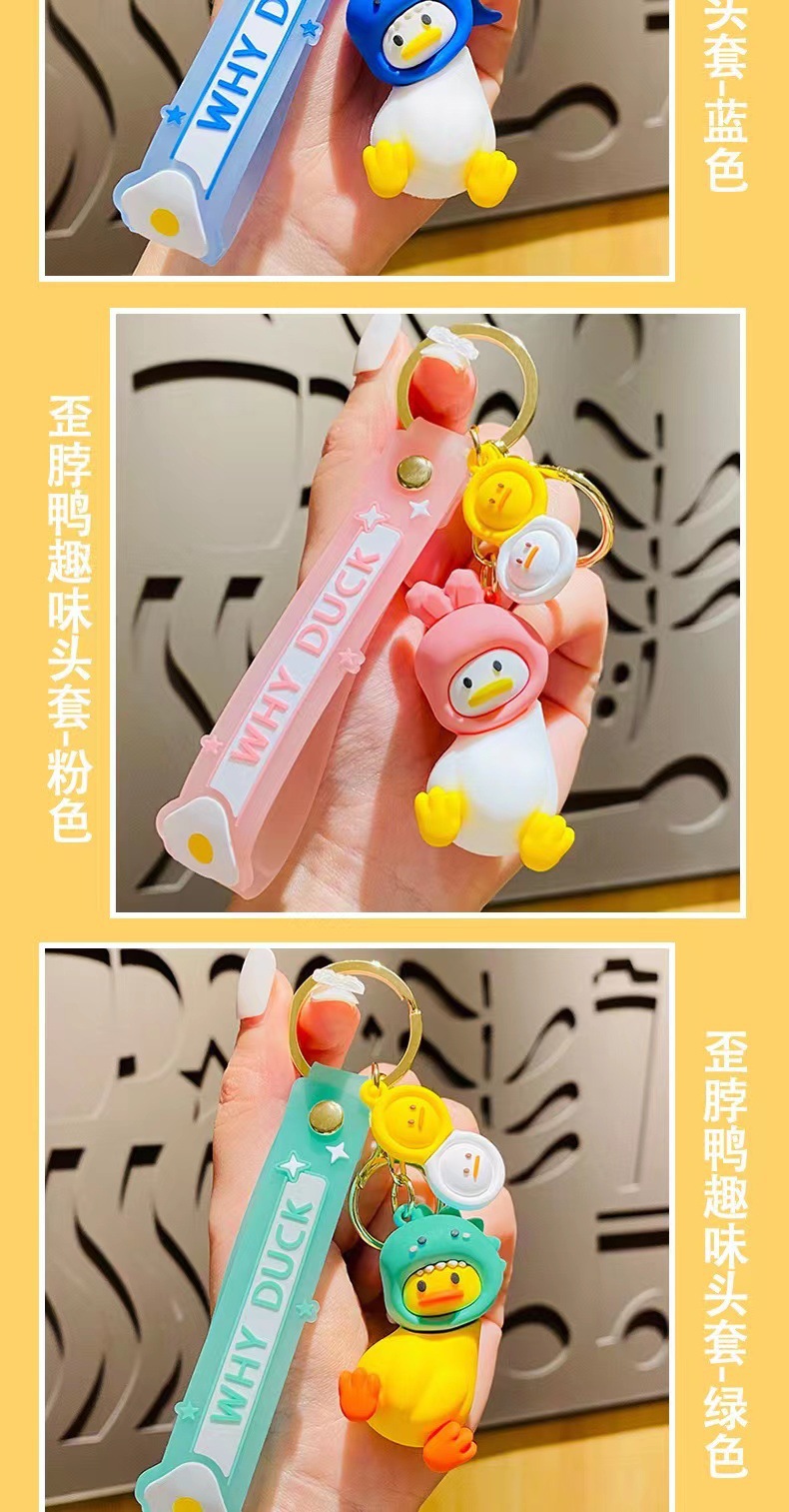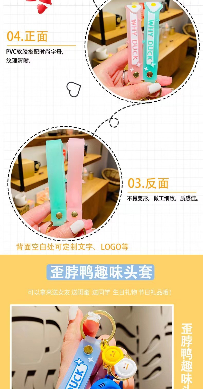 창조적 인 만화 비뚤어진 목 오리 재미 헤드 기어 키 체인 인형 성격 자동차 열쇠 고리 가방 작은 선물 도매