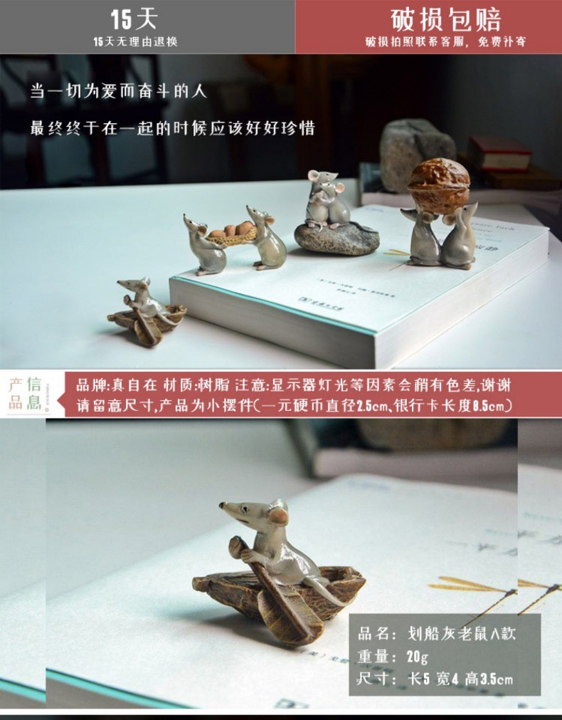 귀여운 마우스 장식품 창조적 인 마이크로 풍경 인형 동물 수지 홈 장식 생일 선물 발렌타인 데이