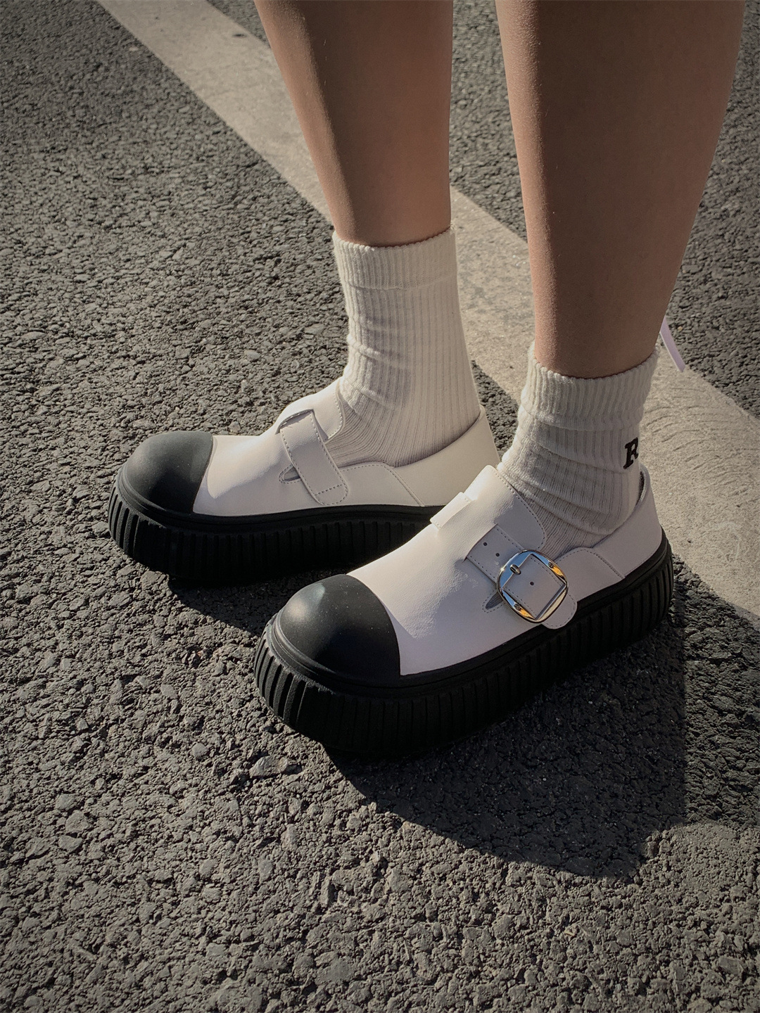 SGIRL TW2025 새로운 봄과 여름 흑백 빅 헤드 플랫폼 신발 여성 벨트 버클 올 매치 캐주얼 두꺼운 싱글 레이어 신발
