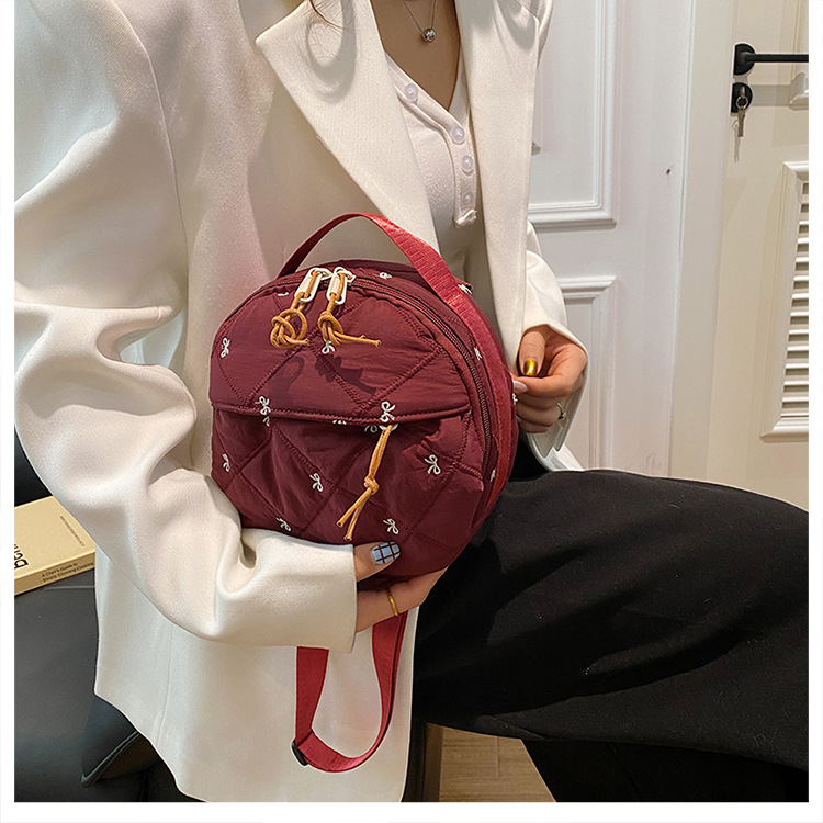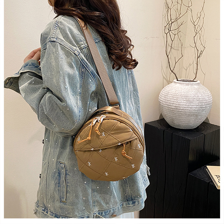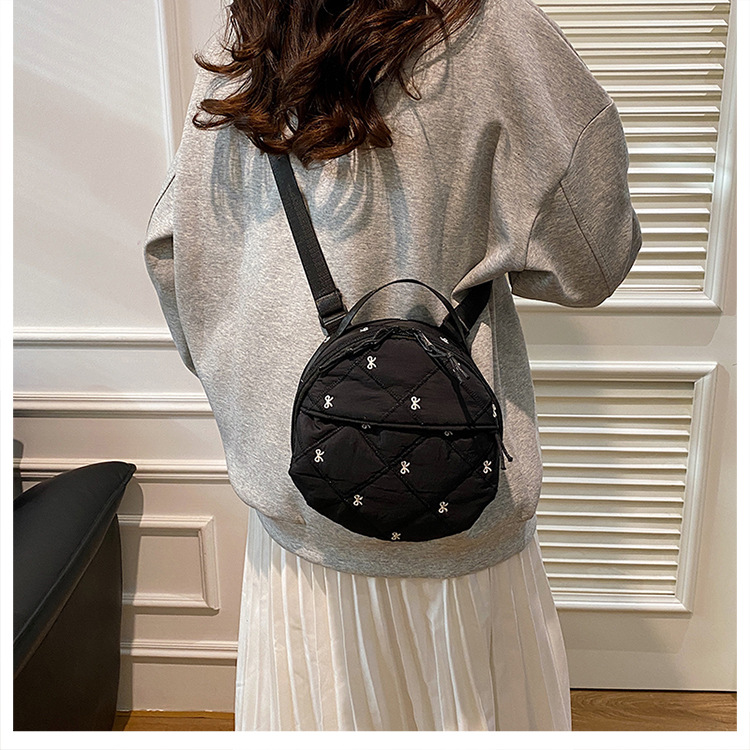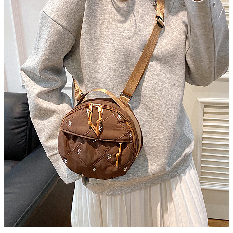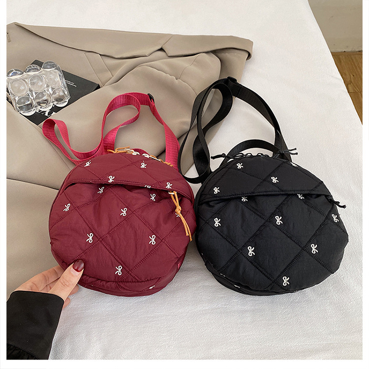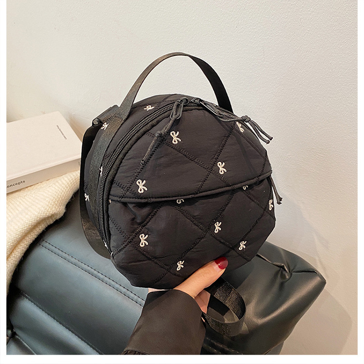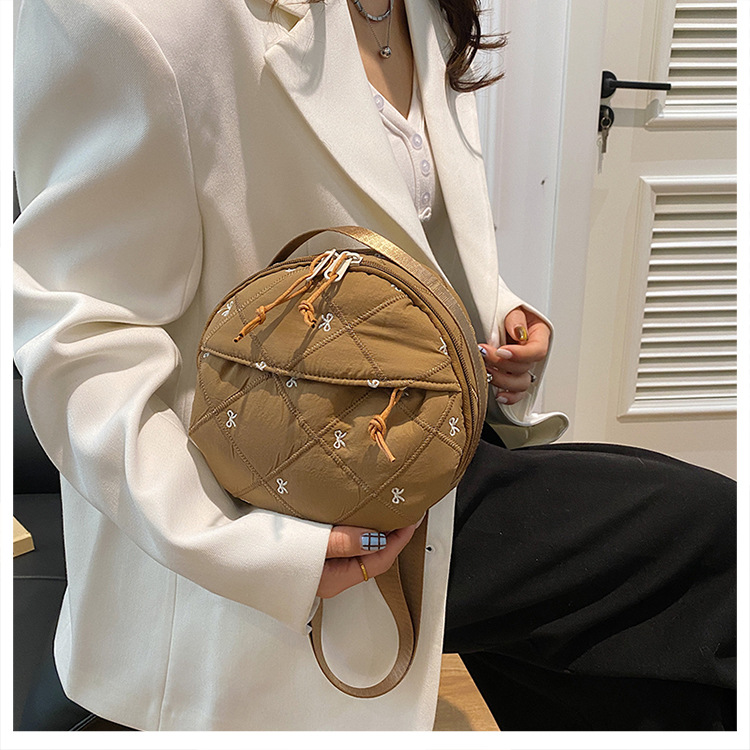 2025 이른 봄 새 면 어깨 가방 여성용 가방 대용량 활 자수 라운드 가방 통근 유행 크로스 바디 백