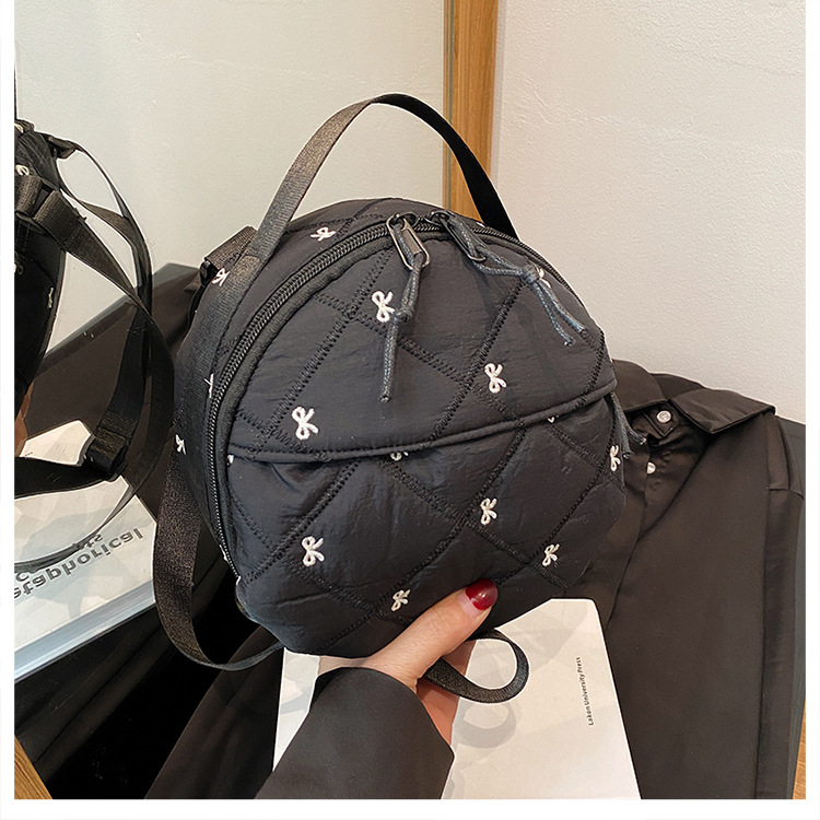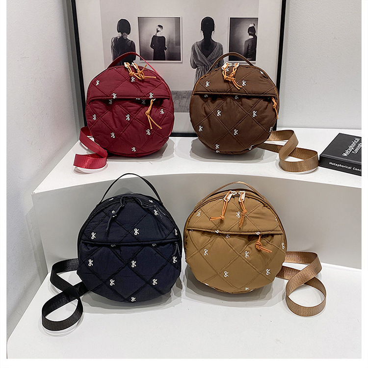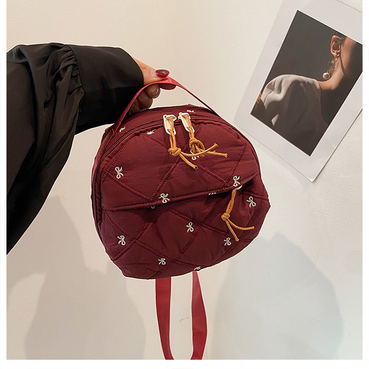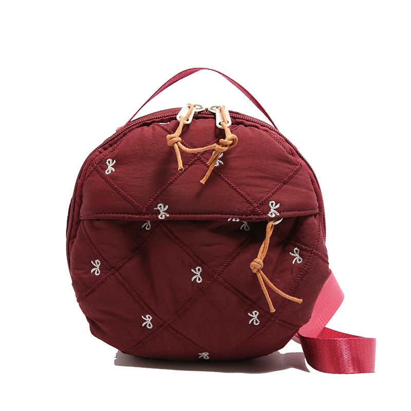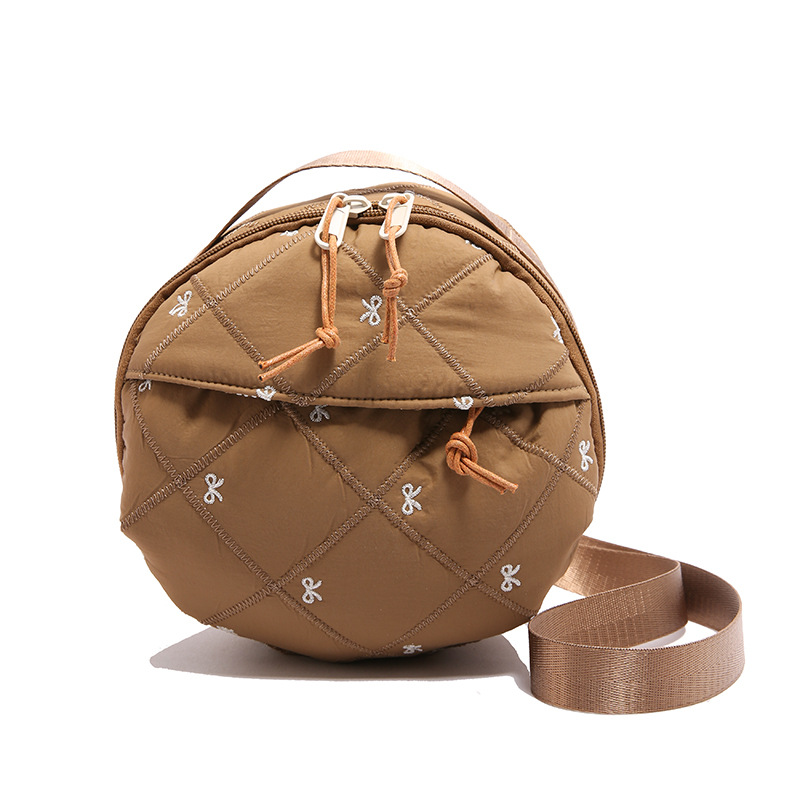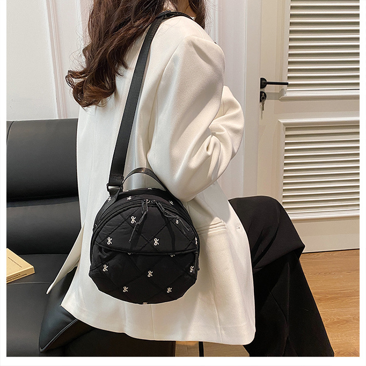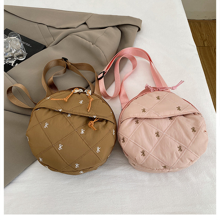2025 이른 봄 새 면 어깨 가방 여성용 가방 대용량 활 자수 라운드 가방 통근 유행 크로스 바디 백