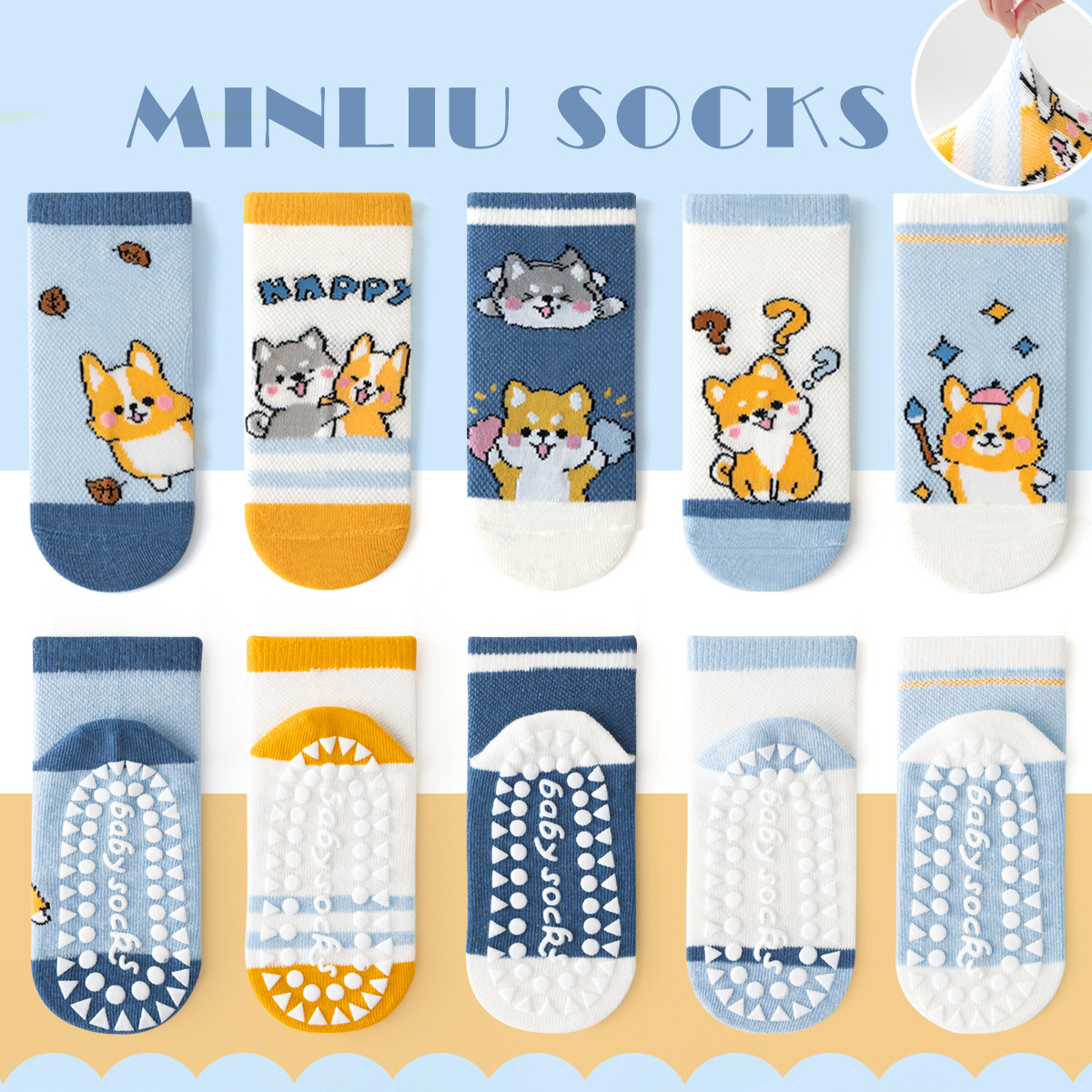 여름 미끄럼 방지 바닥 양말 소녀 양말 만화 면 양말 메쉬 통기성 어린이 귀여운 양말 봄과 여름 양말