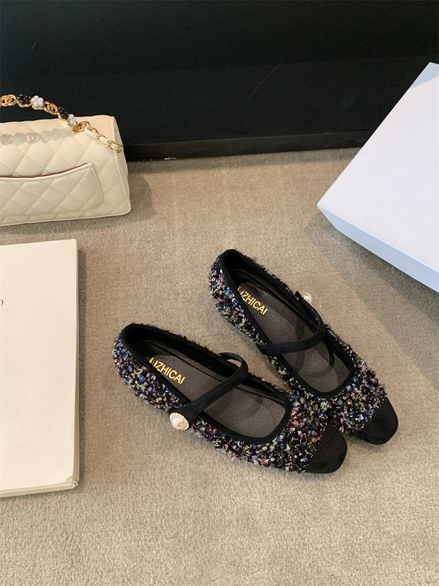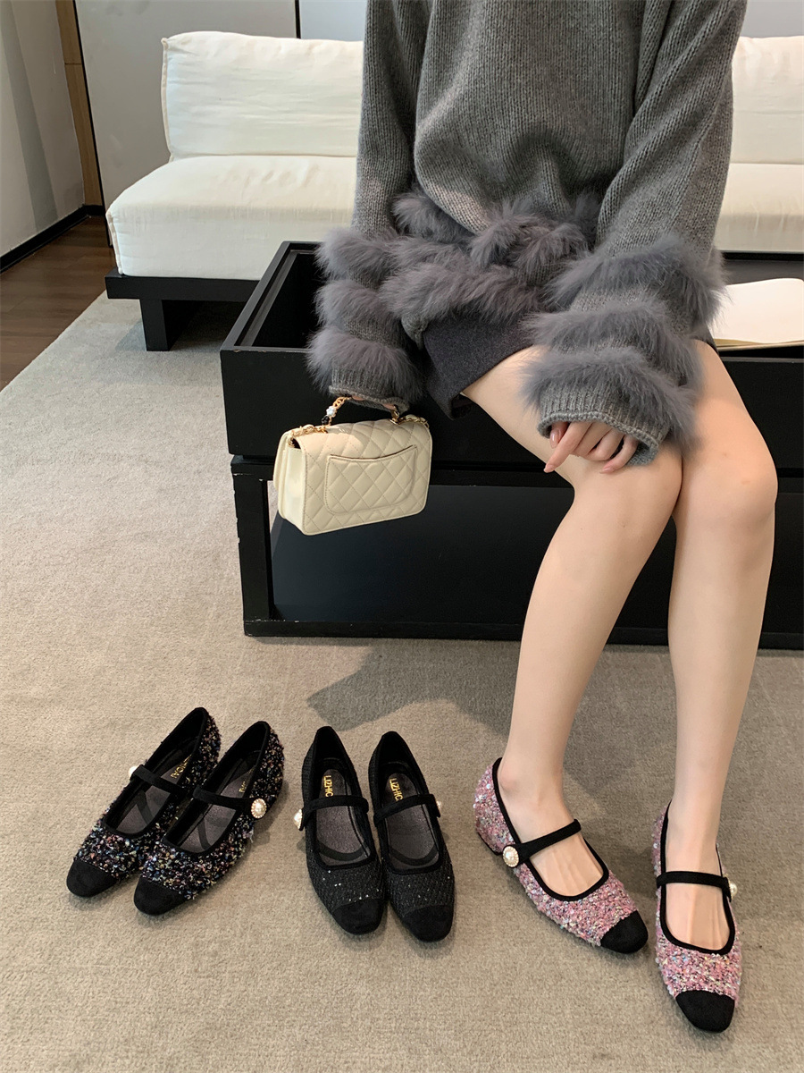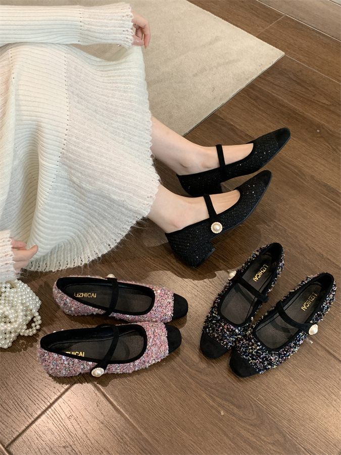 프랑스 미드 힐 샤넬 스타일 싱글 레이어 신발 여성 신발 2025 새로운 봄 원피스 스퀘어 토 메리 제인 이브닝 슈즈스토어 가기