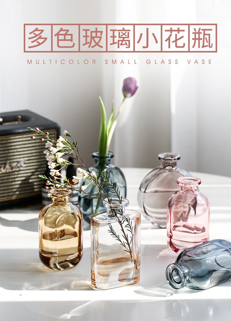 빈티지 라이트 럭셔리 양각 투명 프랑스 스타일 유리 작은 꽃병 인 스타일 홈 장식 거실 포켓 꽃 꽃병스토어 가기