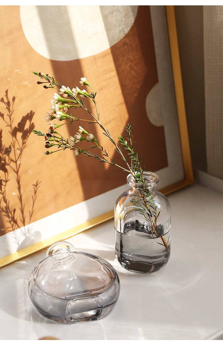 빈티지 라이트 럭셔리 양각 투명 프랑스 스타일 유리 작은 꽃병 인 스타일 홈 장식 거실 포켓 꽃 꽃병