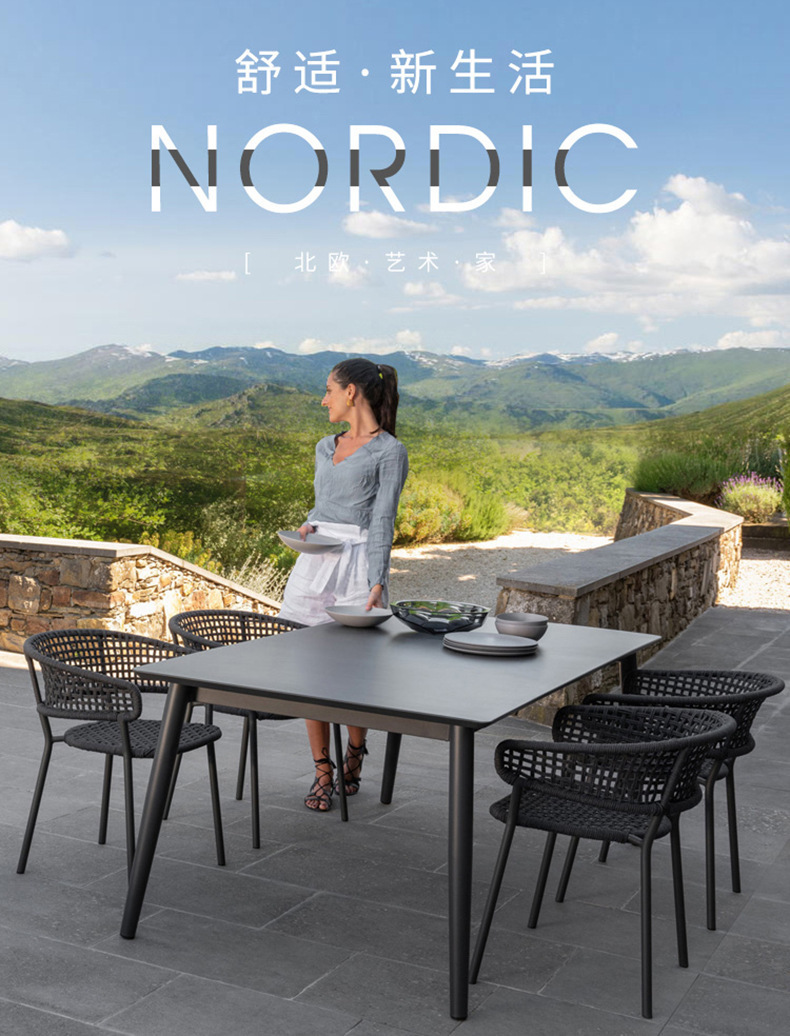 등나무 테이블과 의자 노르딕 코트야드 빌라 발코니 등나무 의자 조합 야외 호텔 레스토랑 모델 룸 레저 테이블 및 의자