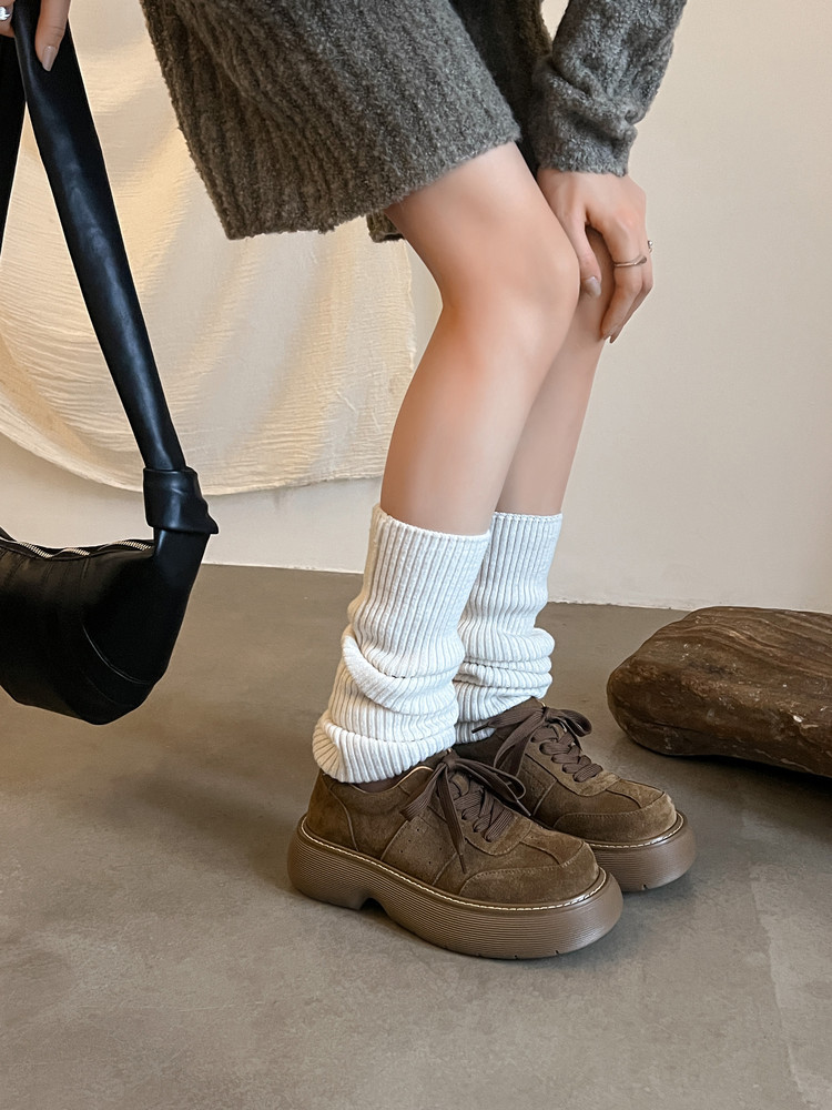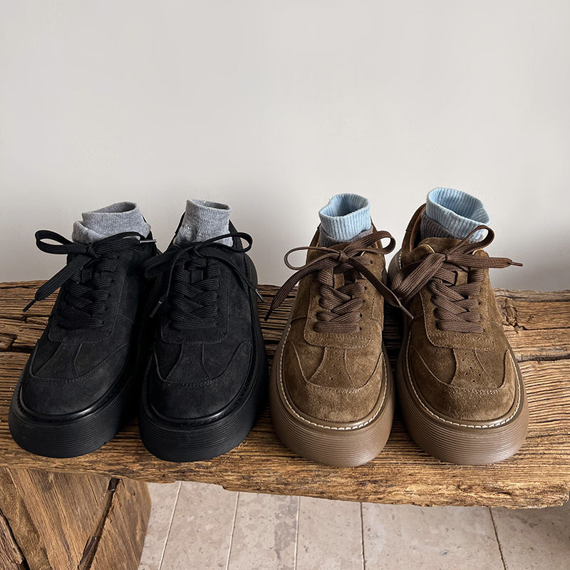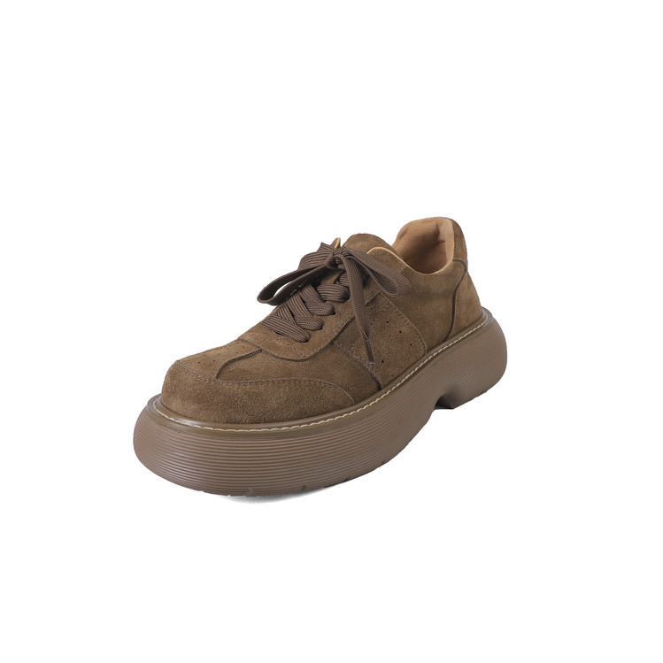 플랫폼 캐주얼 운동화 여성 플랫폼 신발 2025 이른 봄 새 암소 껍질 라운드 헤드 레이스 업 편안한 여성 신발