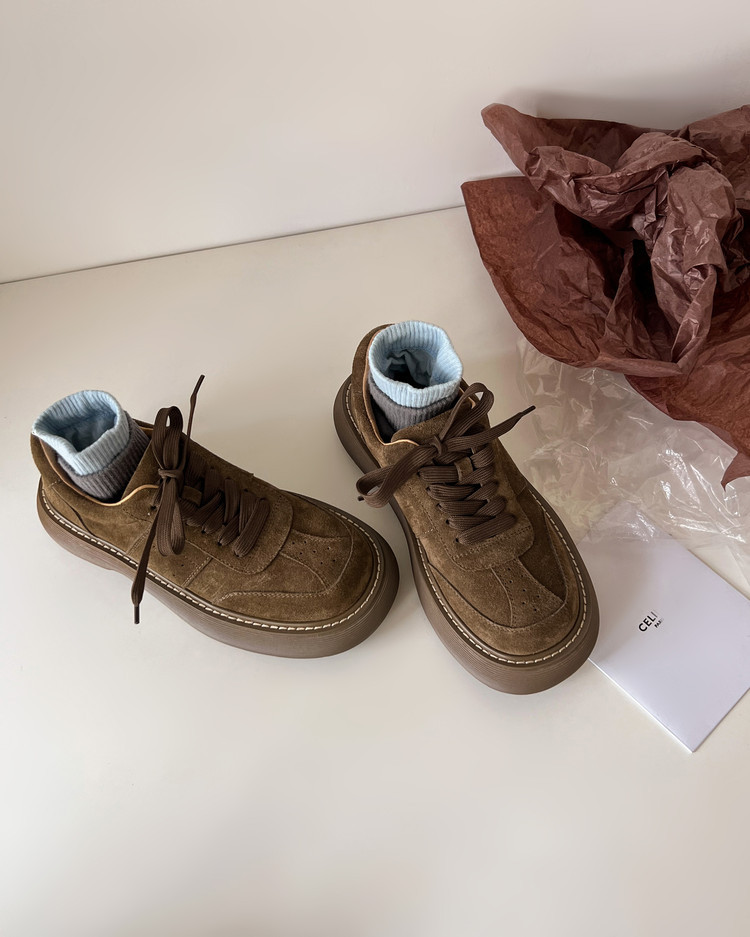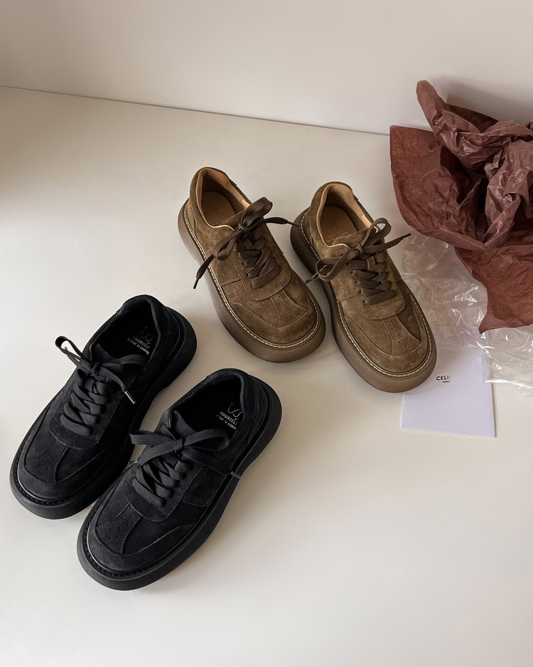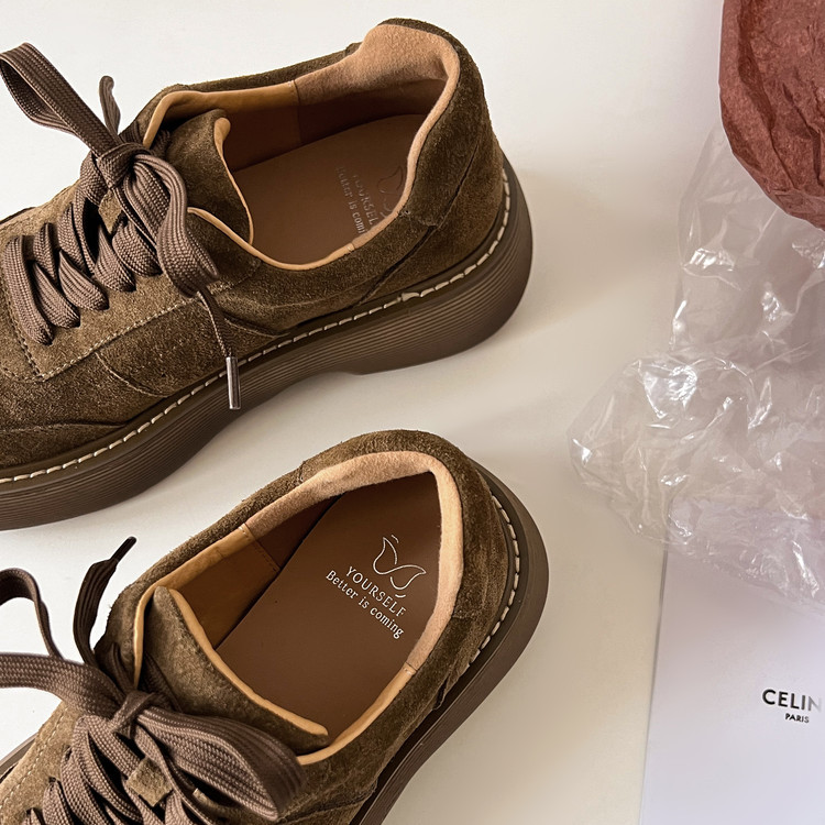 플랫폼 캐주얼 운동화 여성 플랫폼 신발 2025 이른 봄 새 암소 껍질 라운드 헤드 레이스 업 편안한 여성 신발스토어 가기