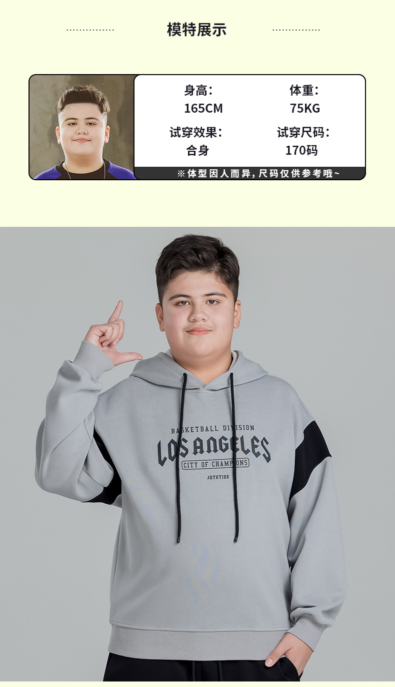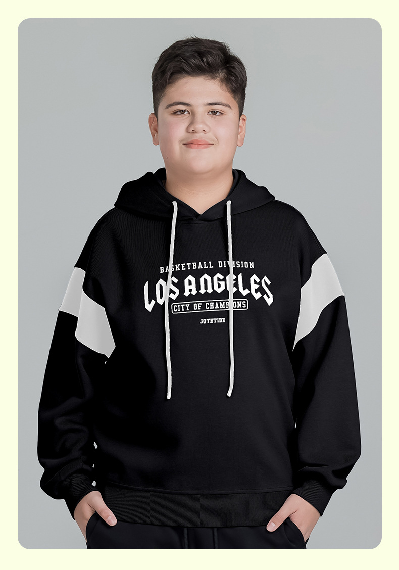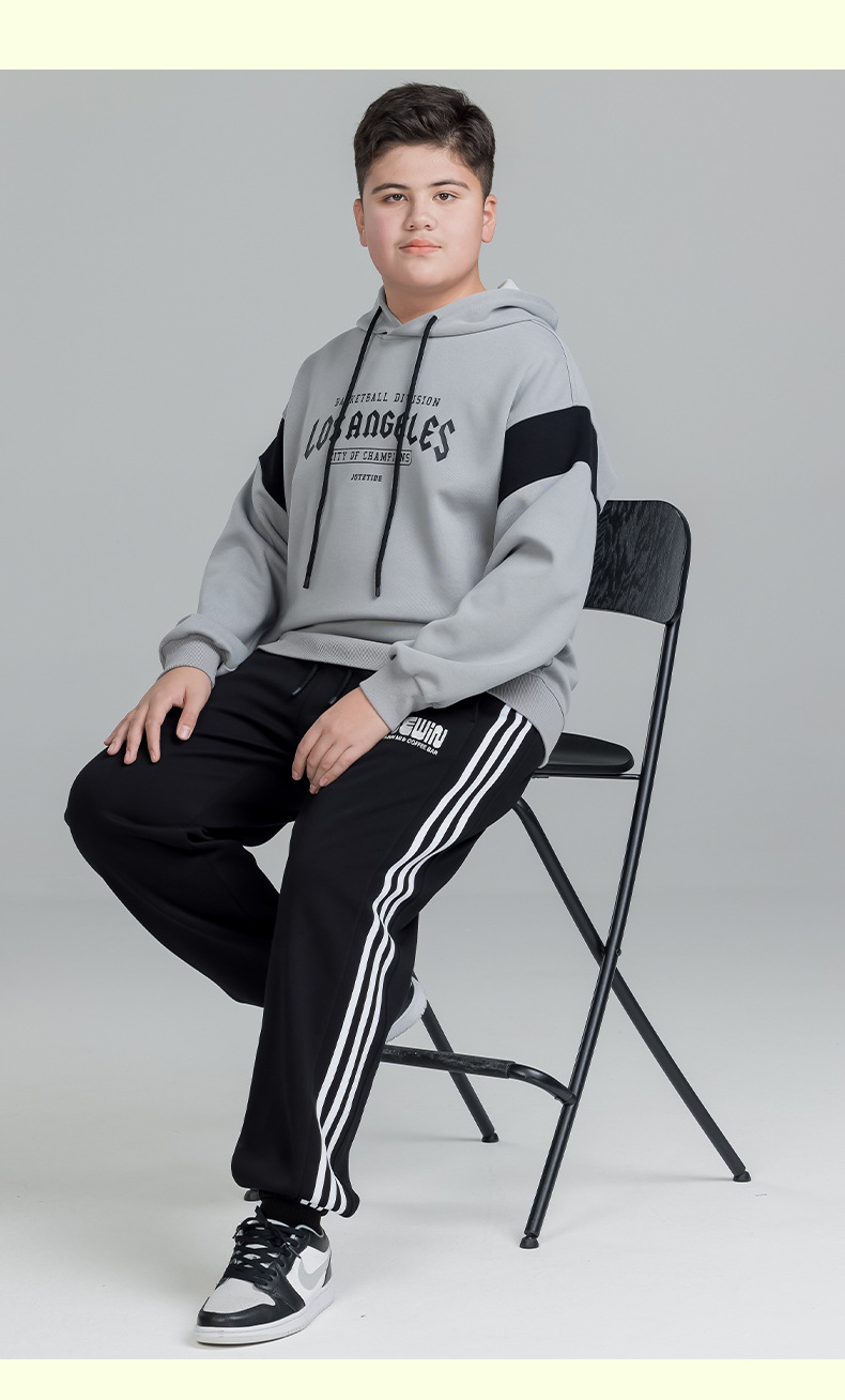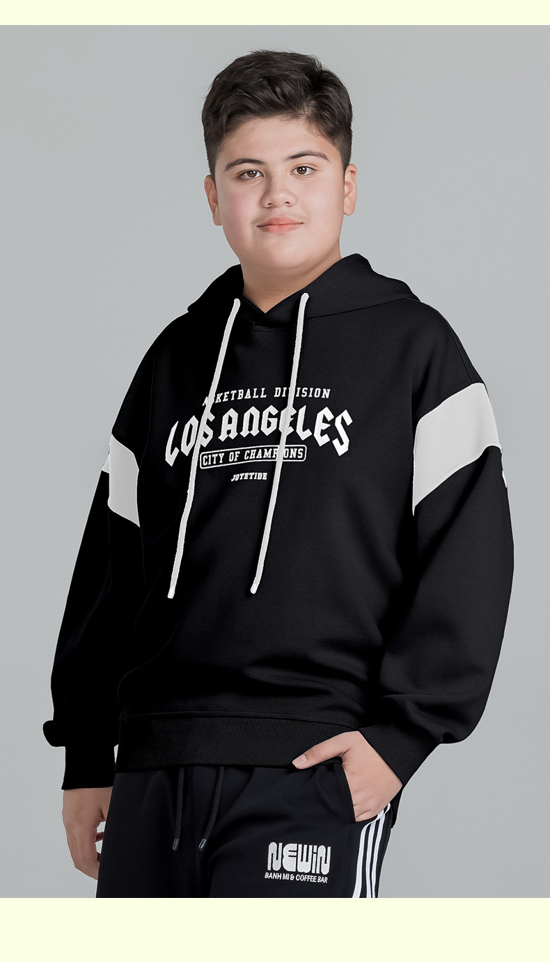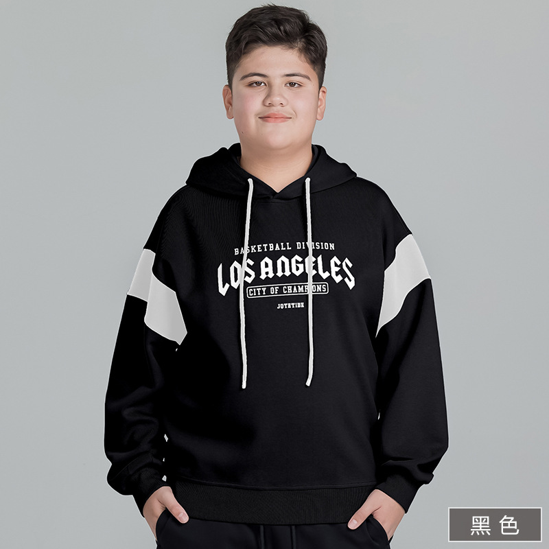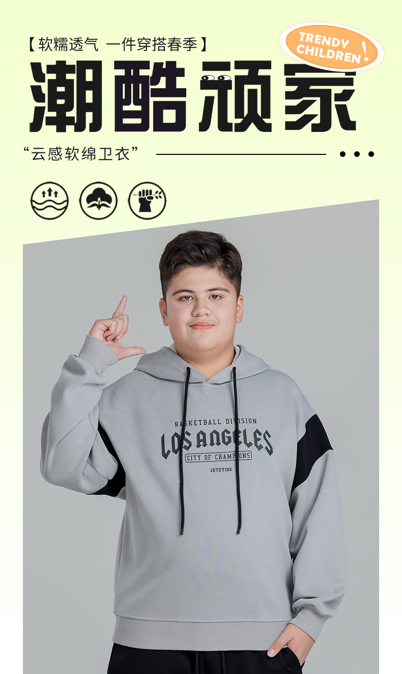 뚱뚱한 아이들의 착용 소년의 후드 스웨트 셔츠 아우터 플러스 뚱뚱한 플러스 봄 2025 봄 새로운 중학교 학생 느슨한 코트스토어 가기