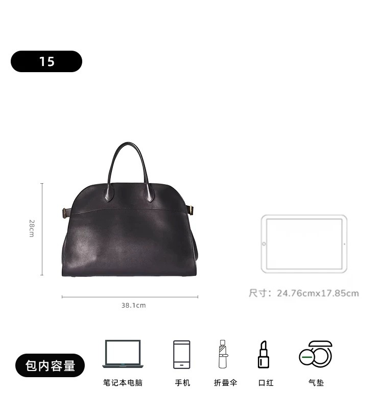 고급 품질 T*ROW 미니멀리스트 휴대용 토트 백 Margaux15 통근er 반투명 가죽 대용량 플래티넘 가방