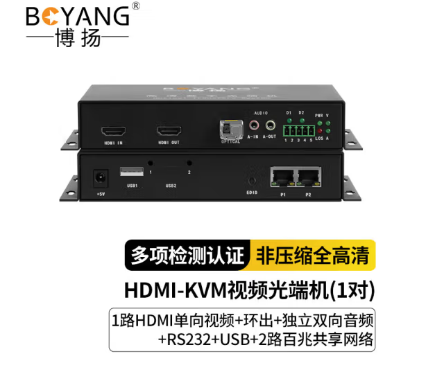 博扬 非压缩全高清HDMI-KVM视频光端机1路视频+环出+独立双向音频+RS232+USB+2路百兆网络 1对 BY-1HUSE*1*合格证*1保修卡*1