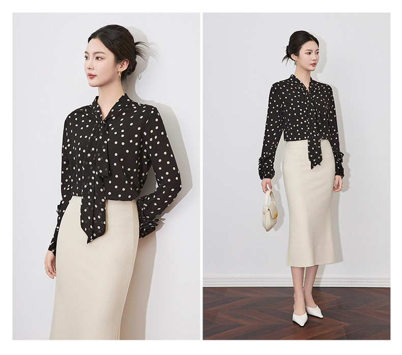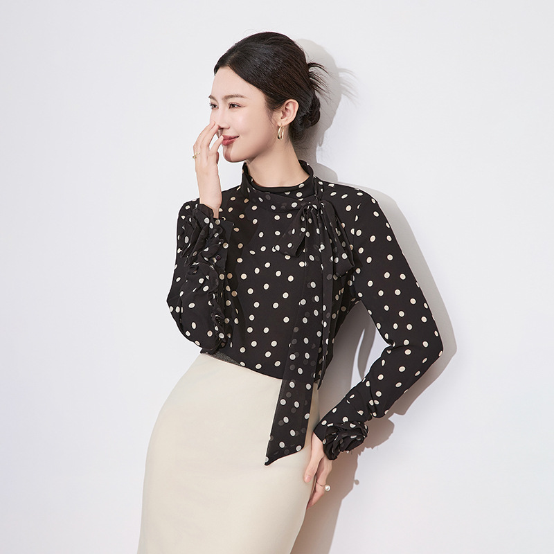 2501511-Nanyou 패션 우아한 스마트 활 프렌치 웨이브 도트 쉬폰 셔츠 이른 봄 기질 재킷스토어 가기