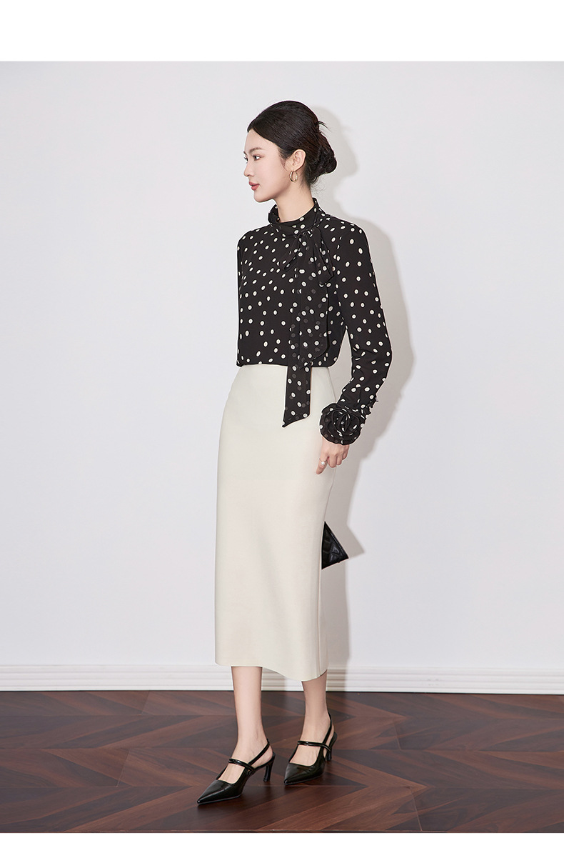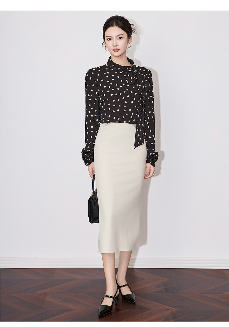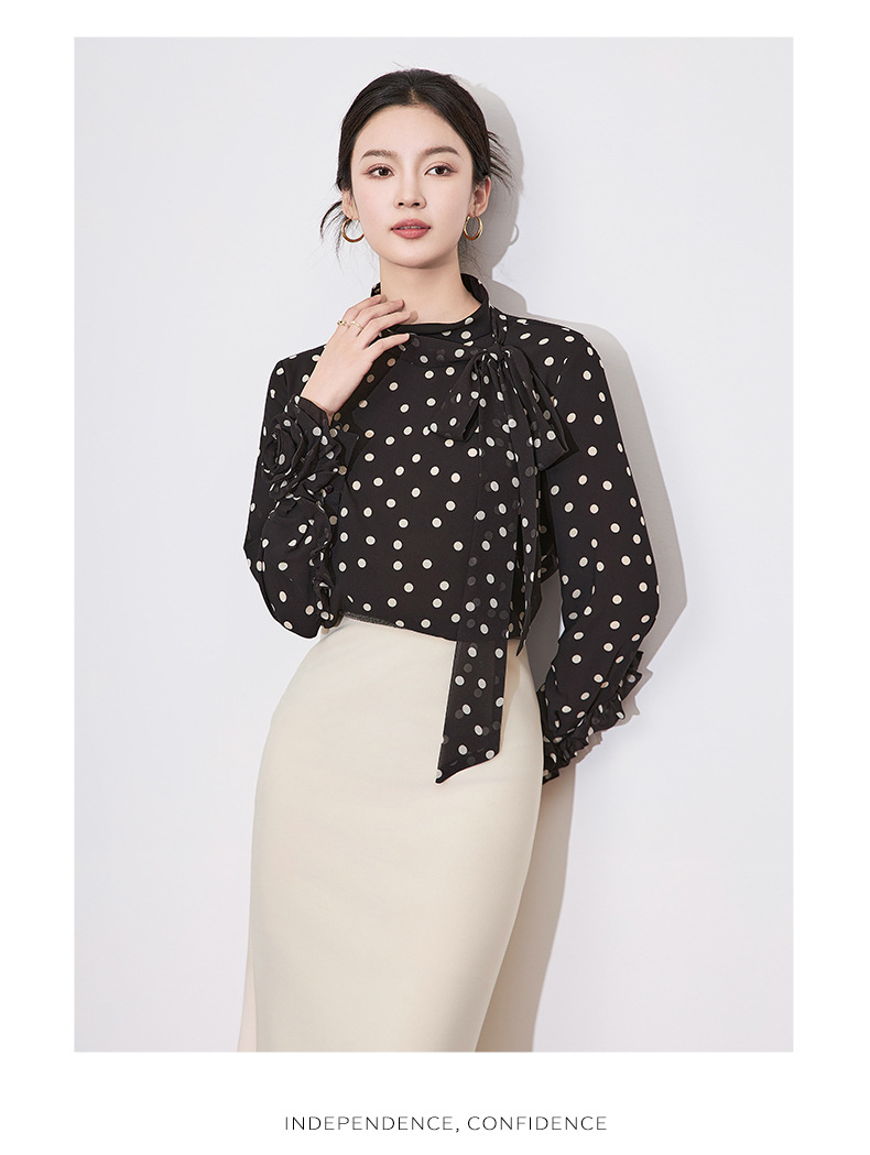 2501511-Nanyou 패션 우아한 스마트 활 프렌치 웨이브 도트 쉬폰 셔츠 이른 봄 기질 재킷