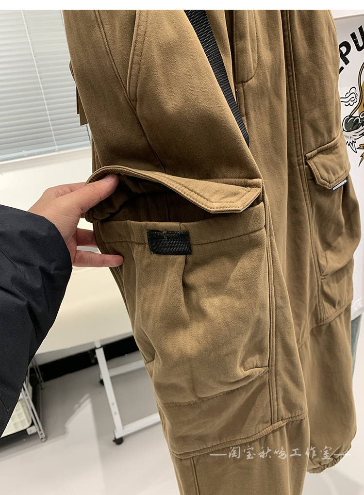 무거운 기모 따뜻하지 않은 미국 스타일 대형 포켓 작업복 캐주얼 바지 남자 겨울 스냅 인 타이드스토어 가기