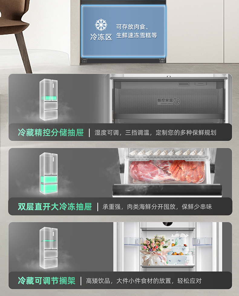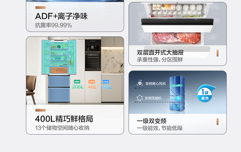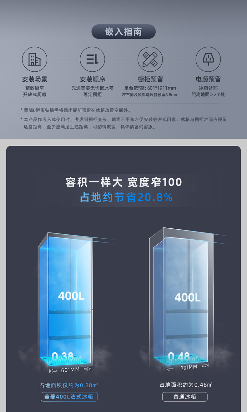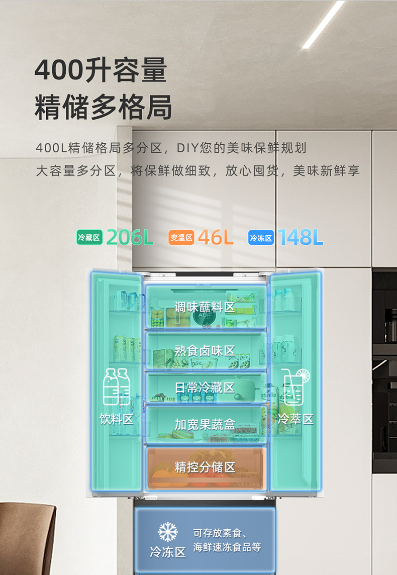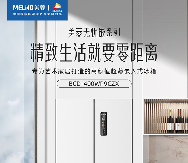 Meiling BCD-400WP9CZX 도어 투 도어 레벨 1 제로 임베디드 초박형 냉장고 공랭식 프로스트 프리 냉장고스토어 가기