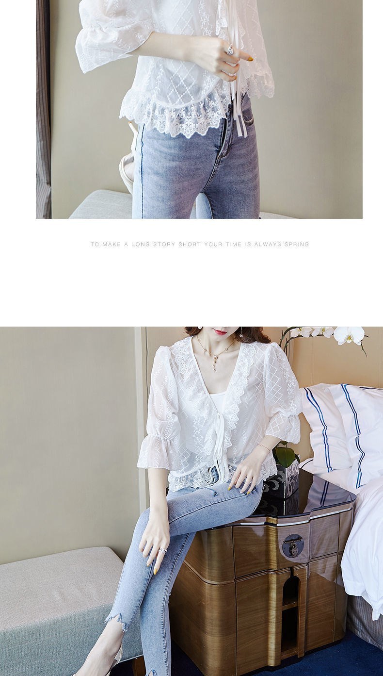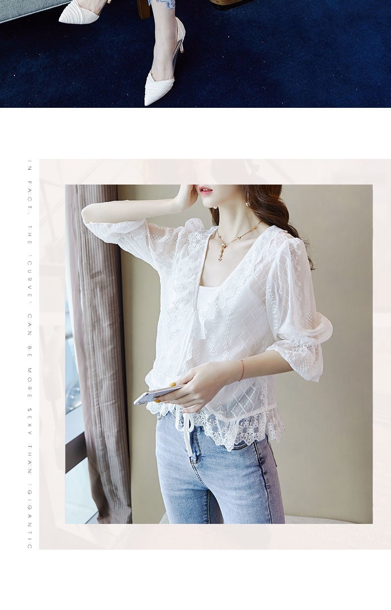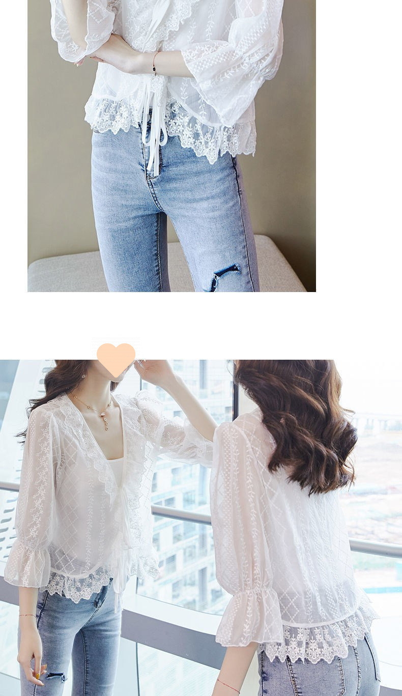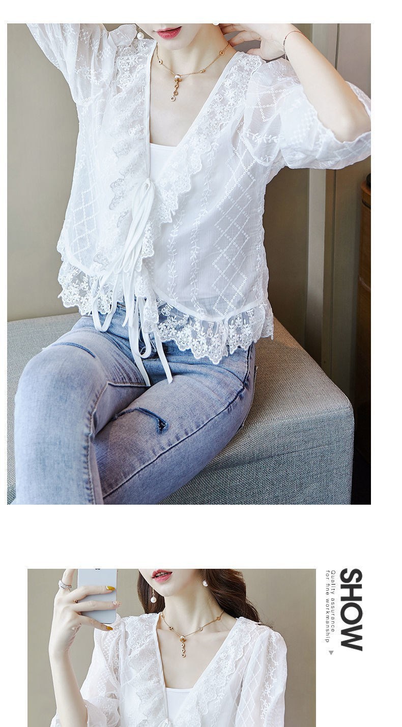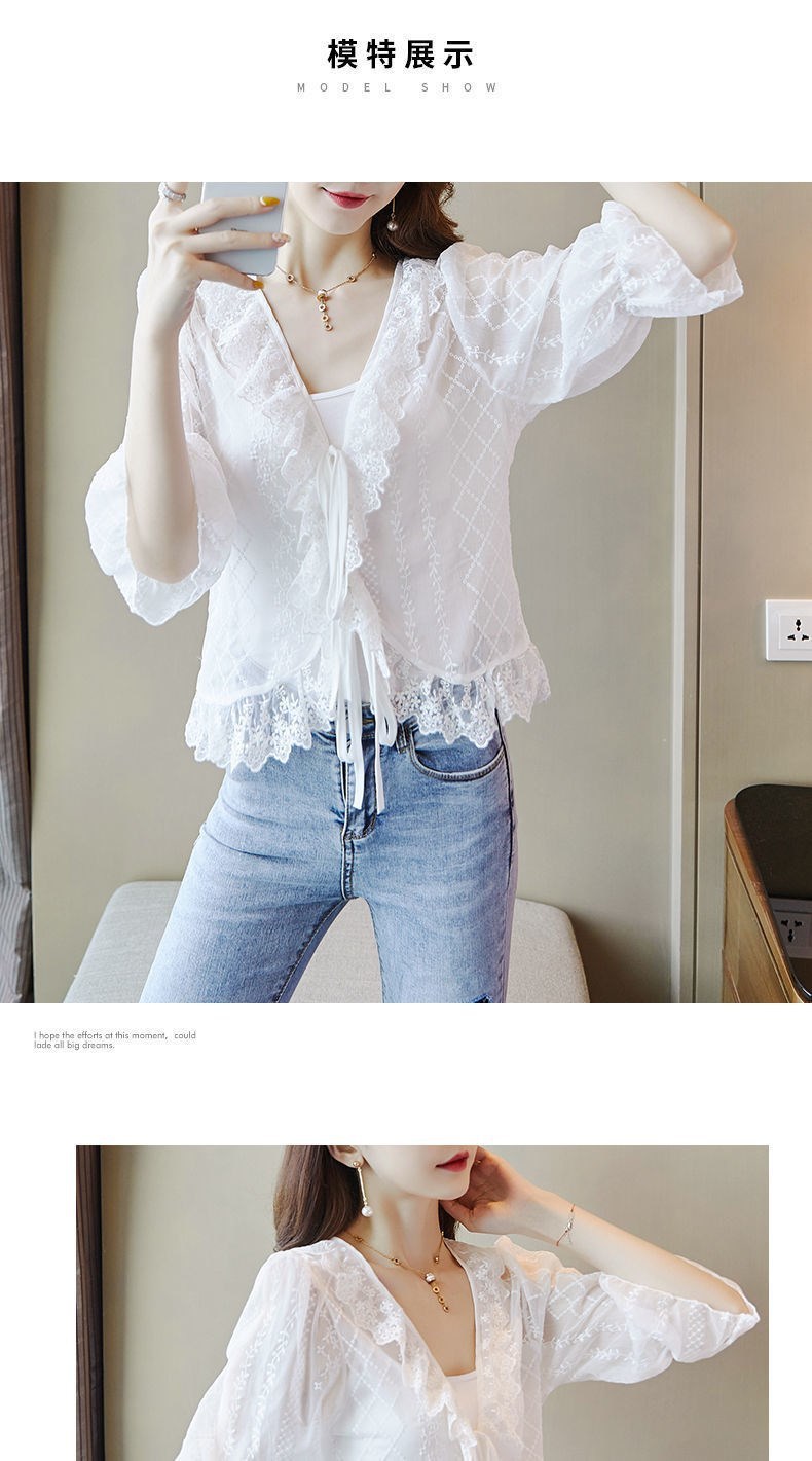 쉬폰 선 카디건 얇은 여성 여름 목도리 아우터 쇼트 탑 미드 슬리브 블라우스 레이스 스몰 웨이스트 코트스토어 가기