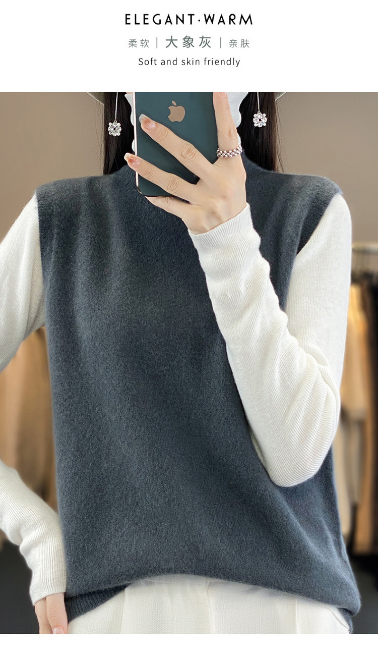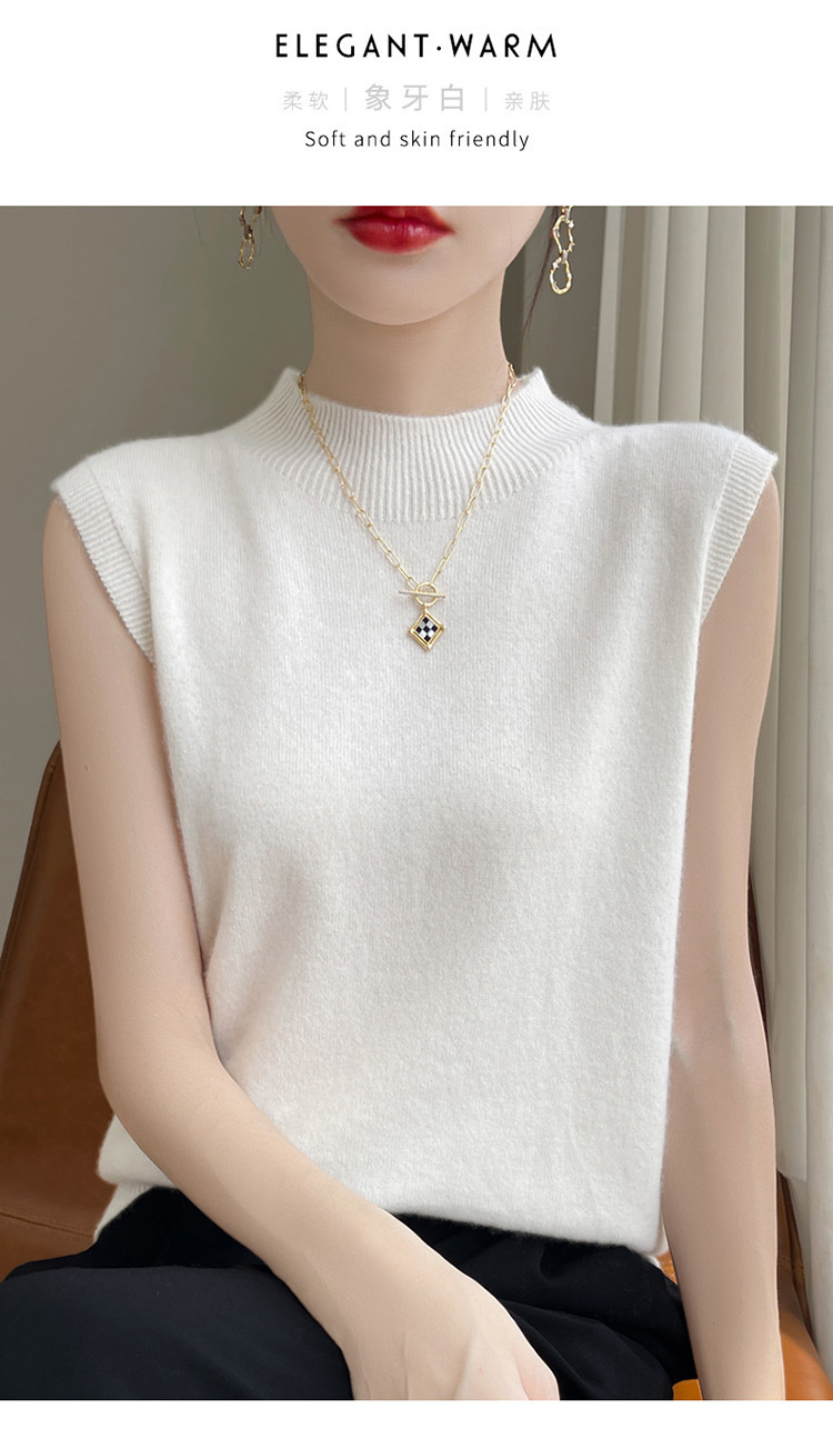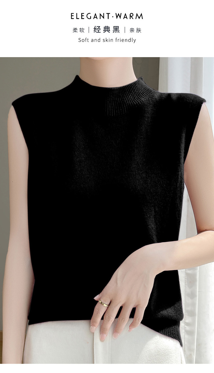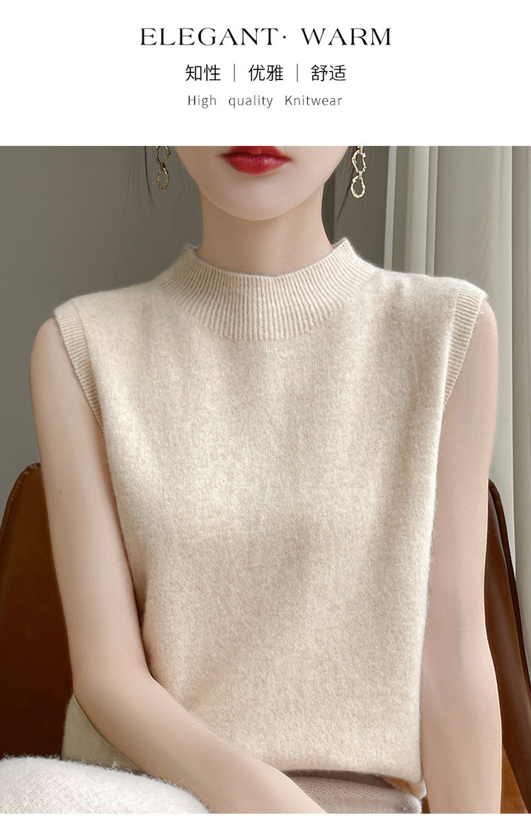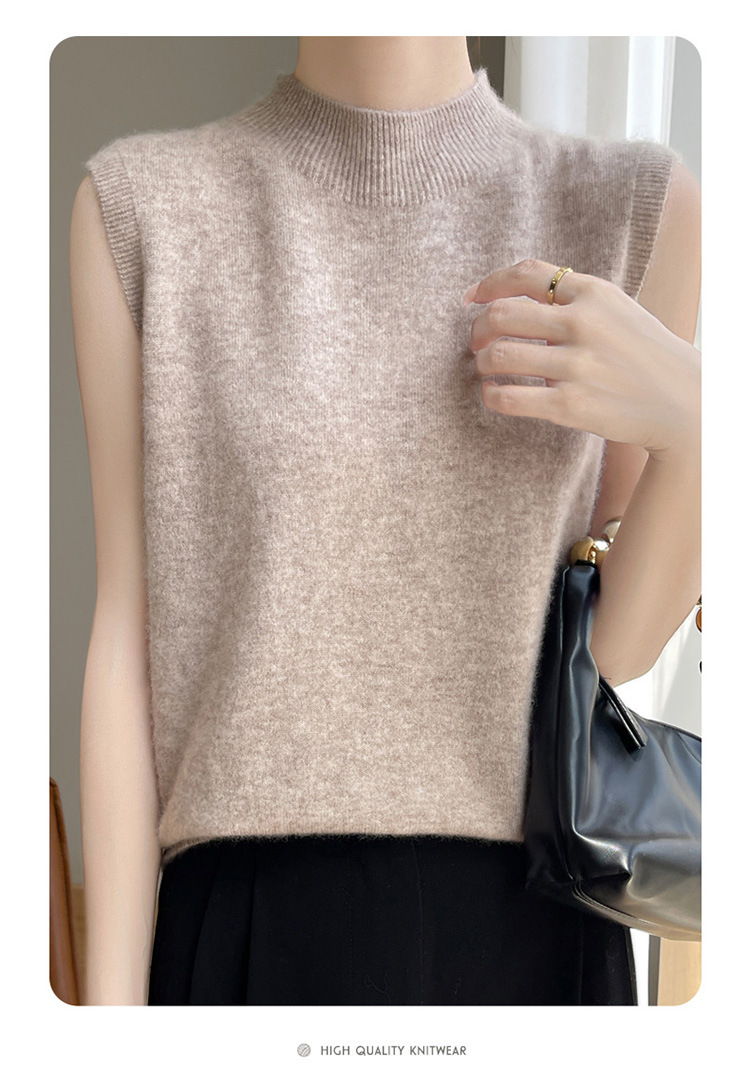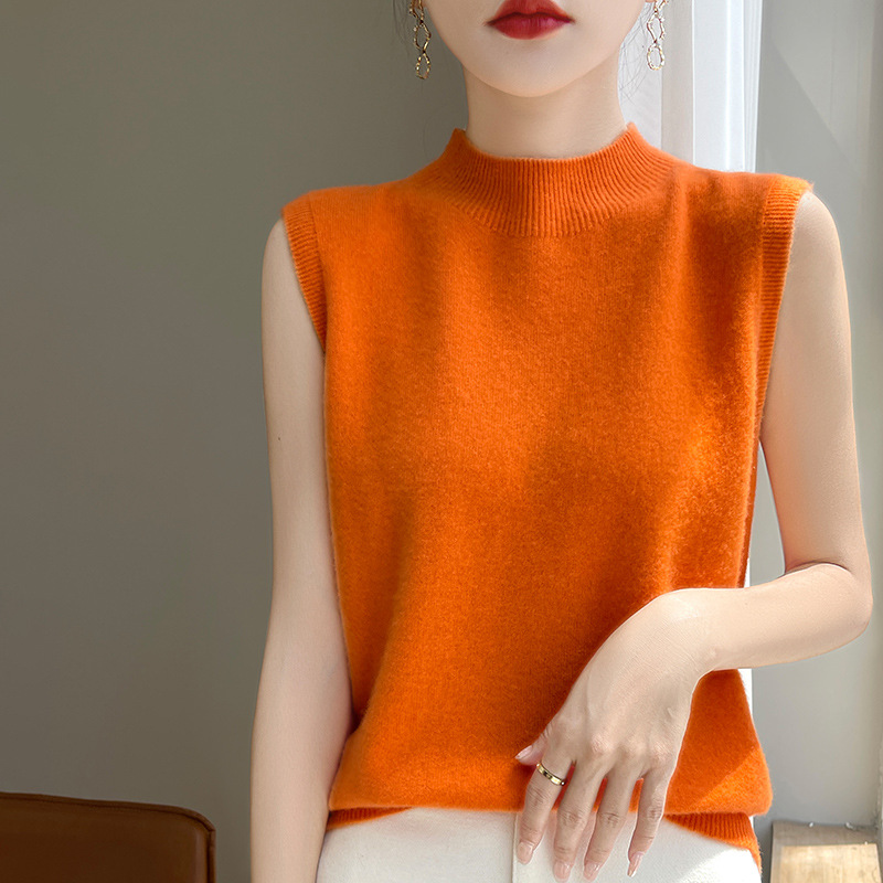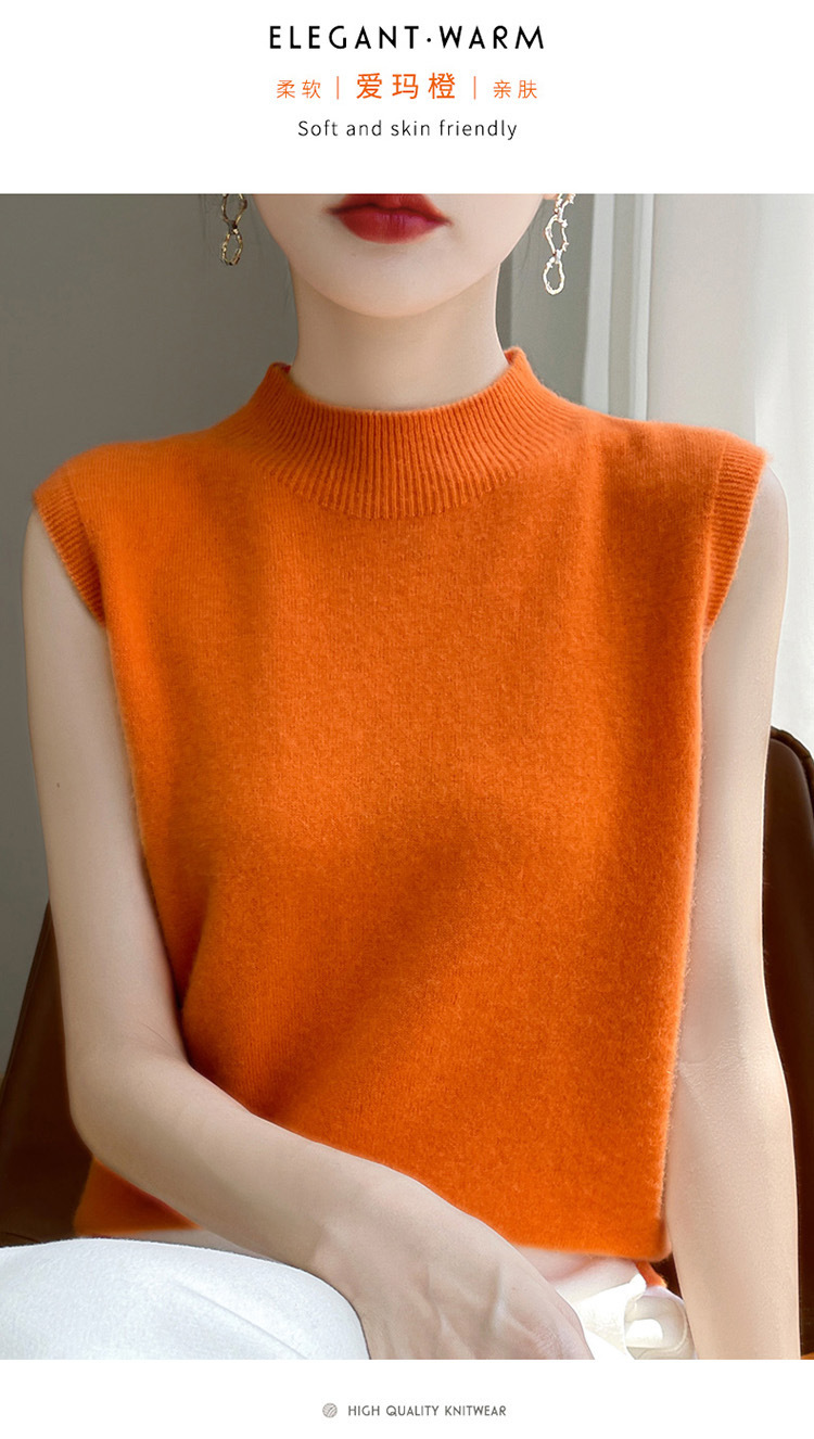프론트 라인 의류 여성 하프 높이 민소매 티셔츠 솔리드 컬러 니트 풀오버 조끼 가을 및 겨울 새로운 캐시미어 패션 조끼스토어 가기