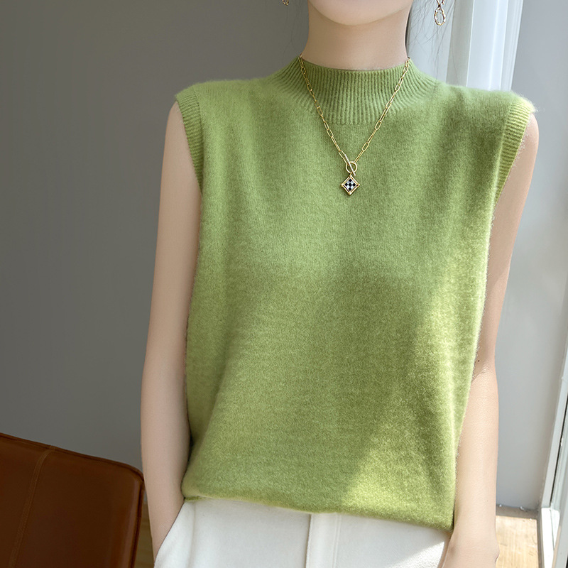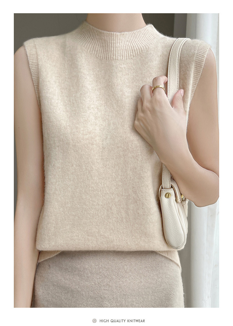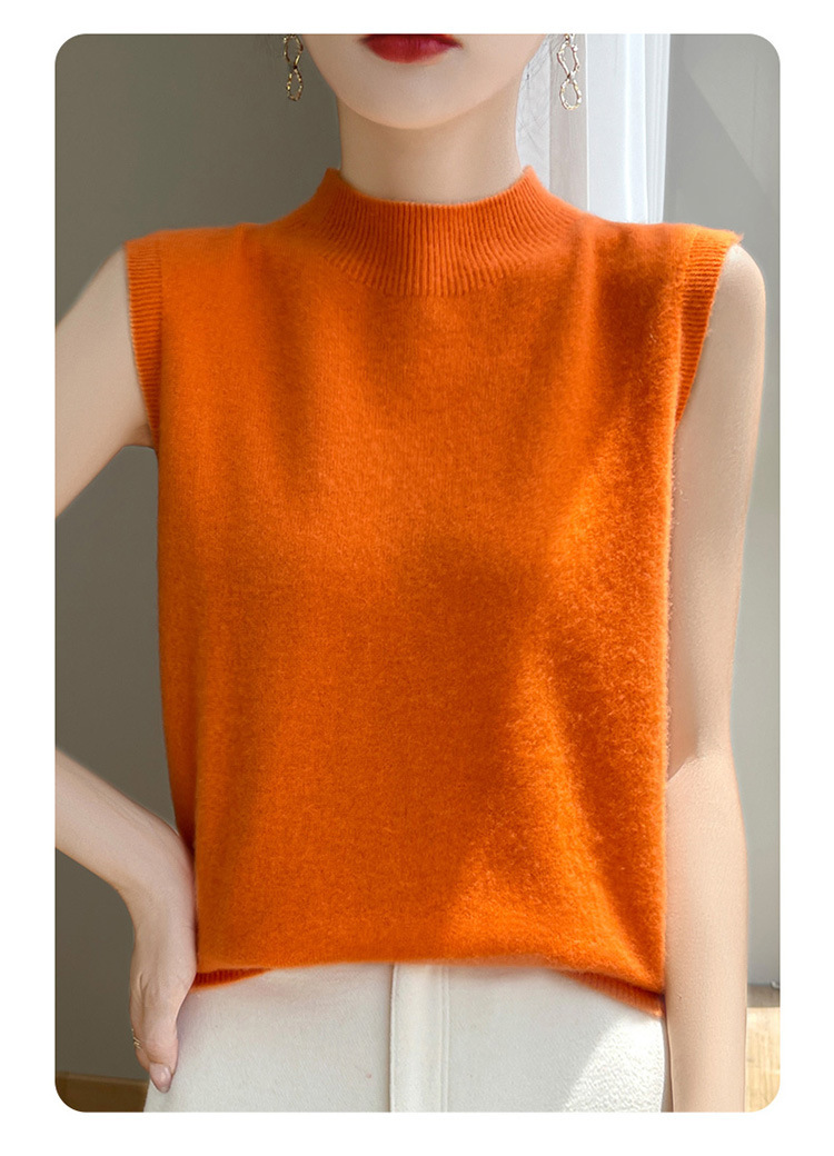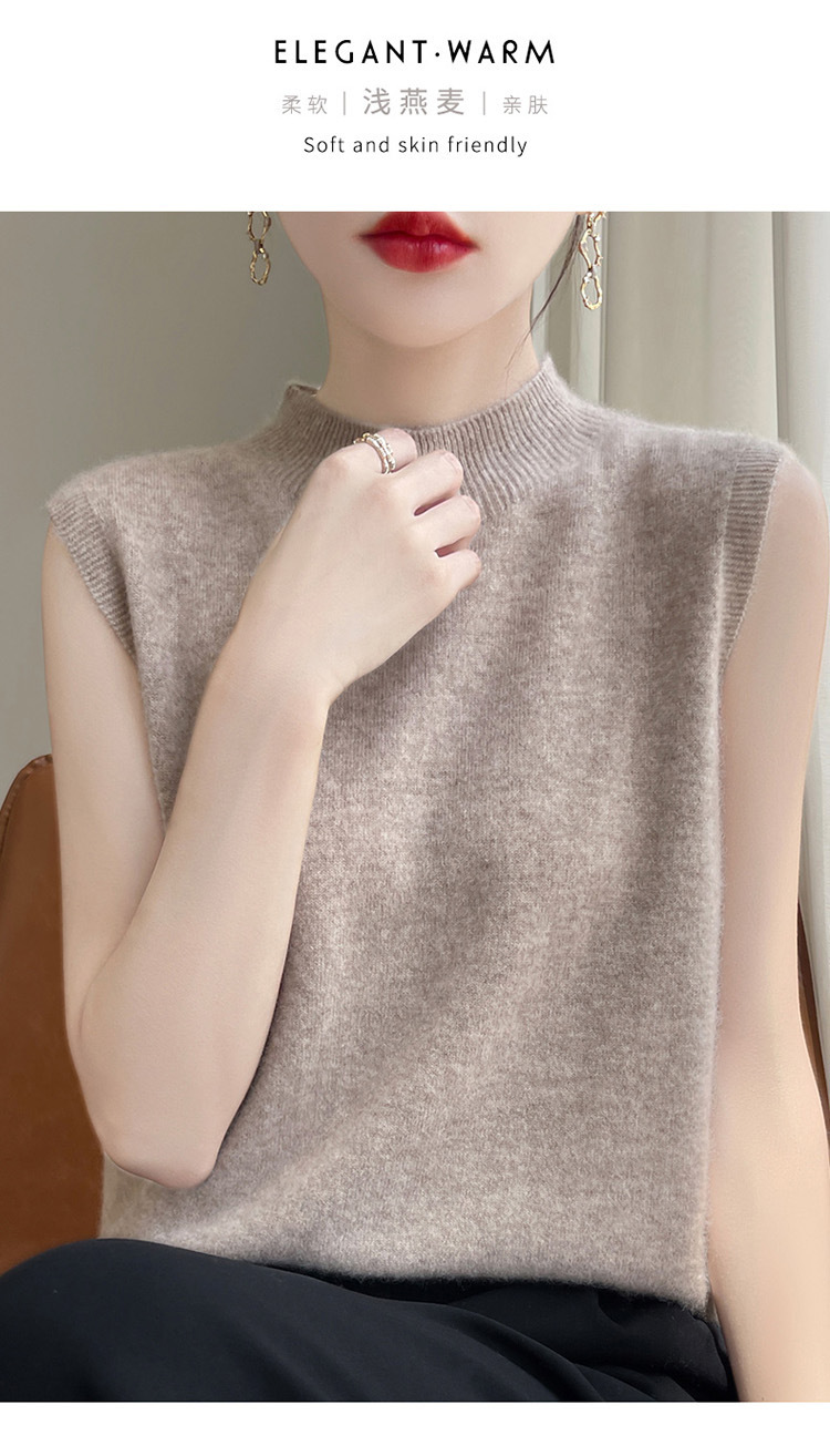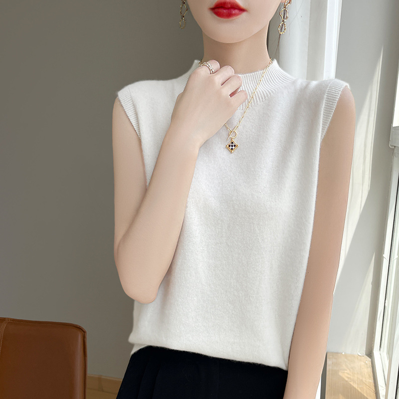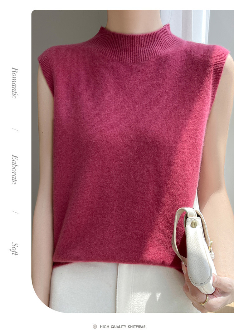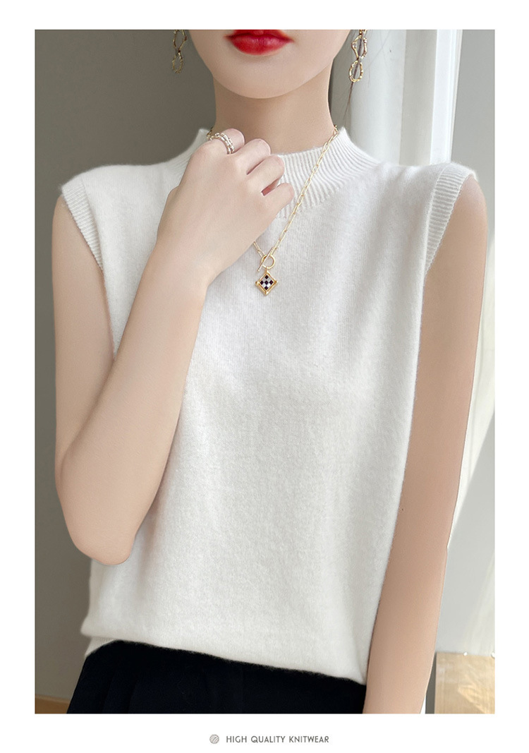프론트 라인 의류 여성 하프 높이 민소매 티셔츠 솔리드 컬러 니트 풀오버 조끼 가을 및 겨울 새로운 캐시미어 패션 조끼스토어 가기