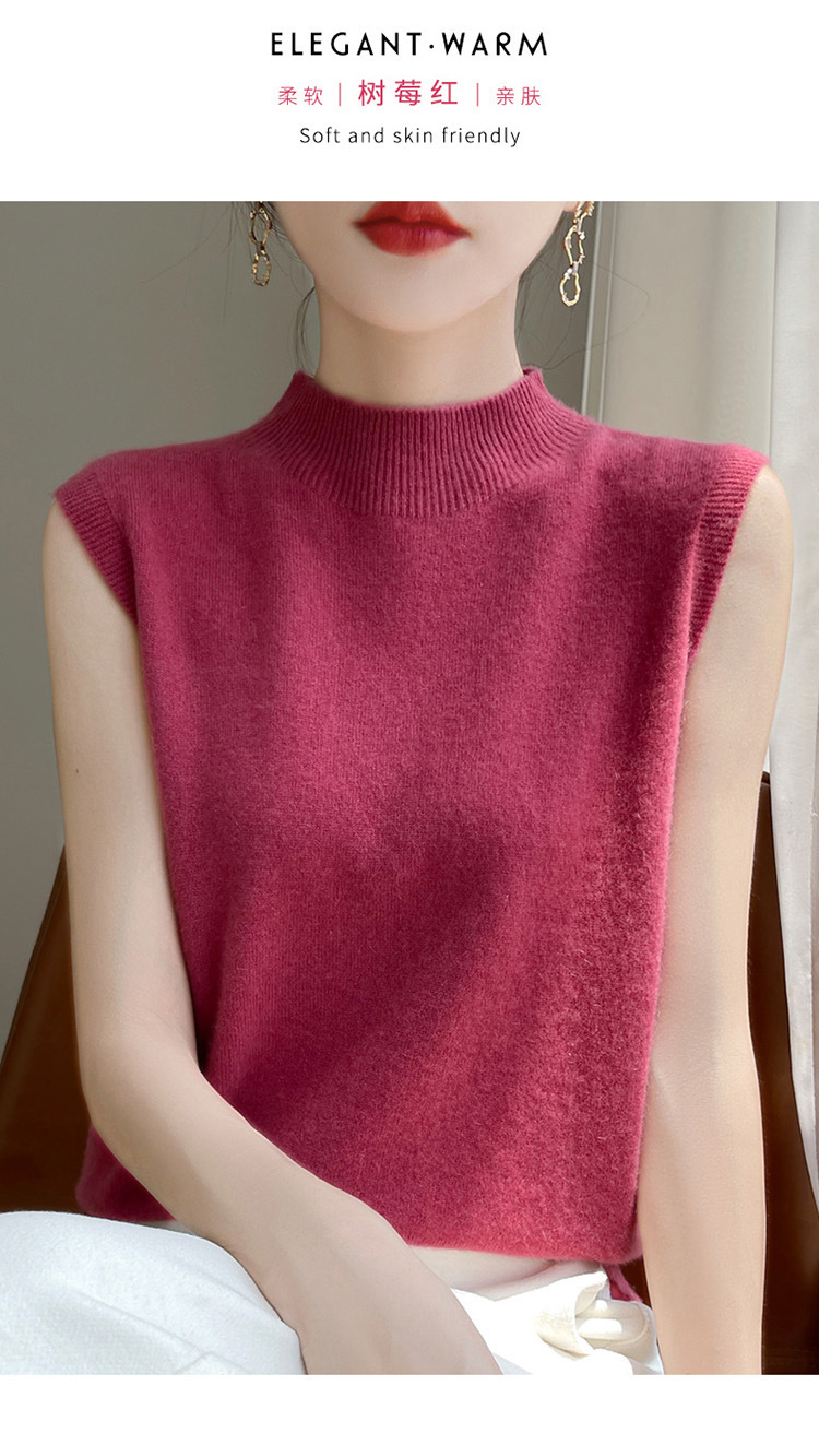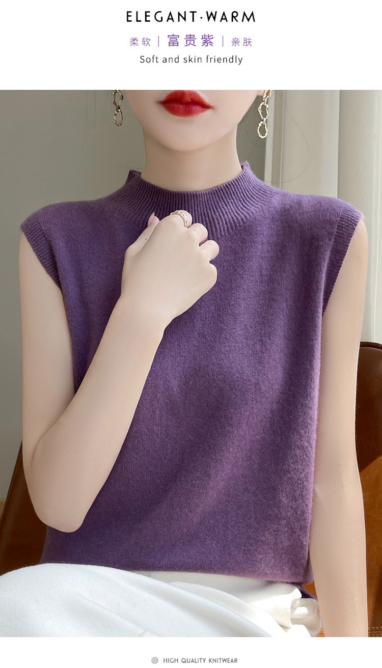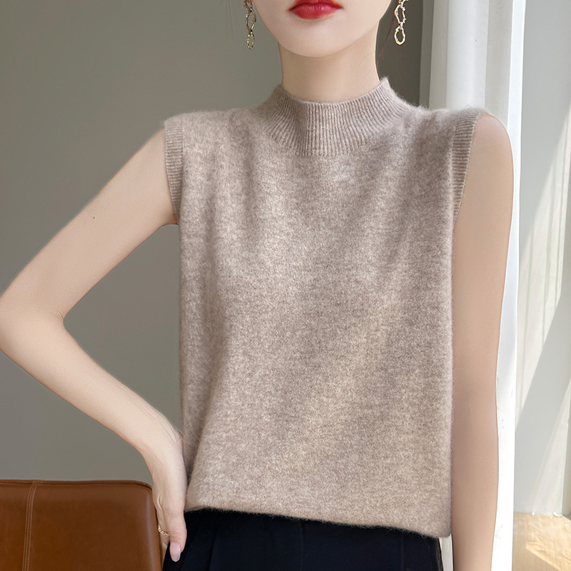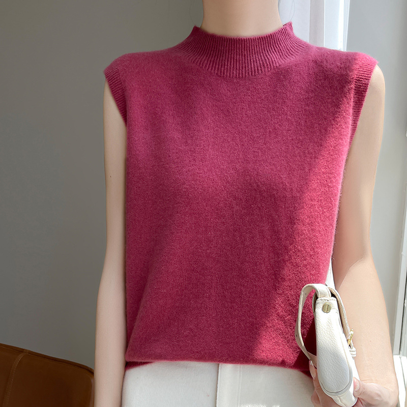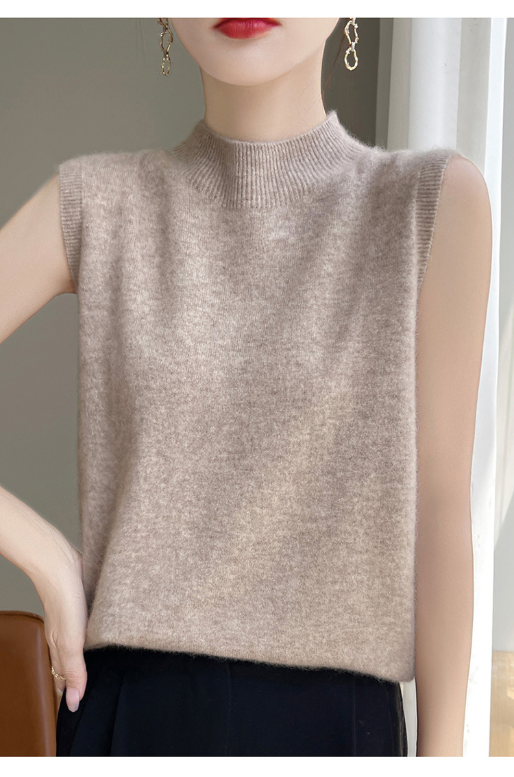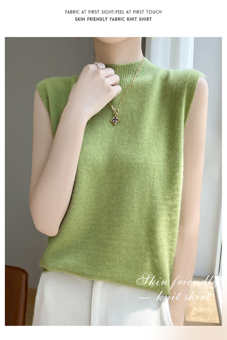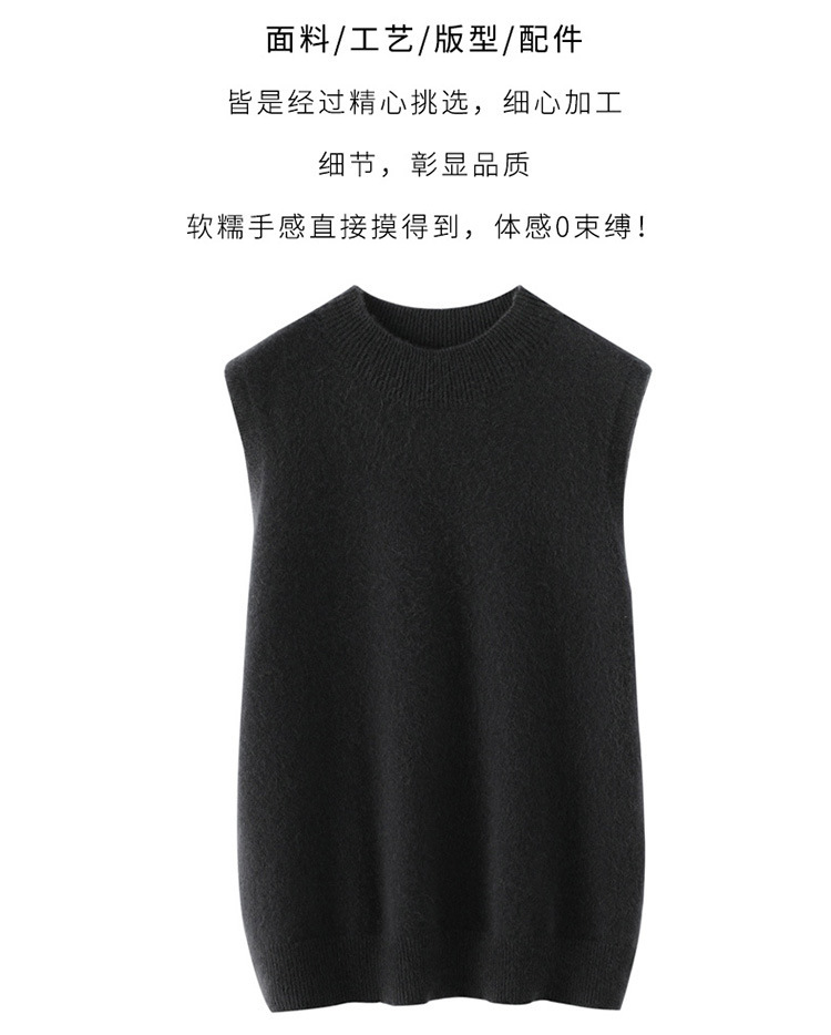 프론트 라인 의류 여성 하프 높이 민소매 티셔츠 솔리드 컬러 니트 풀오버 조끼 가을 및 겨울 새로운 캐시미어 패션 조끼스토어 가기