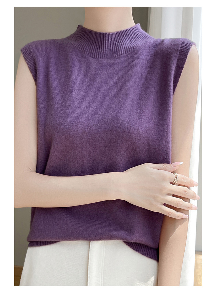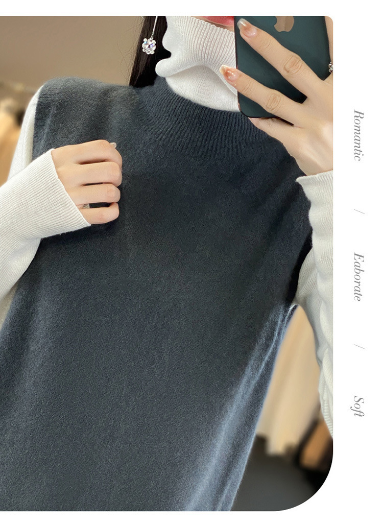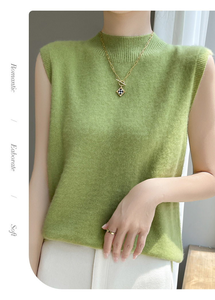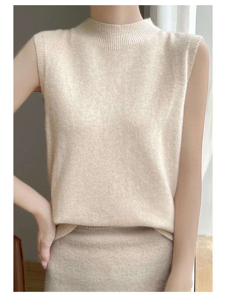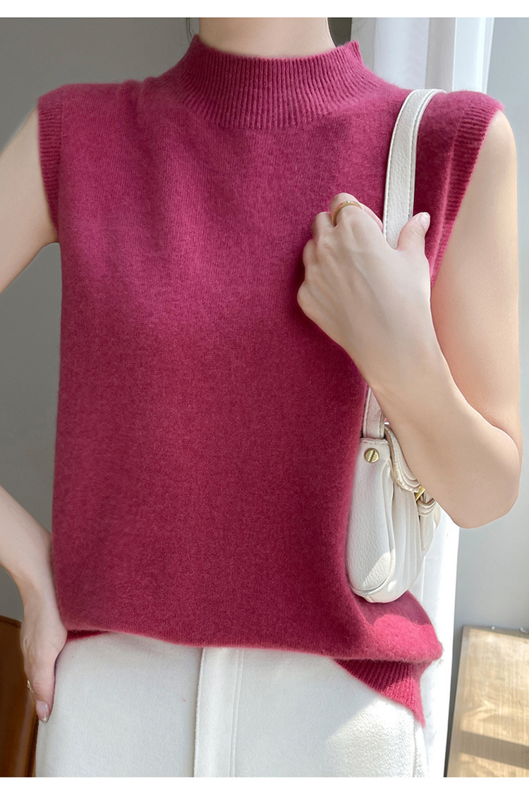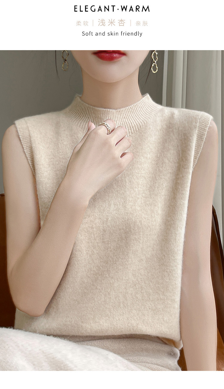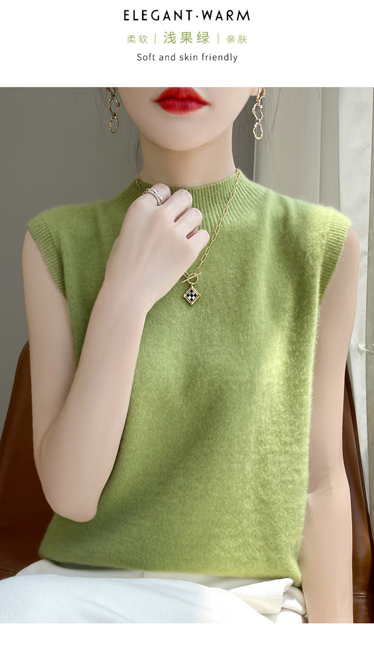 프론트 라인 의류 여성 하프 높이 민소매 티셔츠 솔리드 컬러 니트 풀오버 조끼 가을 및 겨울 새로운 캐시미어 패션 조끼스토어 가기
