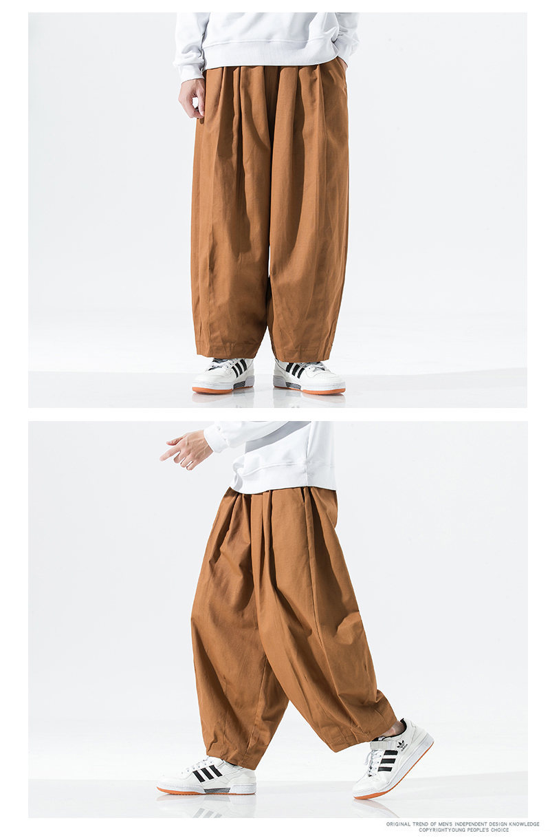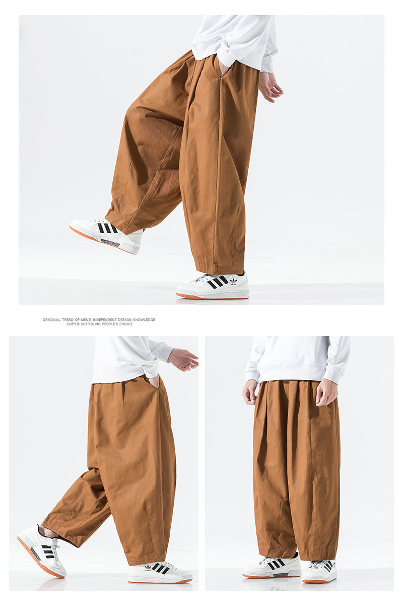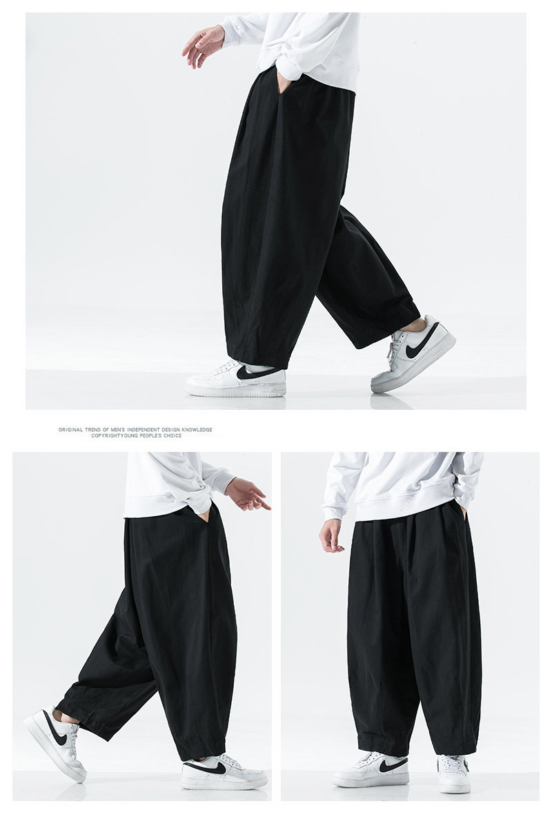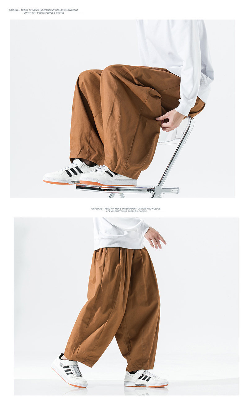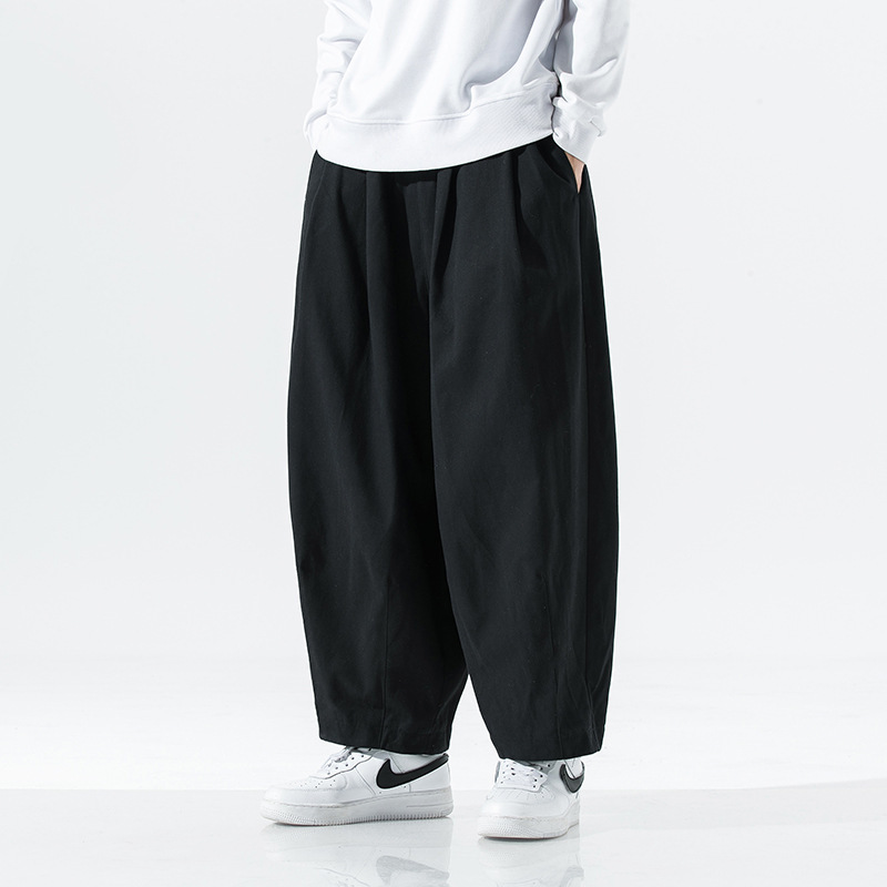 2024 봄 새로운 일본 플러스 사이즈 남성 와이드 레그 블루머스 심플 솔리드 컬러 느슨한 할란 작업복 캐주얼 바지