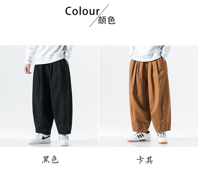 2024春季新款日系大码男士阔腿灯笼裤简约纯色宽松哈伦工装休闲裤
