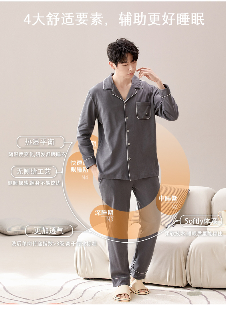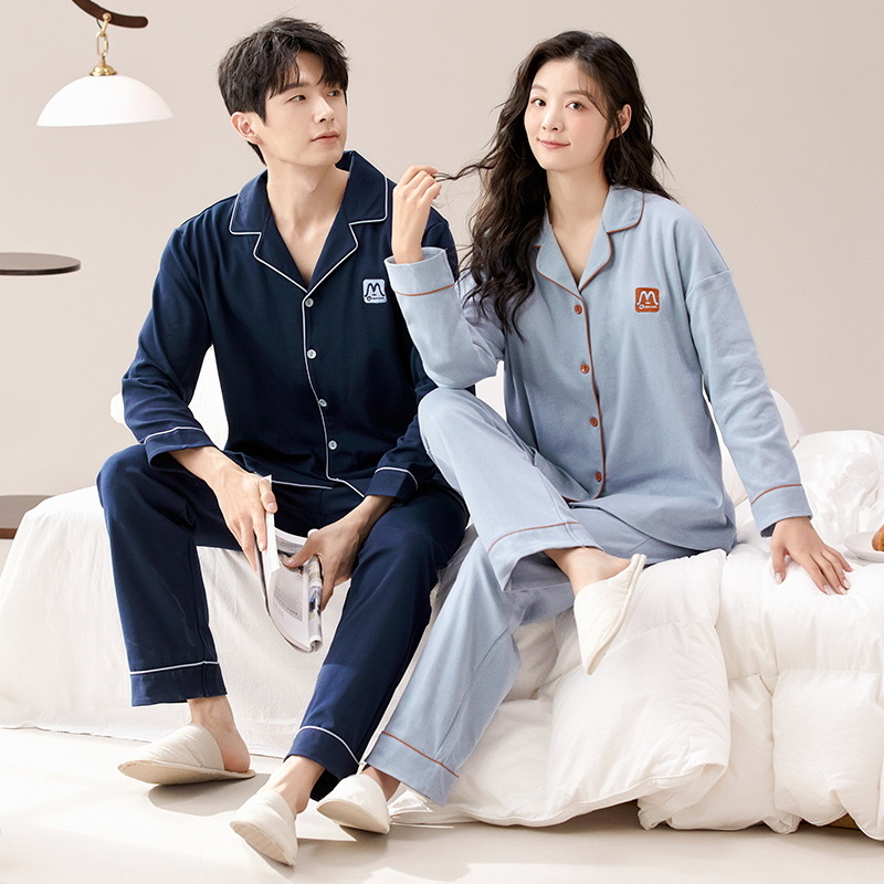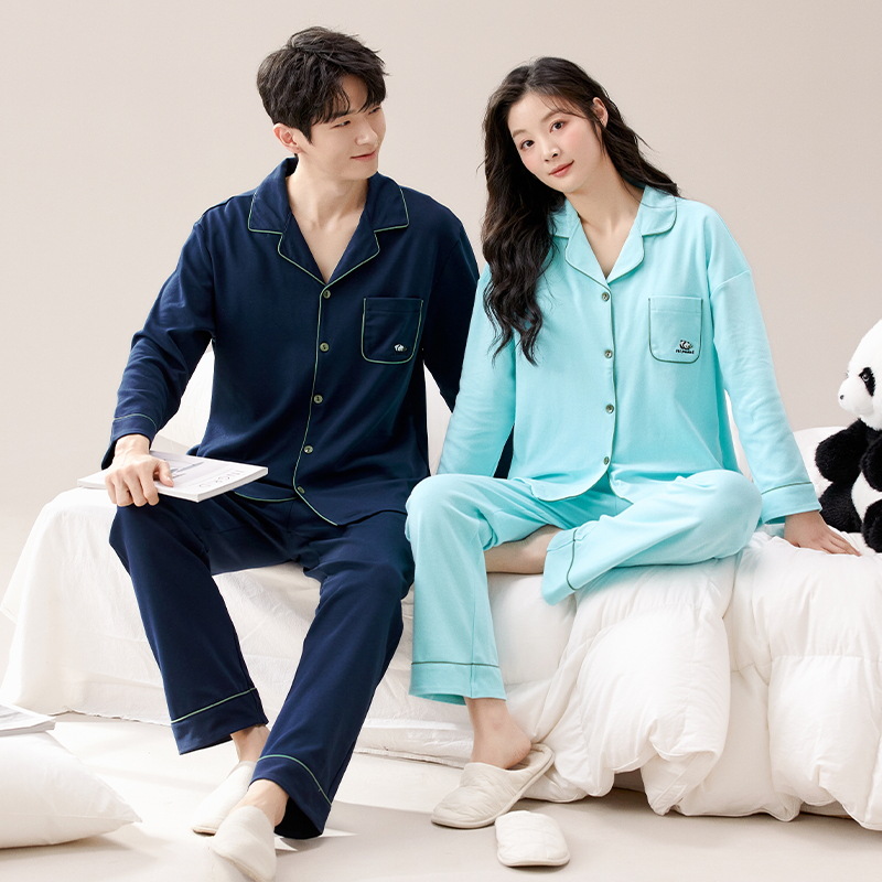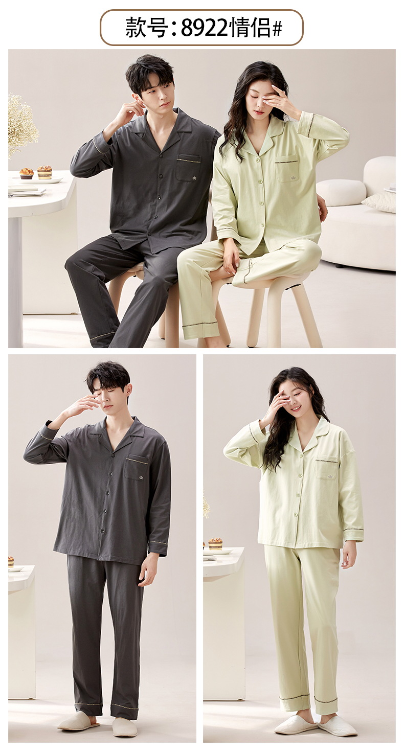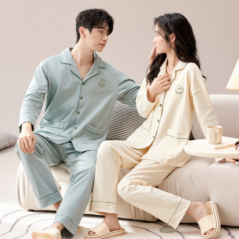 커플 잠옷 면 긴 소매 봄과 가을 여성의 간단한 캐주얼 남성 편안한 카디건 옷깃 홈 의류 세트스토어 가기