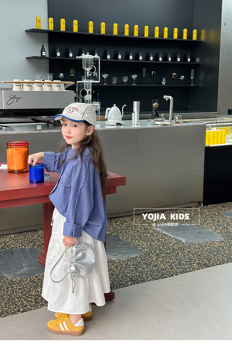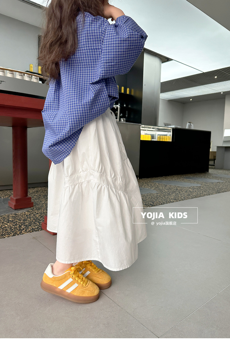 YOJIA 소녀의 치마 봄 2025 새로운 스타일 서양식 달콤한 소녀 치마 봄 얇은 어린이 치마를 착용