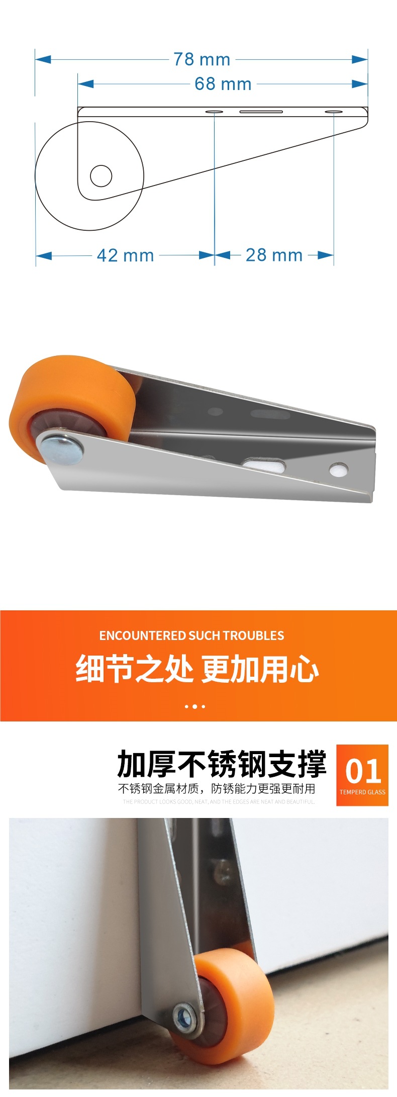 측면 장착 슬라이딩 도어 하단 휠 베어링 가구 방향 휠 일방적 인 고정 작은 도르래 무음 휠 고무 휠