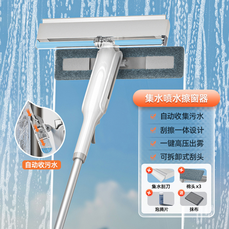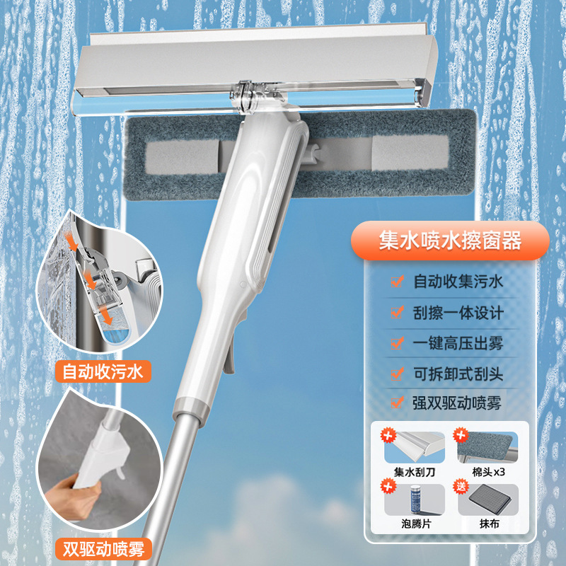 • [더러운 물 자동 수집] 듀얼 드라이브 물 스프레이 창 와이퍼 + 천 3개 (무료 걸레 + 발포성 정제)