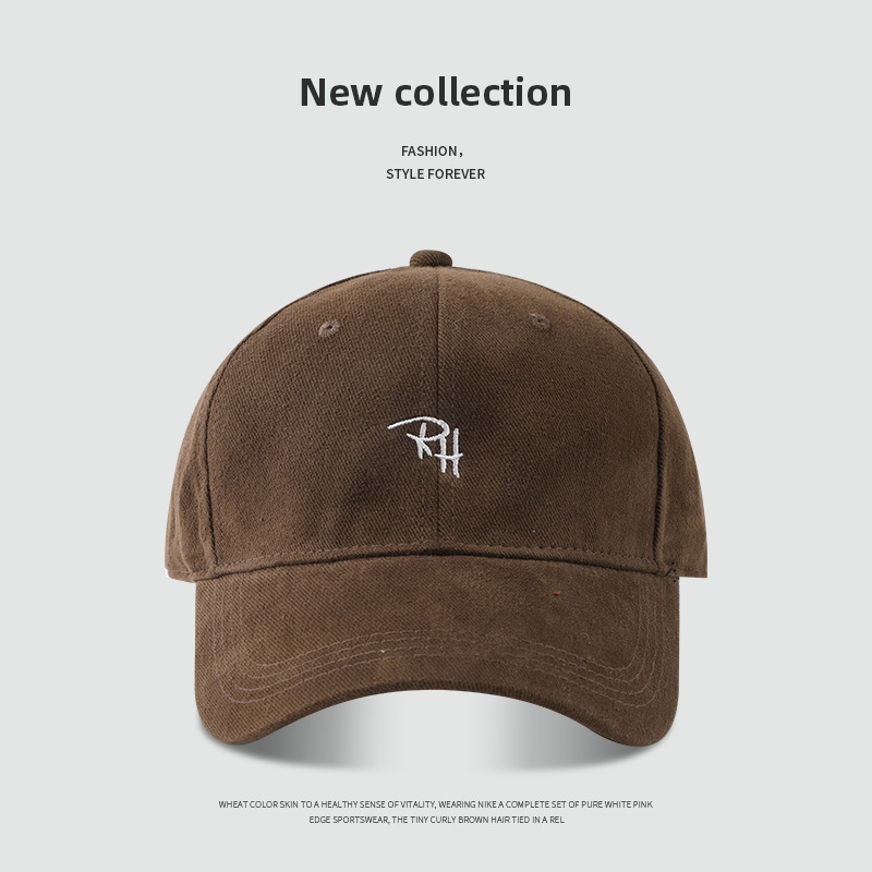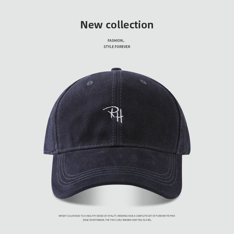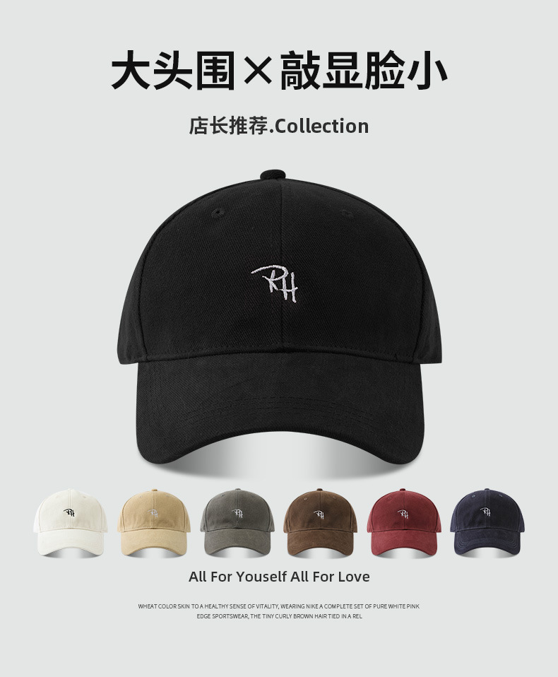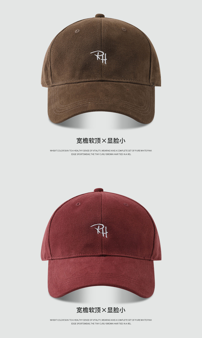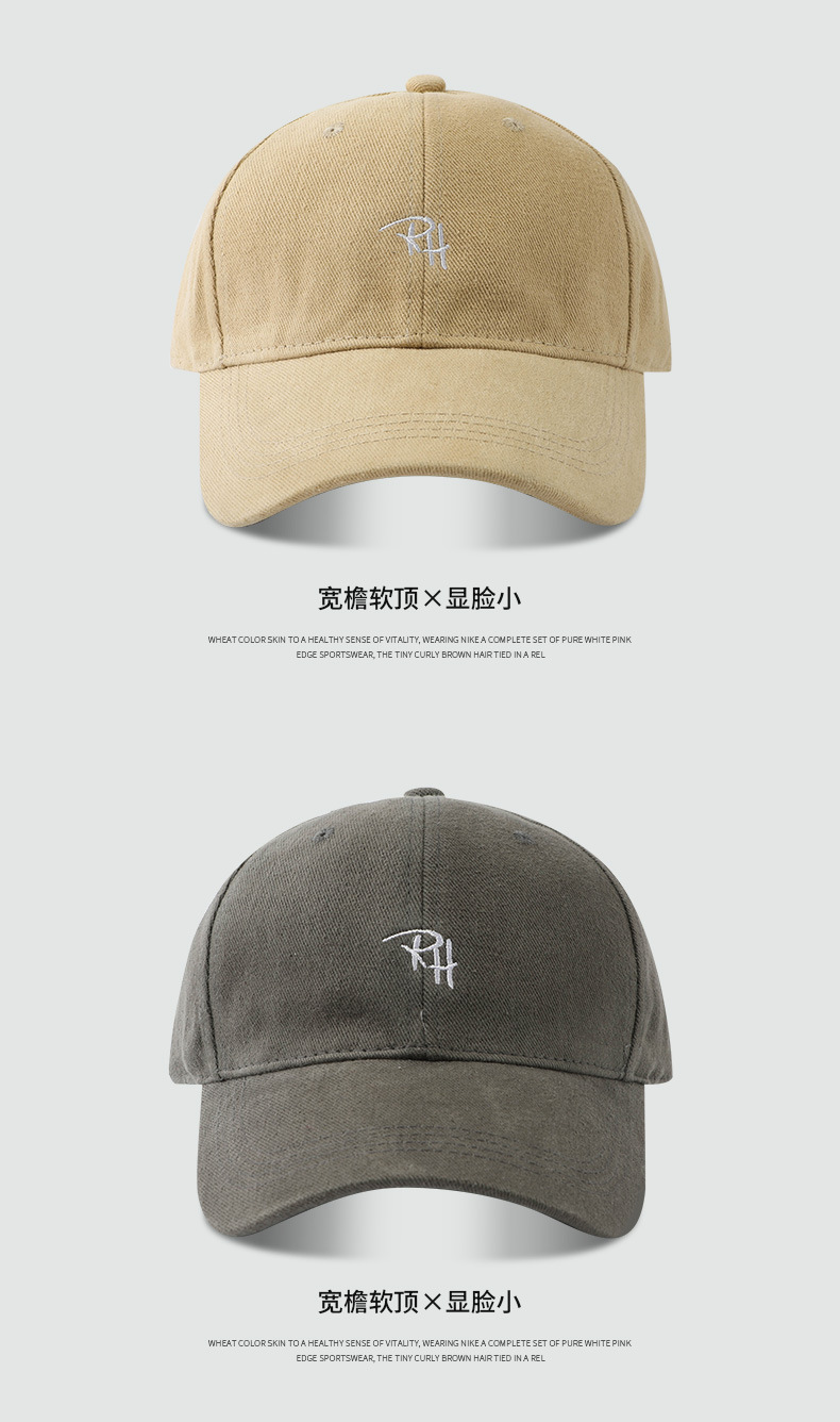 RH 자수 샌딩 야구 모자 큰 머리 딥 탑 캡 여성 가을 및 겨울 패션 올 매치 와이드 브림 남자 모자