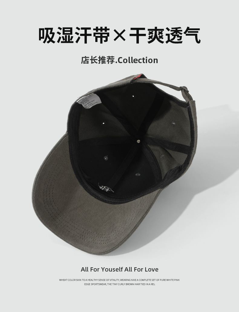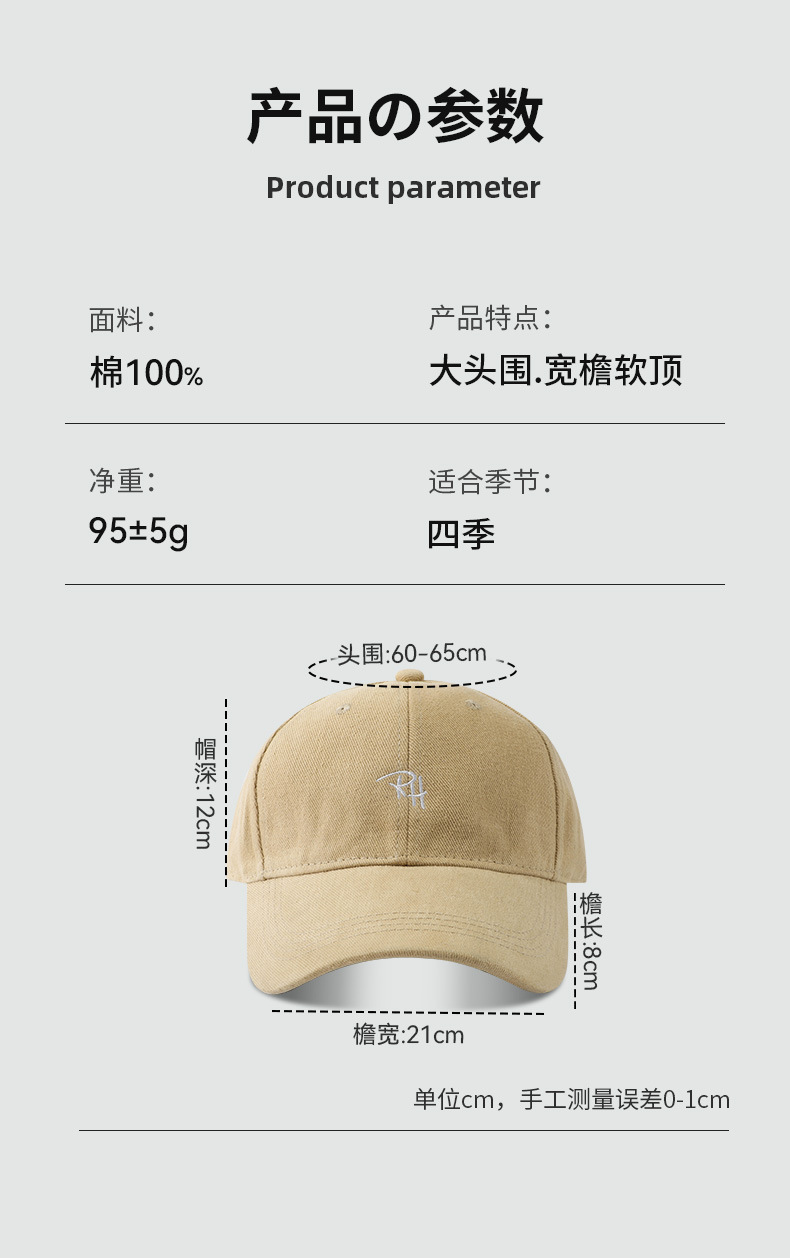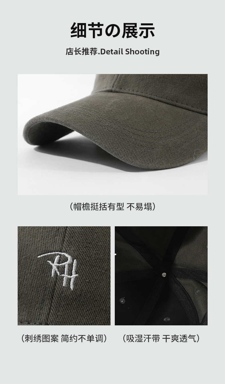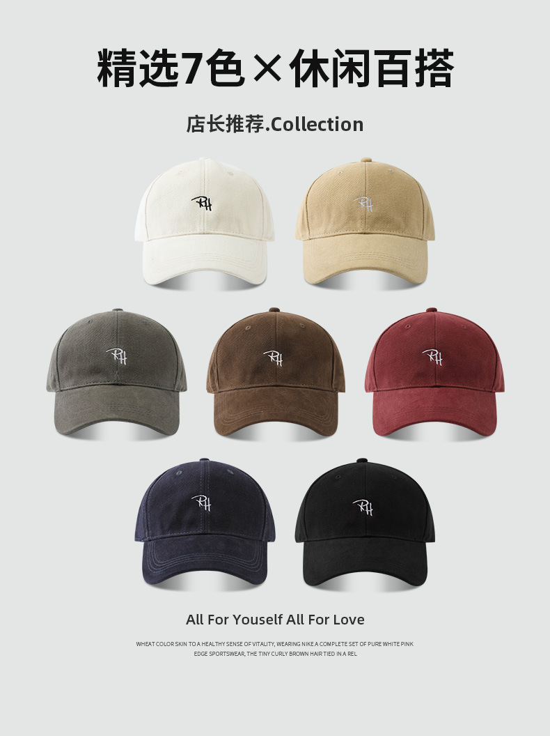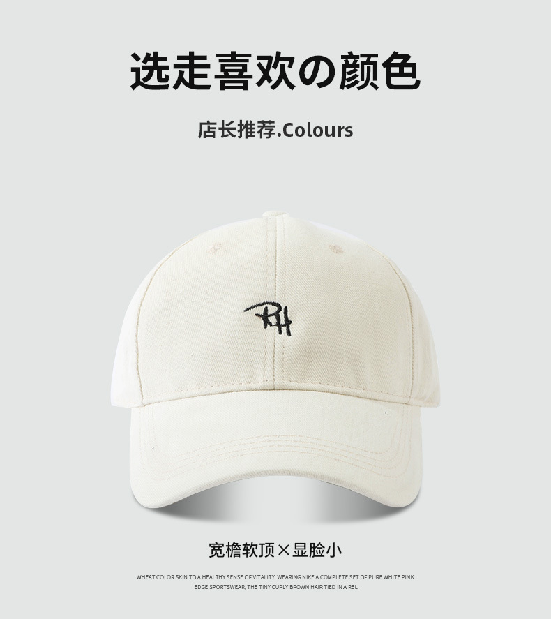 RH 자수 샌딩 야구 모자 큰 머리 딥 탑 캡 여성 가을 및 겨울 패션 올 매치 와이드 브림 남자 모자
