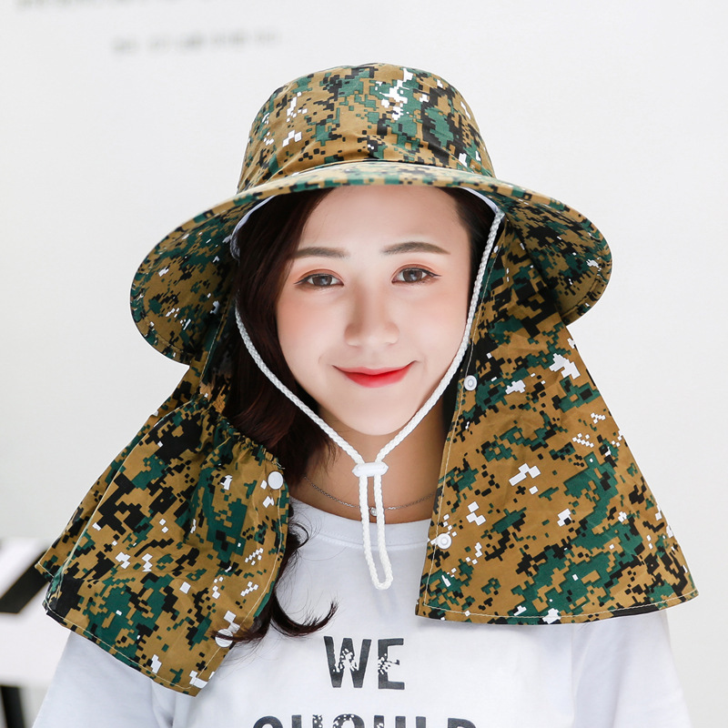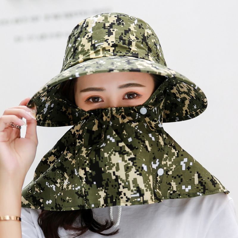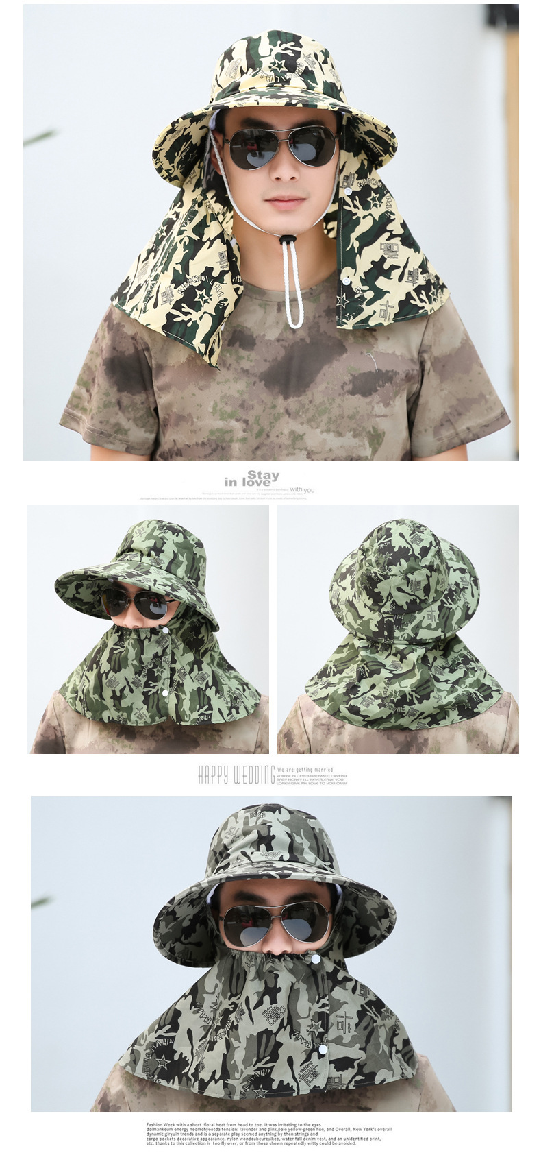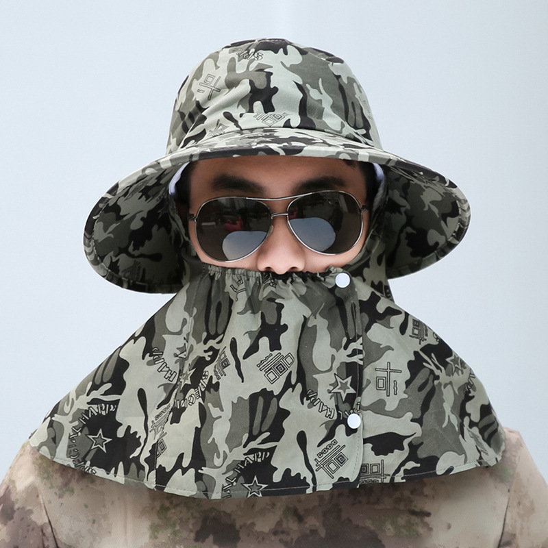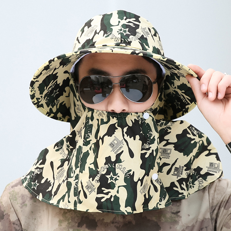 여름 위장 목도리 선스크린 모자 야외 등산 모자 탈착식 태양 모자 얼굴 덮개 방진 낚시 모자