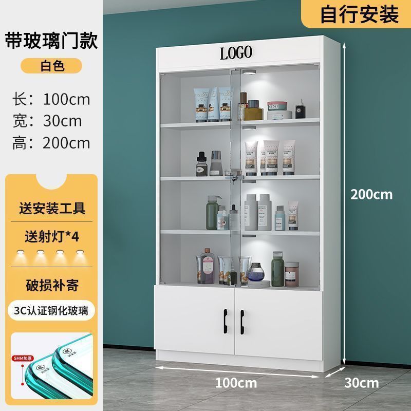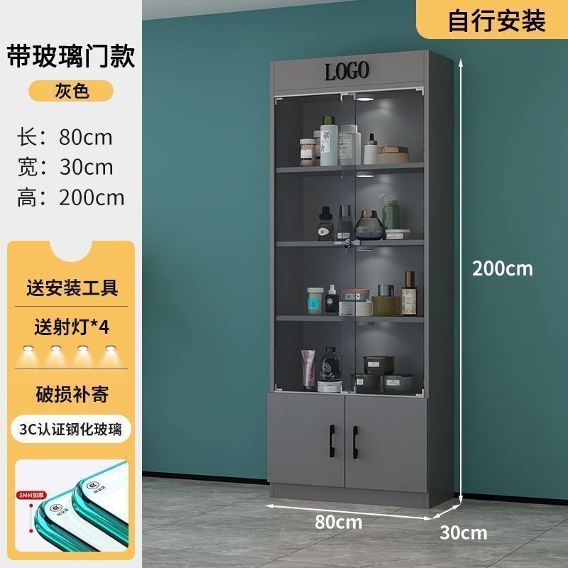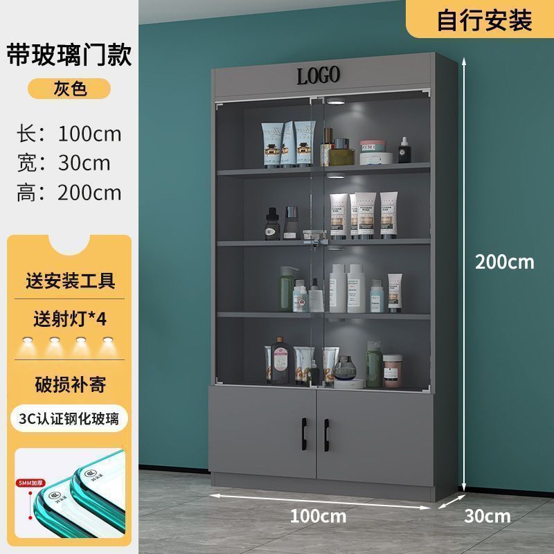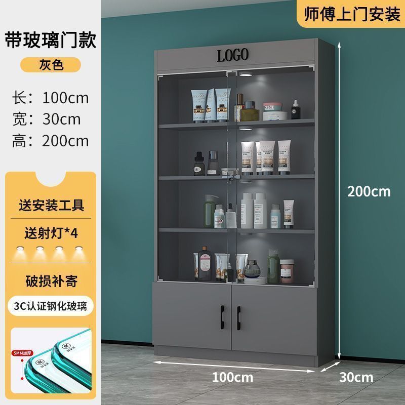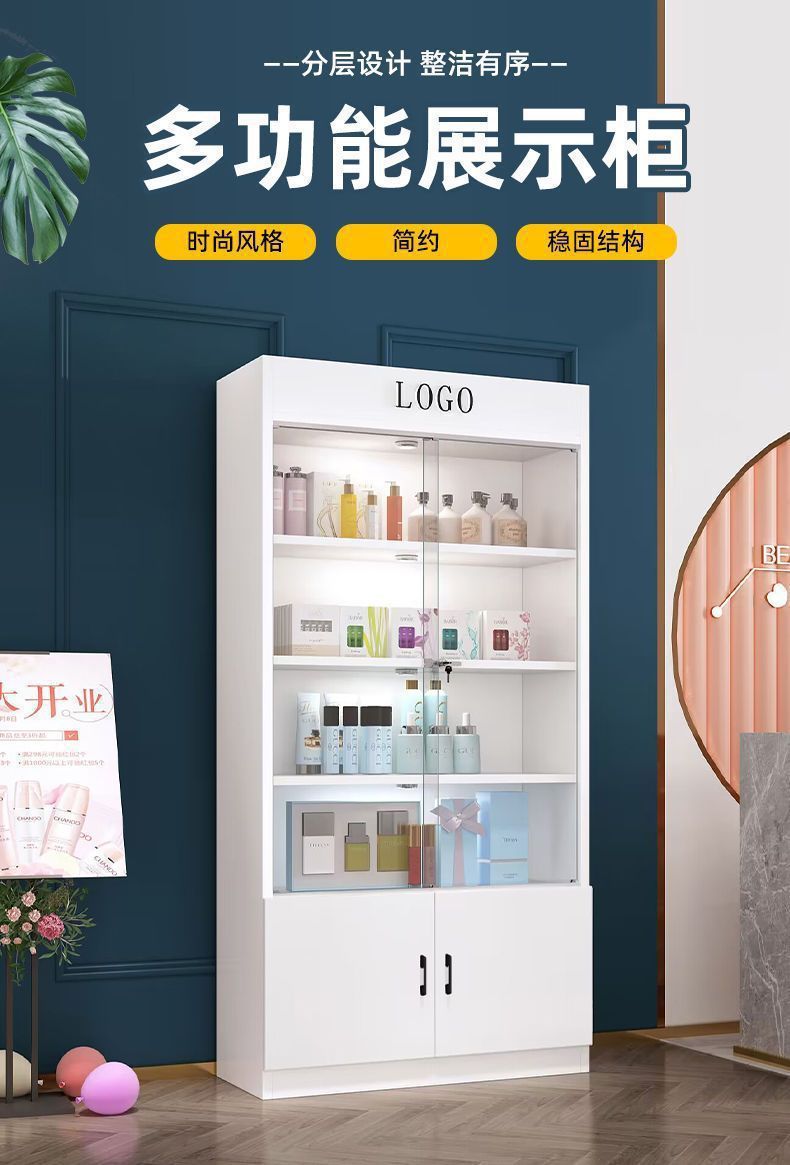 잠금 샘플 디스플레이 캐비닛 컨테이너 화장품 제품 디스플레이 캐비닛 뷰티 샵 캐비닛 보관 캐비닛이있는 상업용 유리 도어 캐비닛스토어 가기