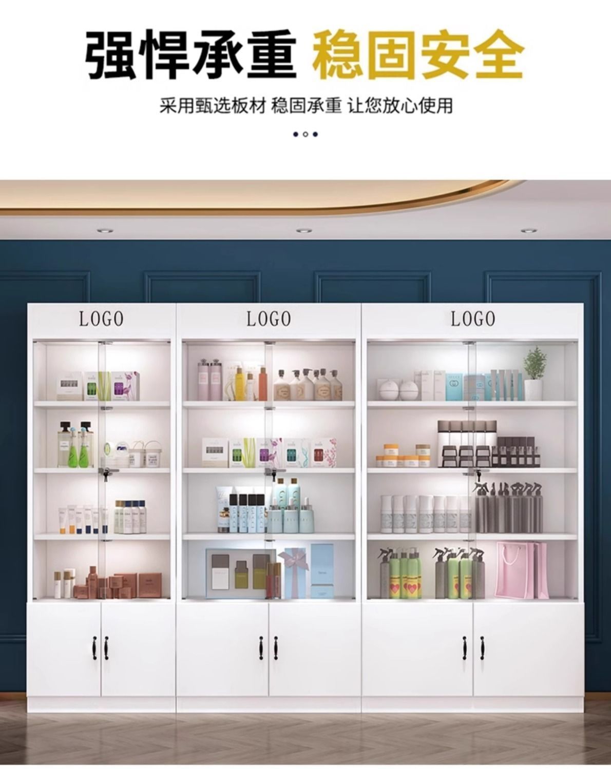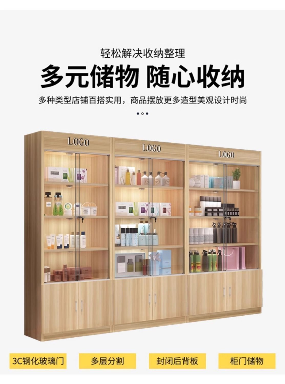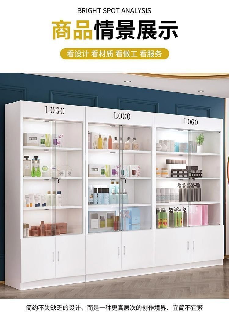 잠금 샘플 디스플레이 캐비닛 컨테이너 화장품 제품 디스플레이 캐비닛 뷰티 샵 캐비닛 보관 캐비닛이있는 상업용 유리 도어 캐비닛스토어 가기