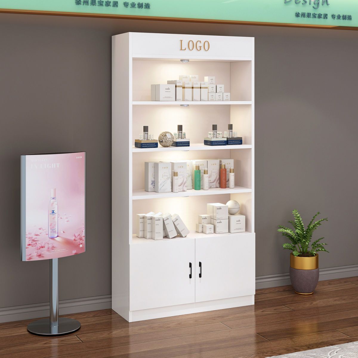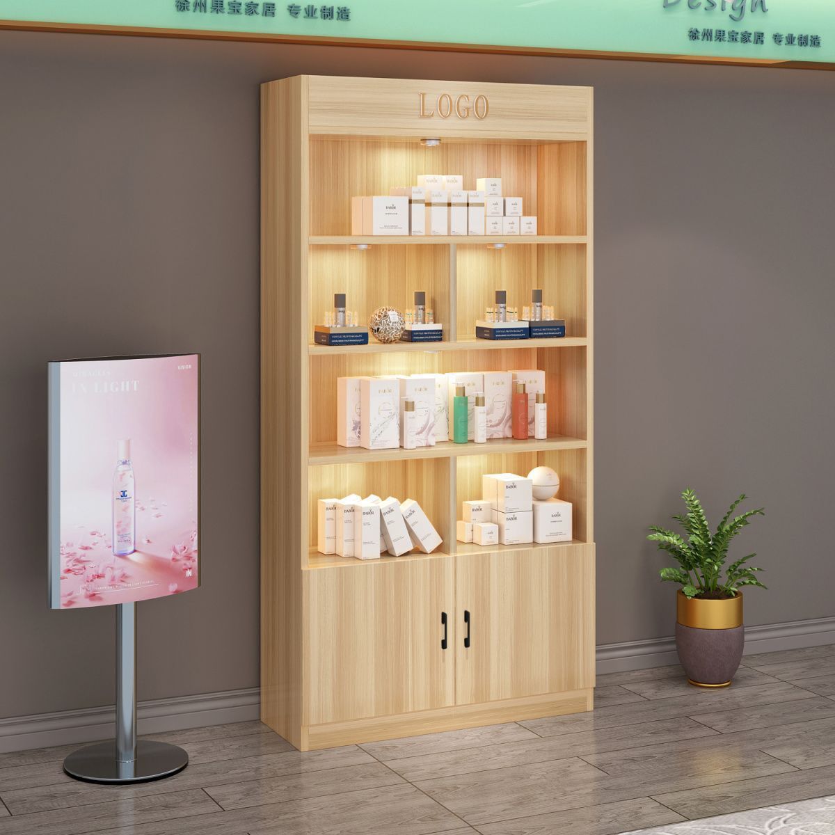 잠금 샘플 디스플레이 캐비닛 컨테이너 화장품 제품 디스플레이 캐비닛 뷰티 샵 캐비닛 보관 캐비닛이있는 상업용 유리 도어 캐비닛
