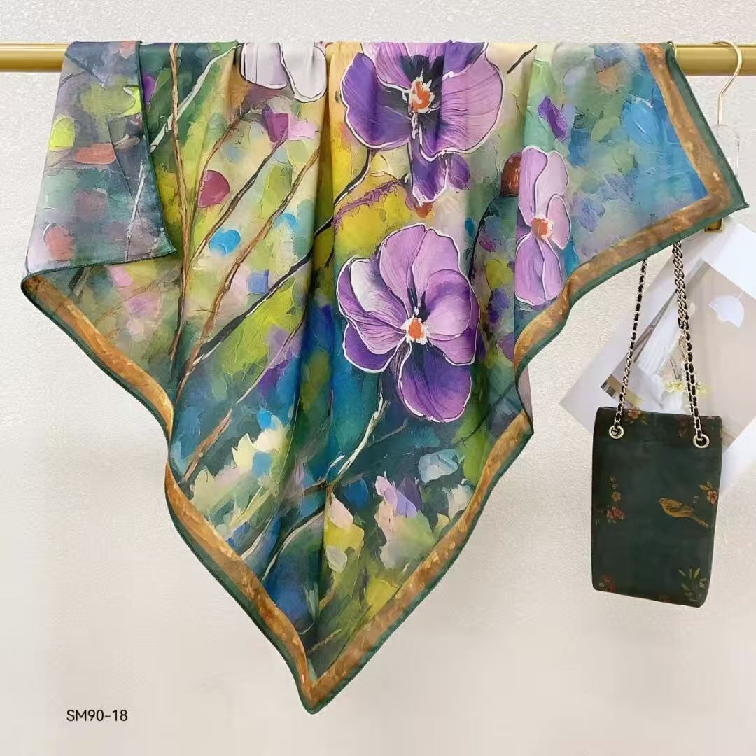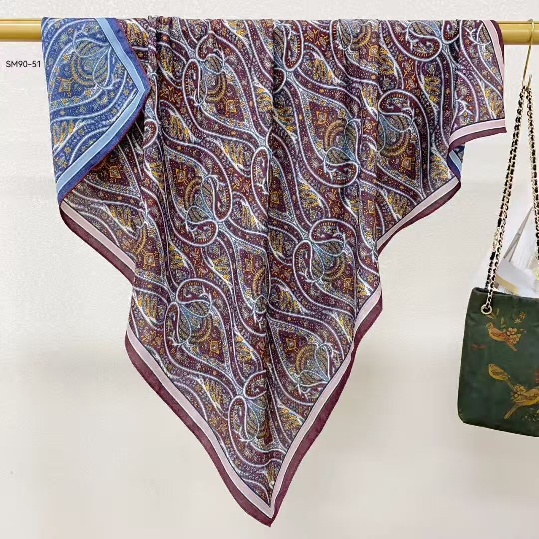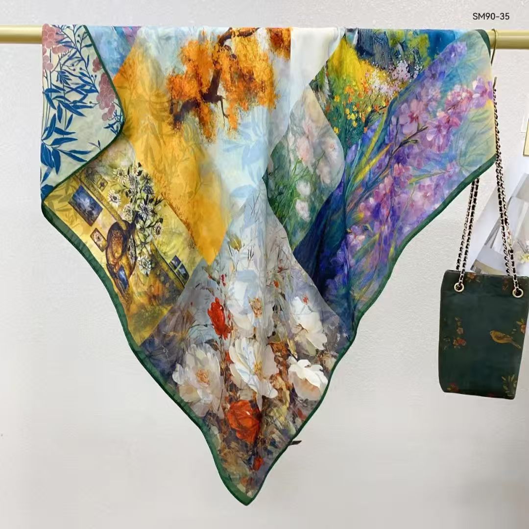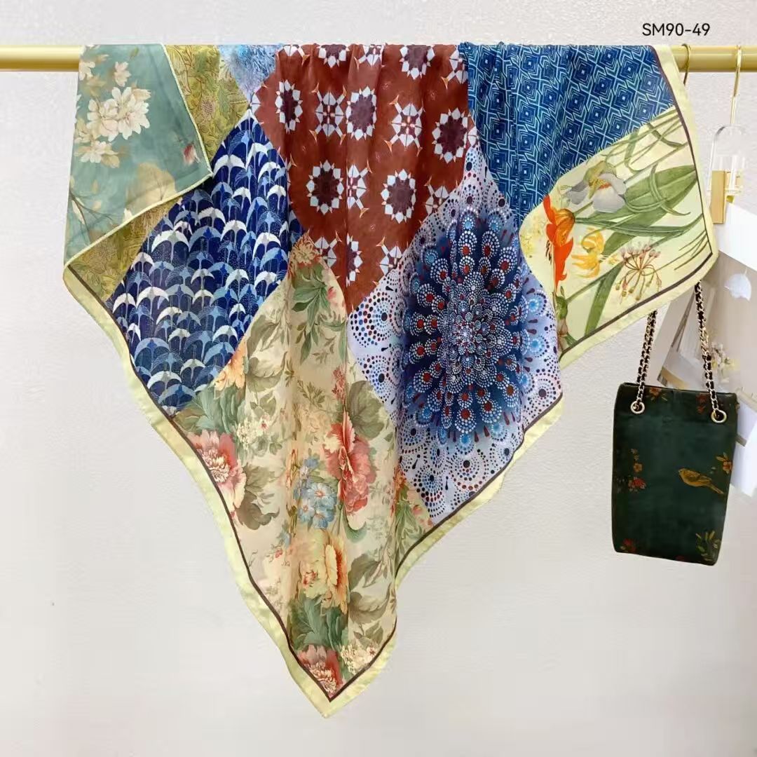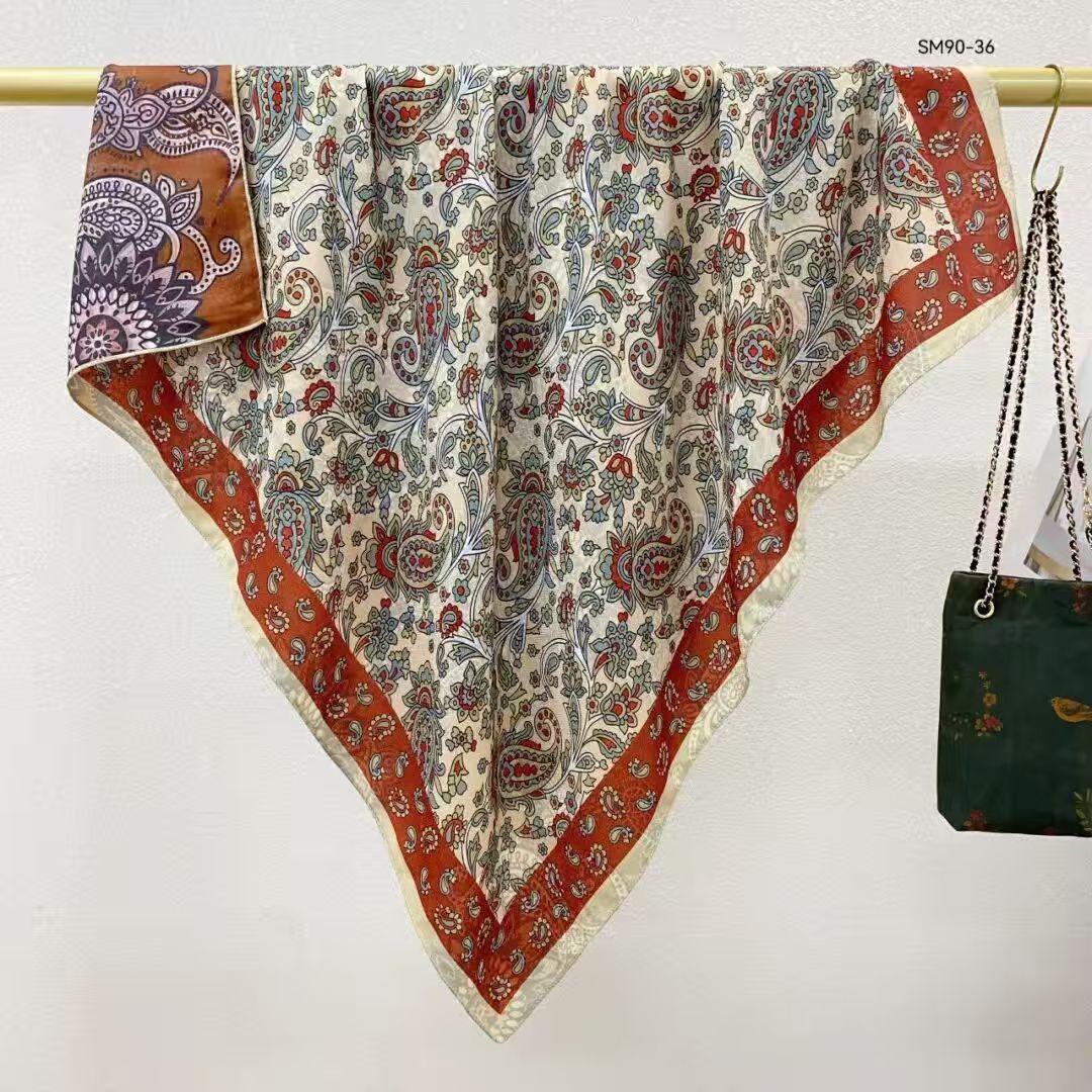 모조 벨벳 실크 스카프 여성용 빈티지 새로운 스티칭 인쇄 연령 감소 양면 컬러 대형 광장 여행 해변 스카프 선 스크린