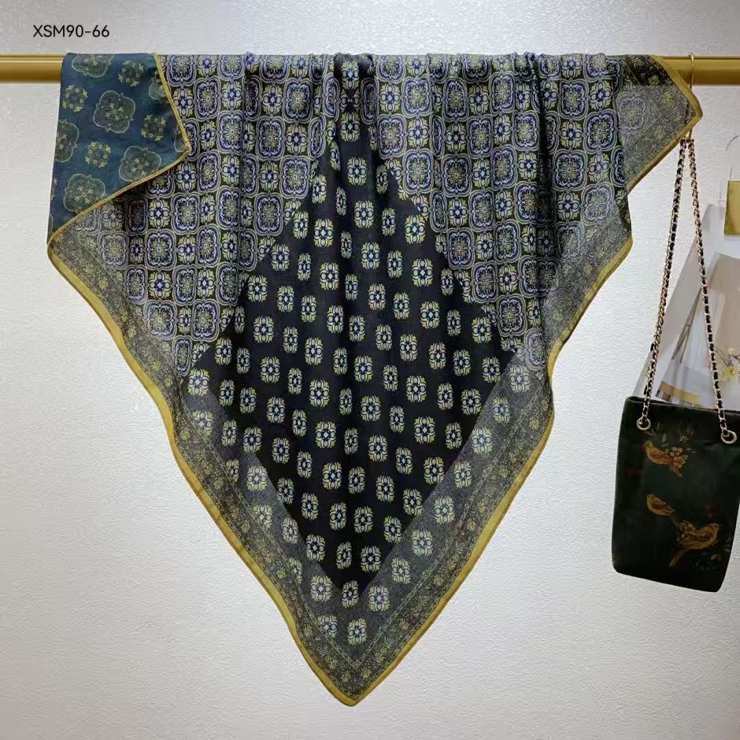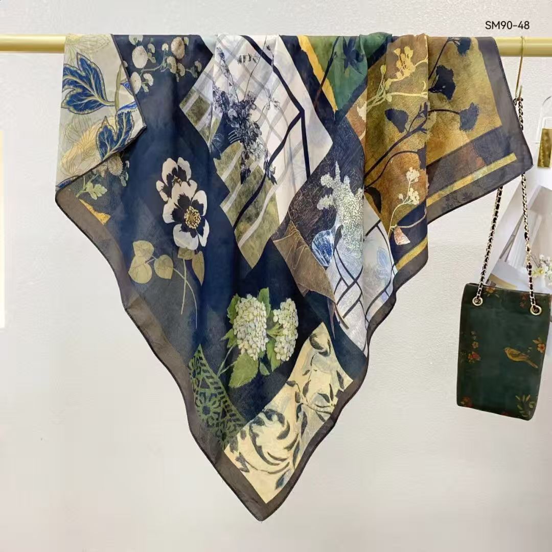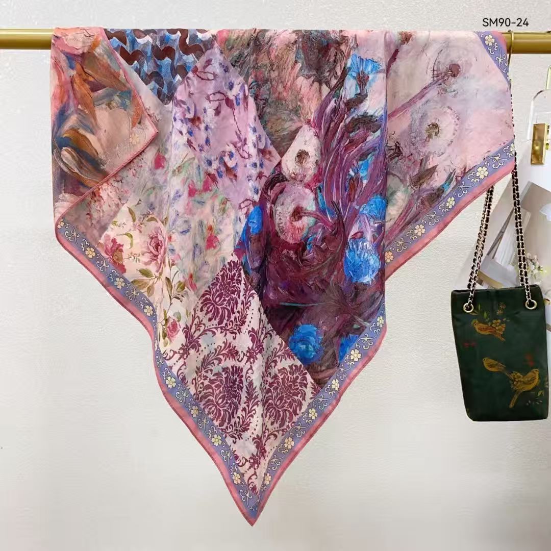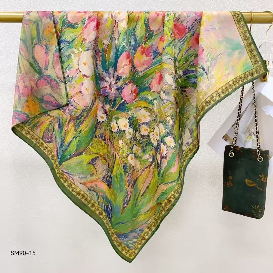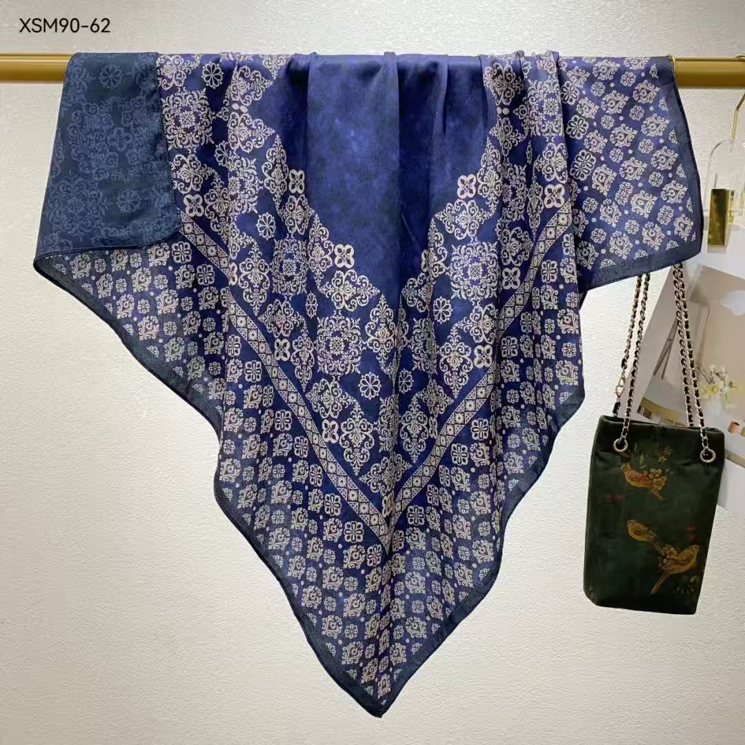 모조 벨벳 실크 스카프 여성용 빈티지 새로운 스티칭 인쇄 연령 감소 양면 컬러 대형 광장 여행 해변 스카프 선 스크린
