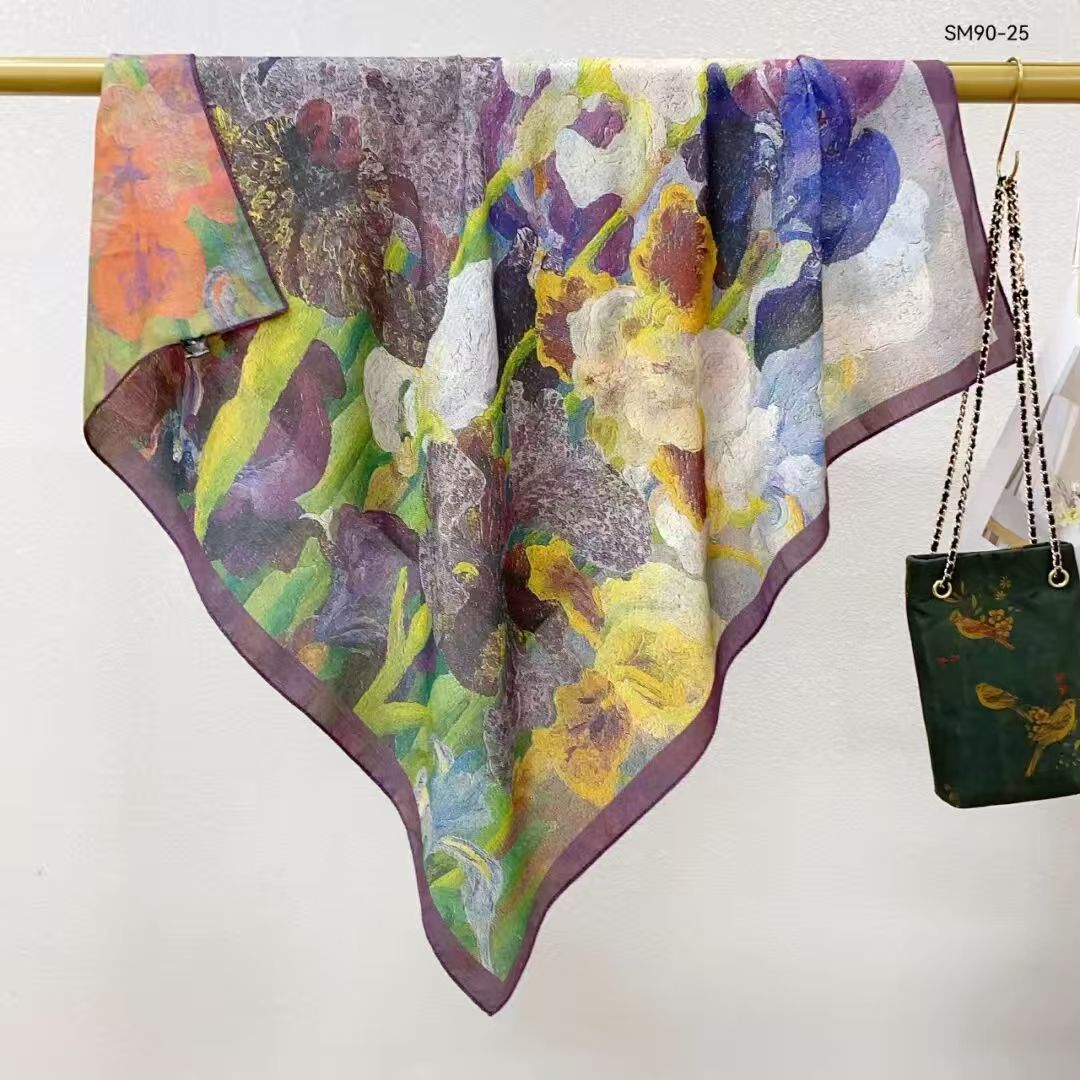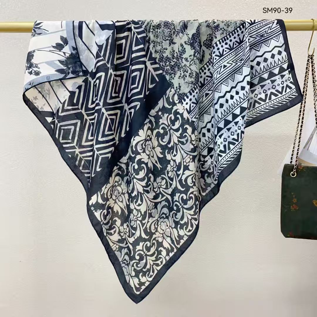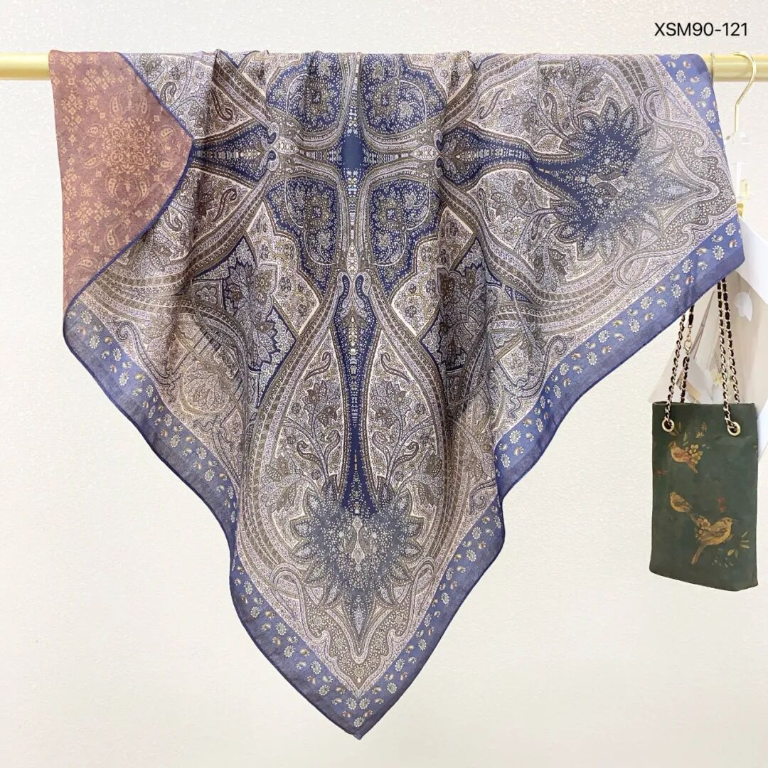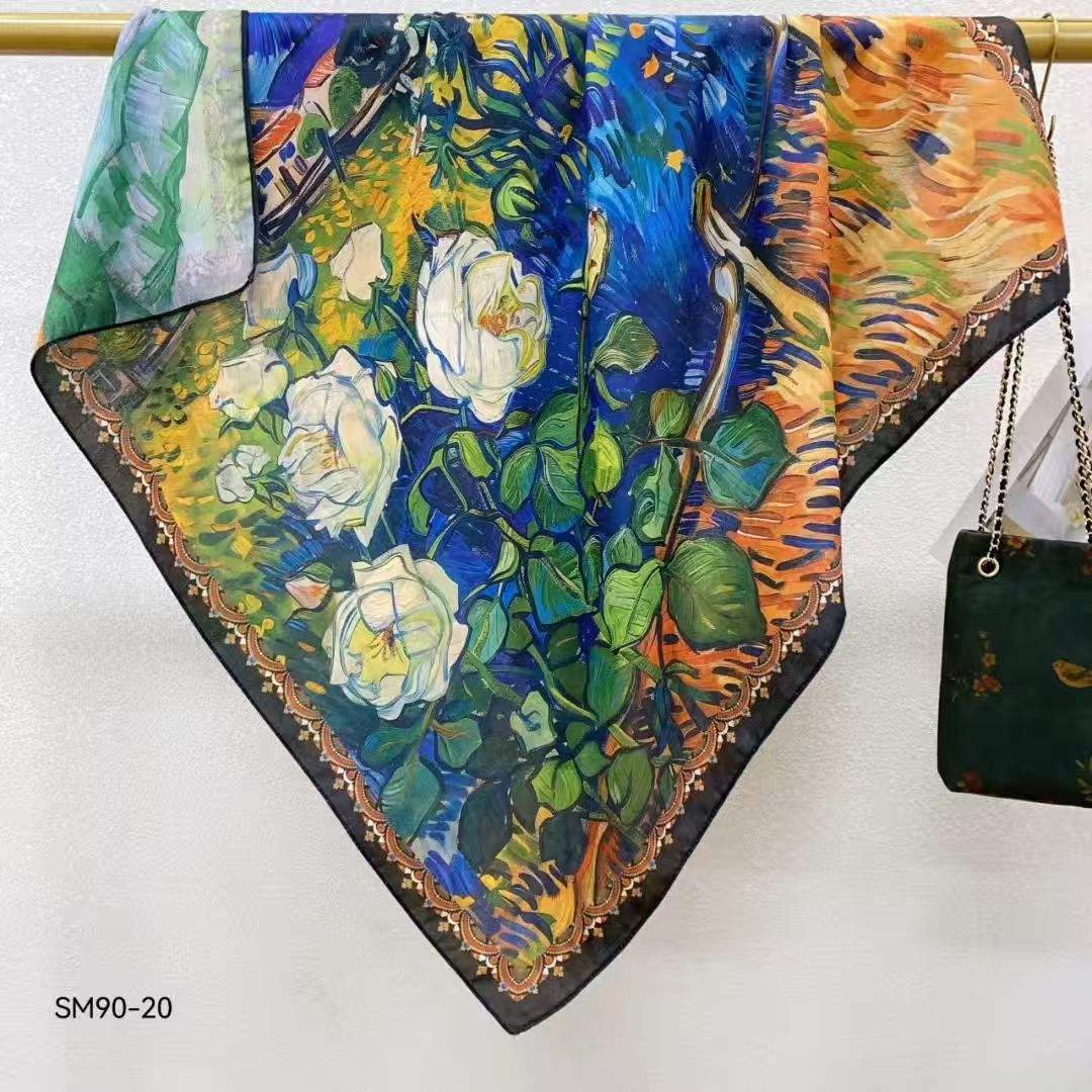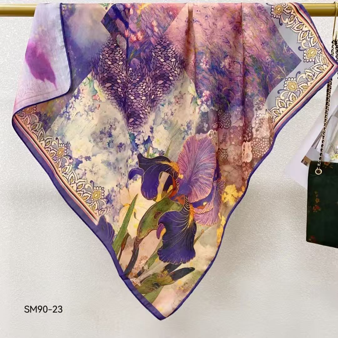모조 벨벳 실크 스카프 여성용 빈티지 새로운 스티칭 인쇄 연령 감소 양면 컬러 대형 광장 여행 해변 스카프 선 스크린