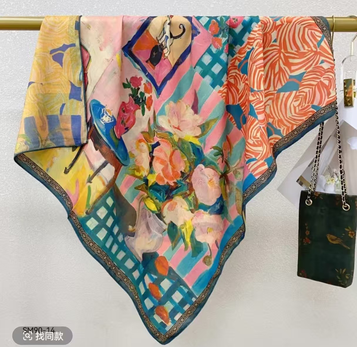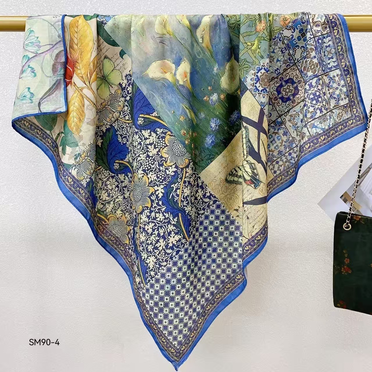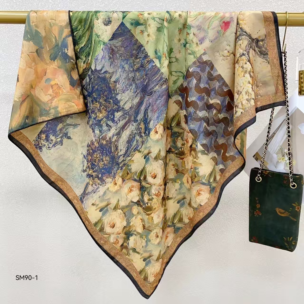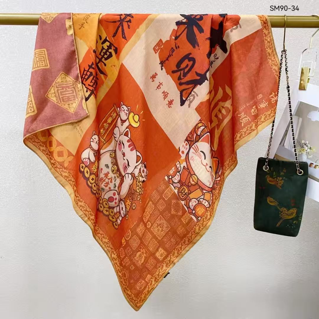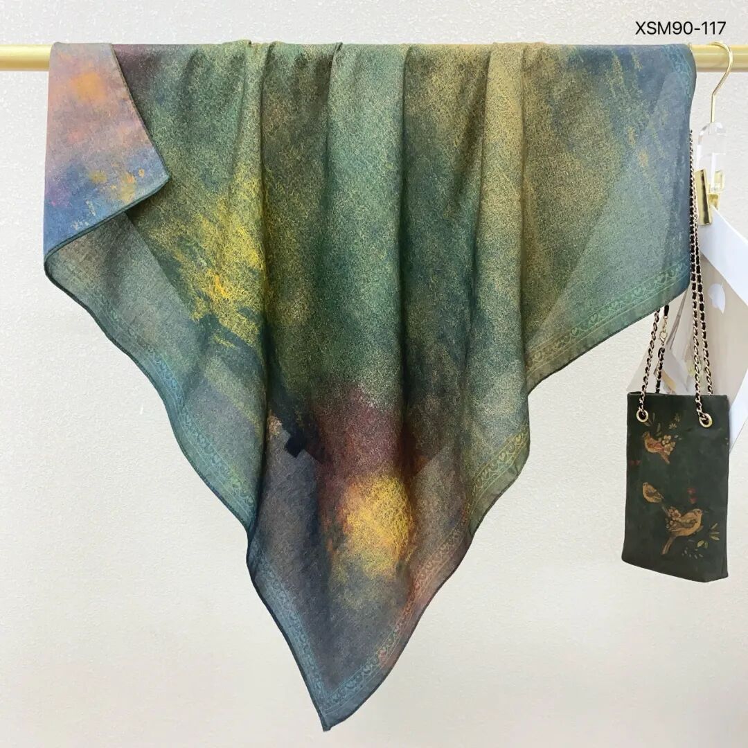 모조 벨벳 실크 스카프 여성용 빈티지 새로운 스티칭 인쇄 연령 감소 양면 컬러 대형 광장 여행 해변 스카프 선 스크린